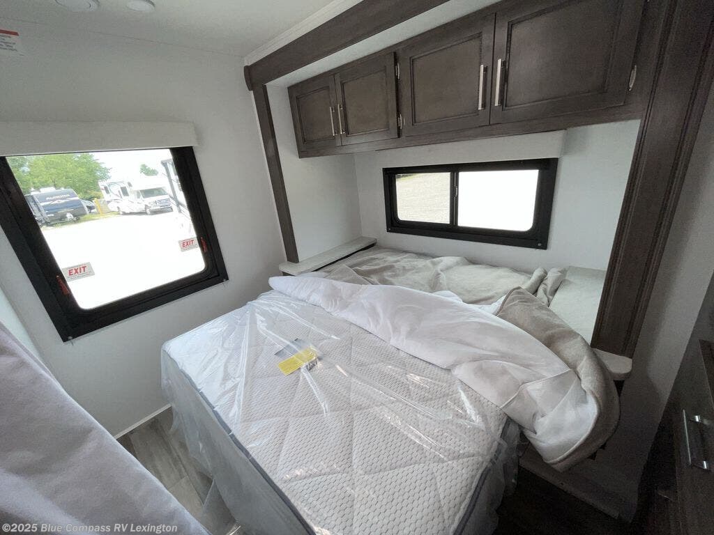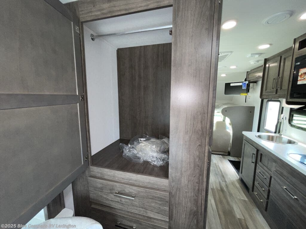 There's a comfortable place to sleep for everyone in this motorhome! From the corner 60" x 70" queen bed that slides out to the bunk over cab, and even the 42" x 70" booth dinette once converted. You can store your favorite snacks and hang up your clothes in the wardrobe/pantry. The chef can prepare delicious meals with the two burner cooktop and if there happens to be any leftovers then they can be stored in the 10 cu. ft. 12V refrigerator. The rear corner bathroom has a 24" x 36" shower that you are sure to enjoy after a long day of traveling!