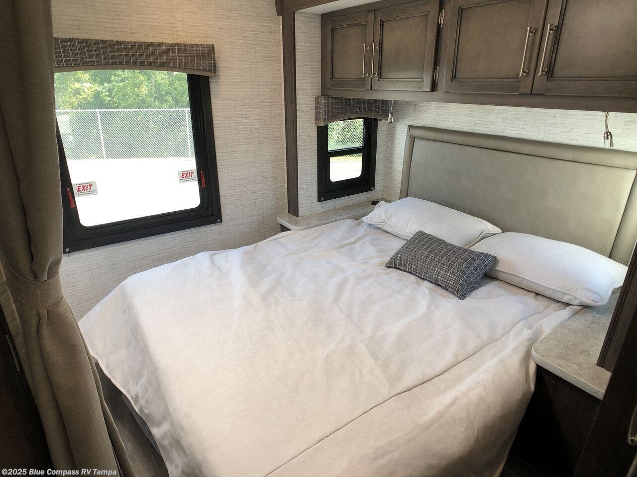 There's a comfortable place to sleep for everyone in this motorhome! From the corner 60" x 70" queen bed that slides out to the bunk over cab, and even the 42" x 70" booth dinette once converted. You can store your favorite snacks and hang up your clothes in the wardrobe/pantry. The chef can prepare delicious meals with the two burner cooktop and if there happens to be any leftovers then they can be stored in the 10 cu. ft. 12V refrigerator. The rear corner bathroom has a 24" x 36" shower that you are sure to enjoy after a long day of traveling!