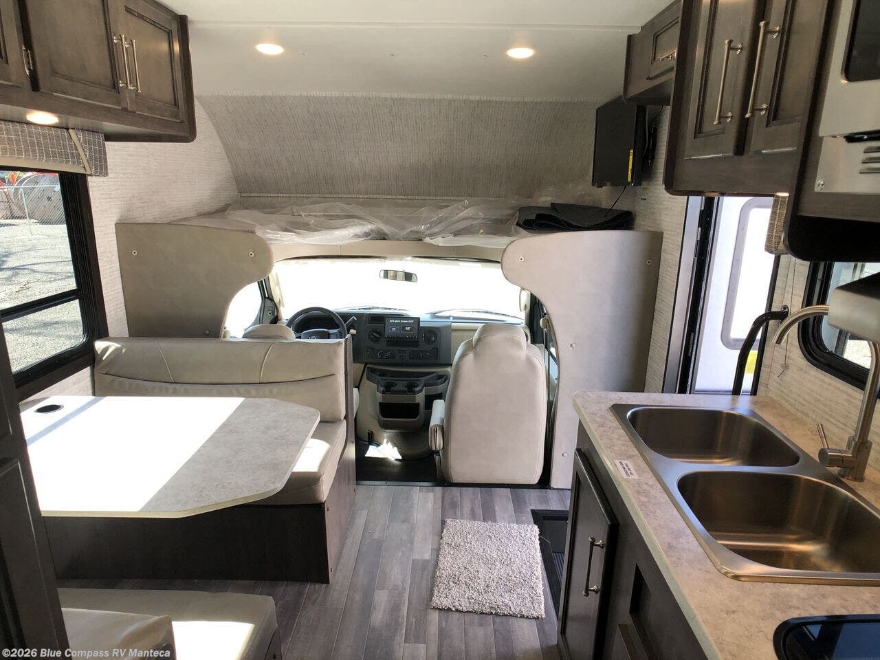 There's a comfortable place to sleep for everyone in this motorhome! From the corner 60" x 70" queen bed that slides out to the bunk over cab, and even the 42" x 70" booth dinette once converted. You can store your favorite snacks and hang up your clothes in the wardrobe/pantry. The chef can prepare delicious meals with the two burner cooktop and if there happens to be any leftovers then they can be stored in the 10 cu. ft. 12V refrigerator. The rear corner bathroom has a 24" x 36" shower that you are sure to enjoy after a long day of traveling!