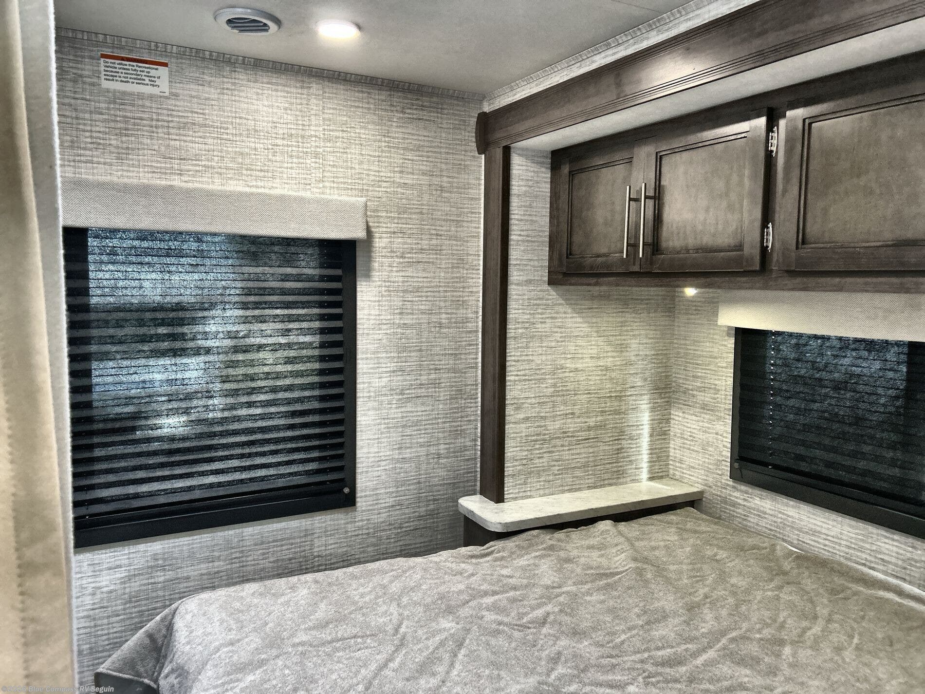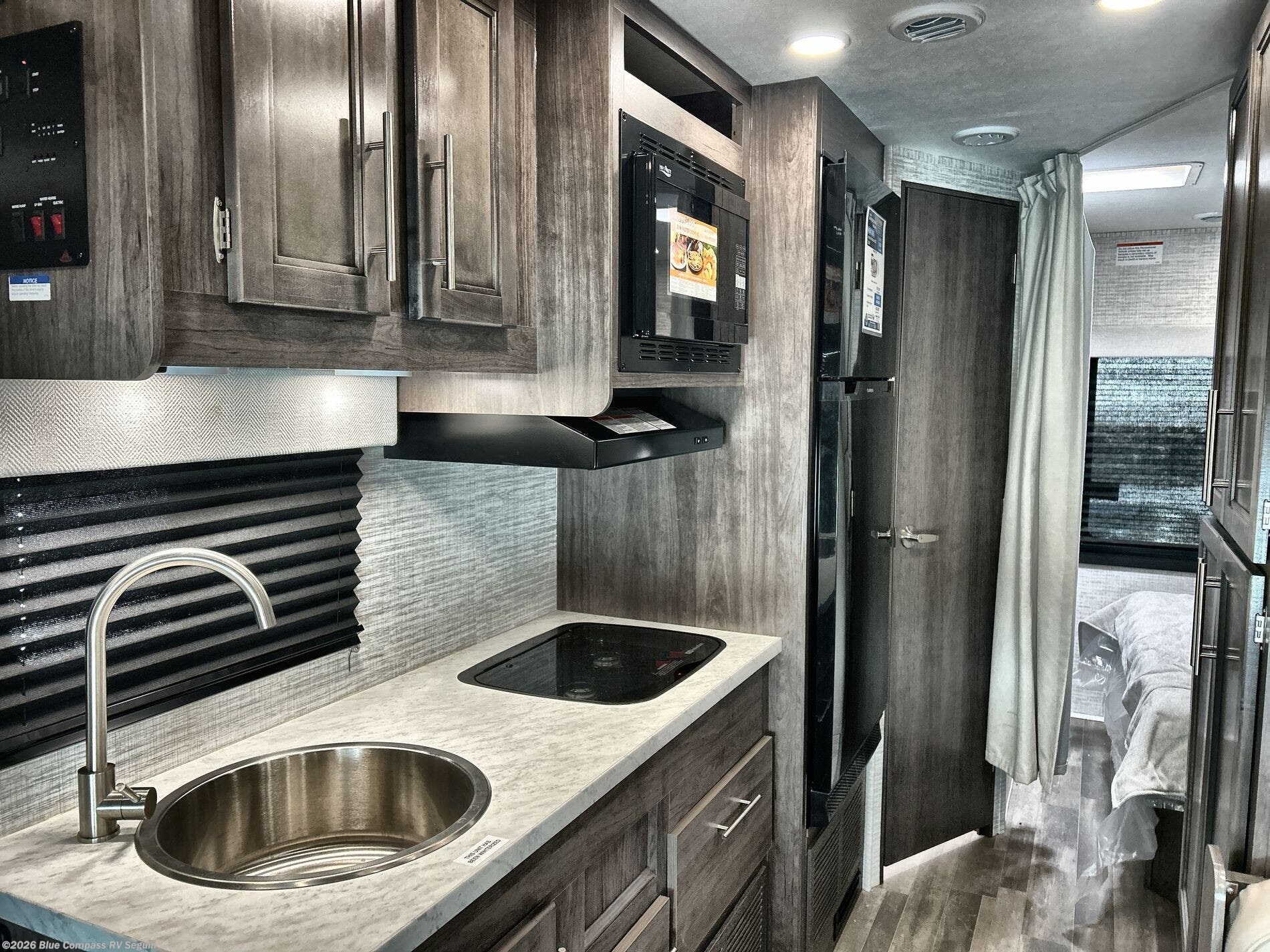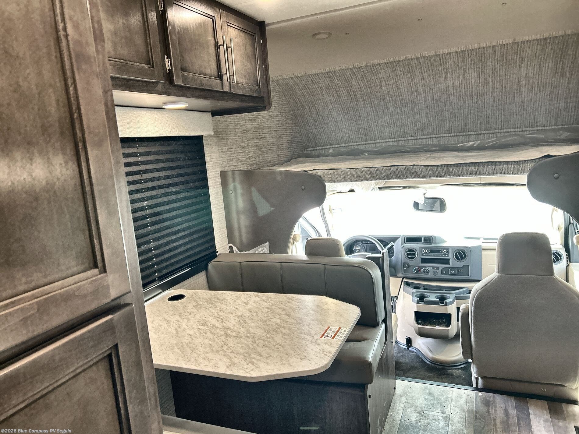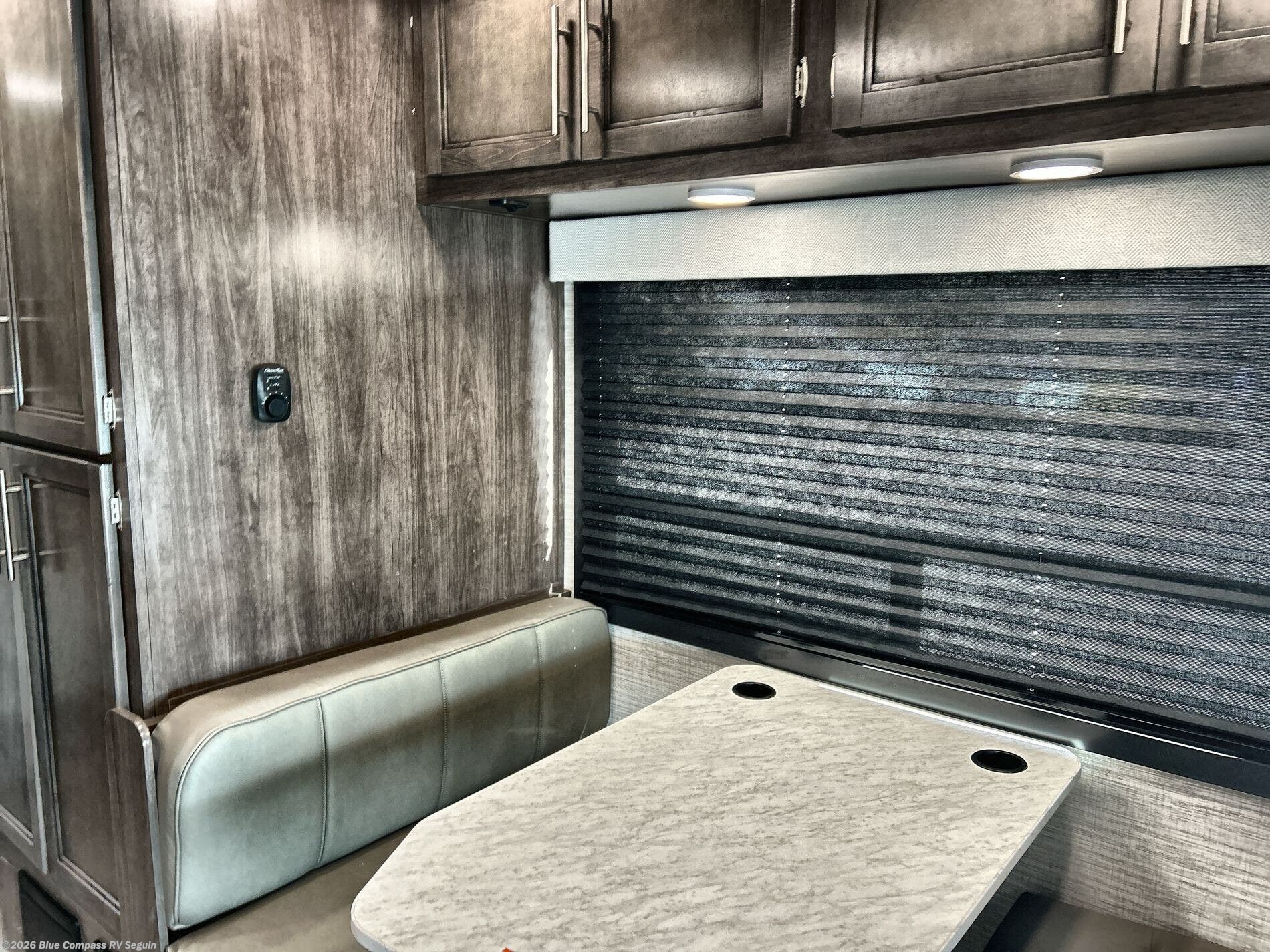 There's a comfortable place to sleep for everyone in this motorhome! From the corner 60" x 70" queen bed that slides out to the bunk over cab, and even the 42" x 70" booth dinette once converted. You can store your favorite snacks and hang up your clothes in the wardrobe/pantry. The chef can prepare delicious meals with the two burner cooktop and if there happens to be any leftovers then they can be stored in the 10 cu. ft. 12V refrigerator. The rear corner bathroom has a 24" x 36" shower that you are sure to enjoy after a long day of traveling!