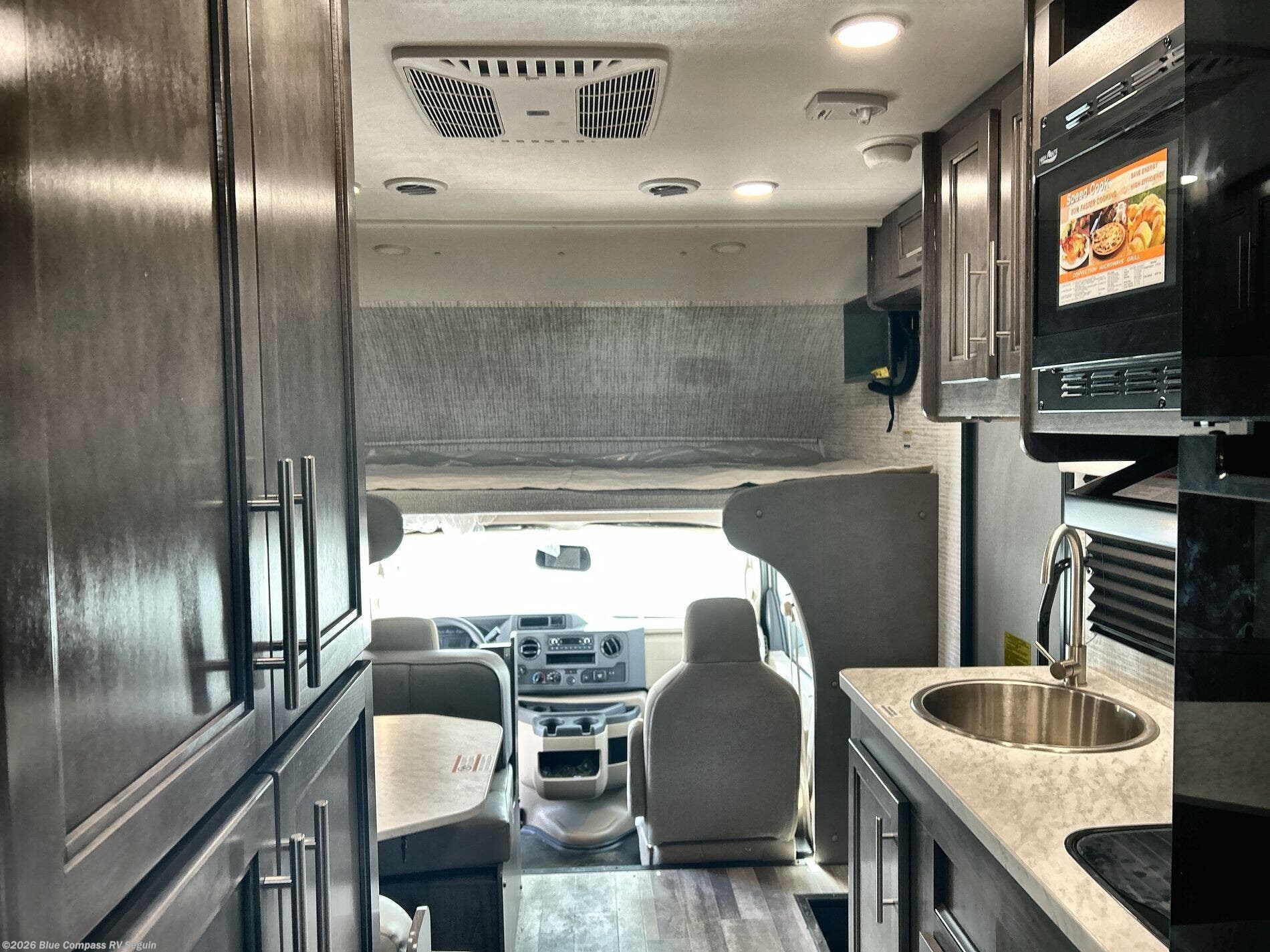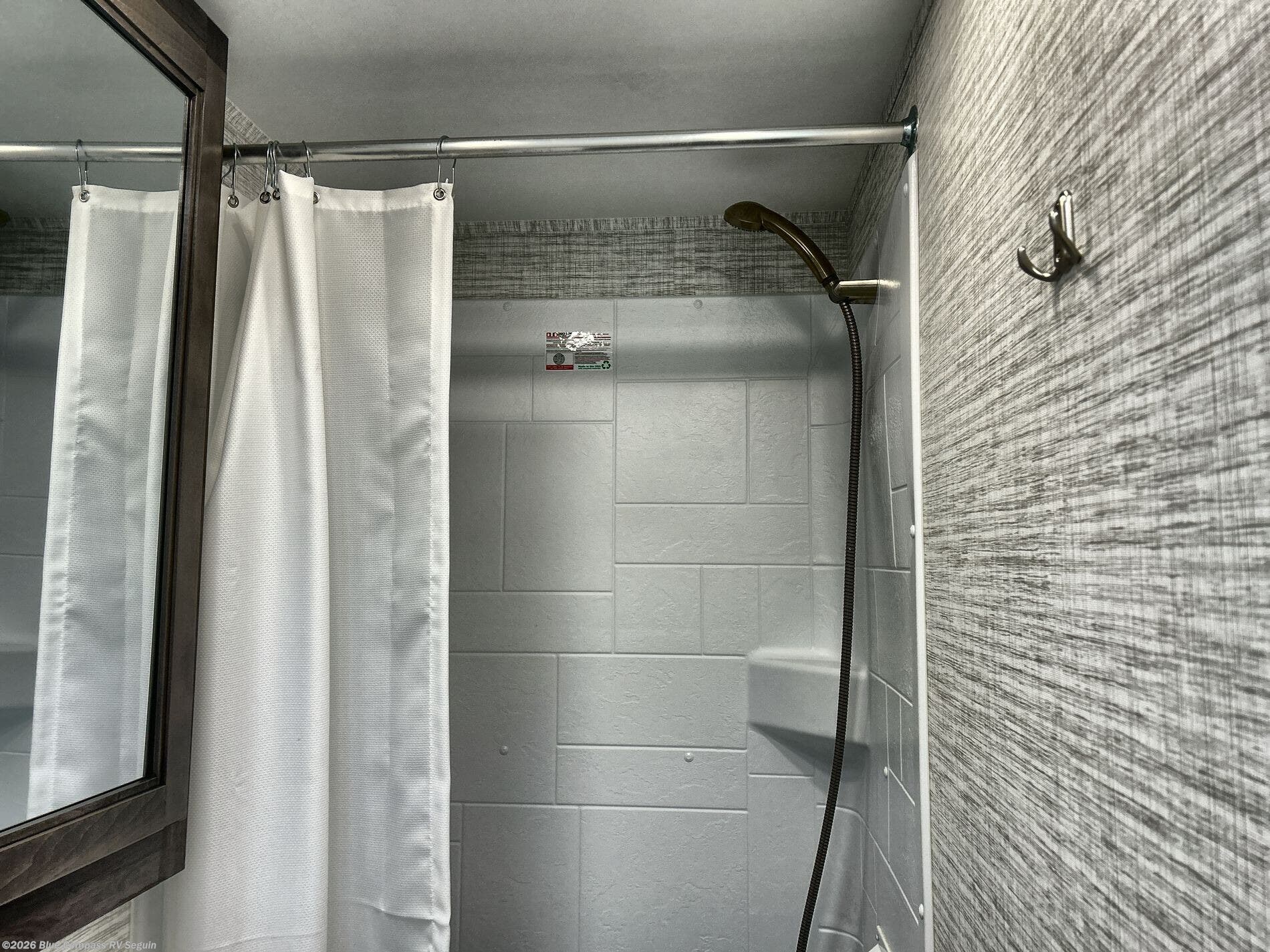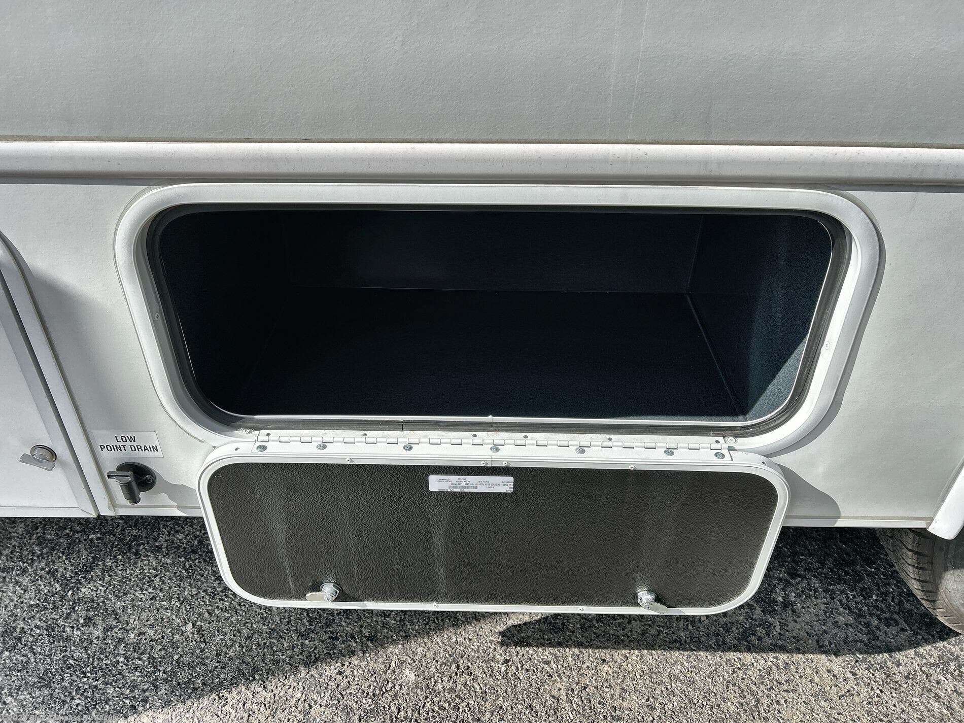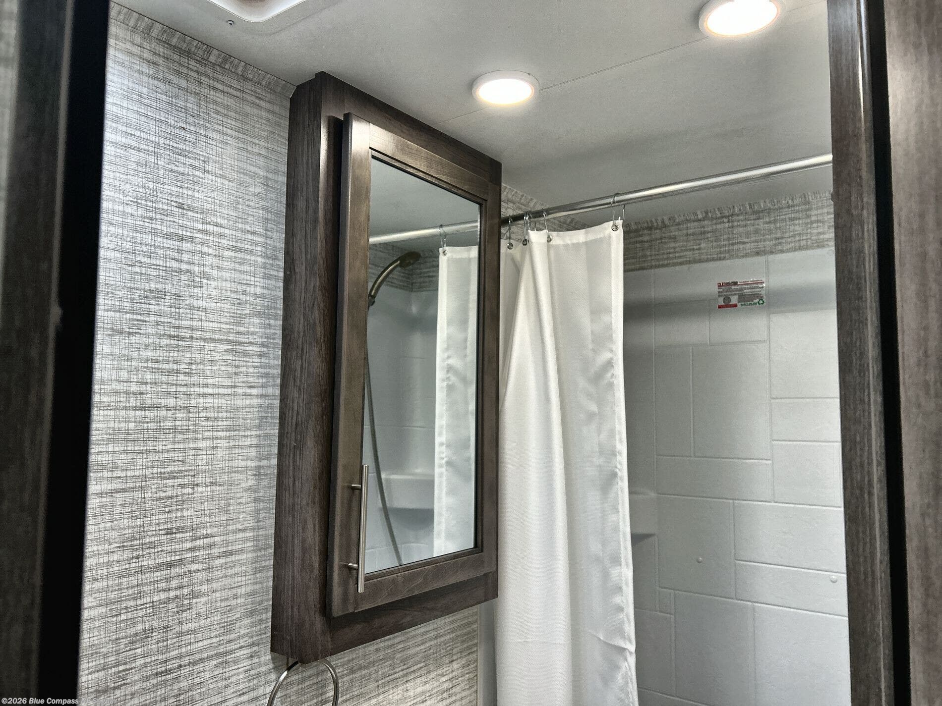 There's a comfortable place to sleep for everyone in this motorhome! From the corner 60" x 70" queen bed that slides out to the bunk over cab, and even the 42" x 70" booth dinette once converted. You can store your favorite snacks and hang up your clothes in the wardrobe/pantry. The chef can prepare delicious meals with the two burner cooktop and if there happens to be any leftovers then they can be stored in the 10 cu. ft. 12V refrigerator. The rear corner bathroom has a 24" x 36" shower that you are sure to enjoy after a long day of traveling!