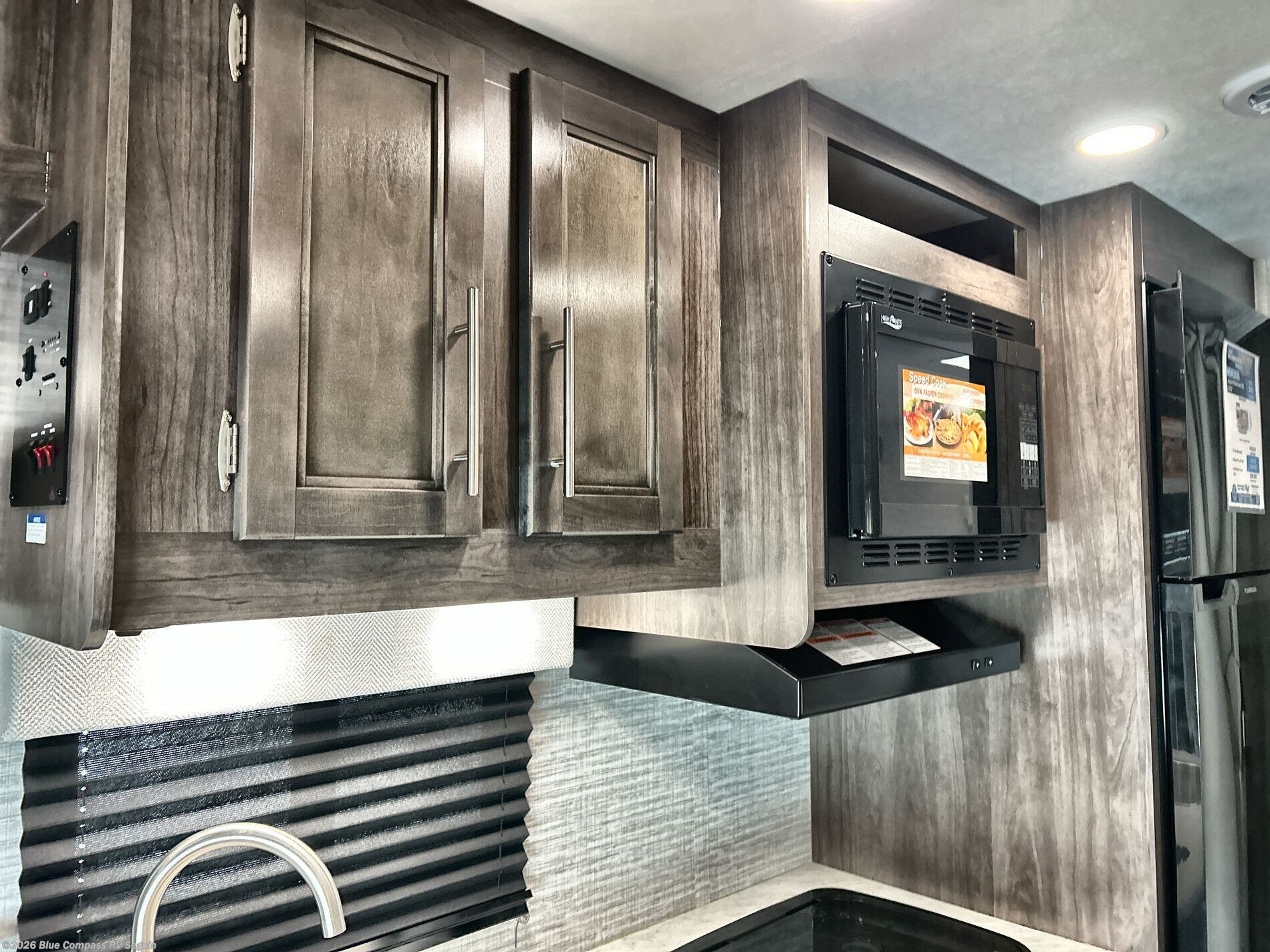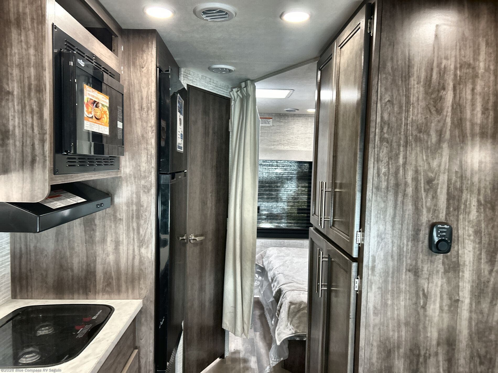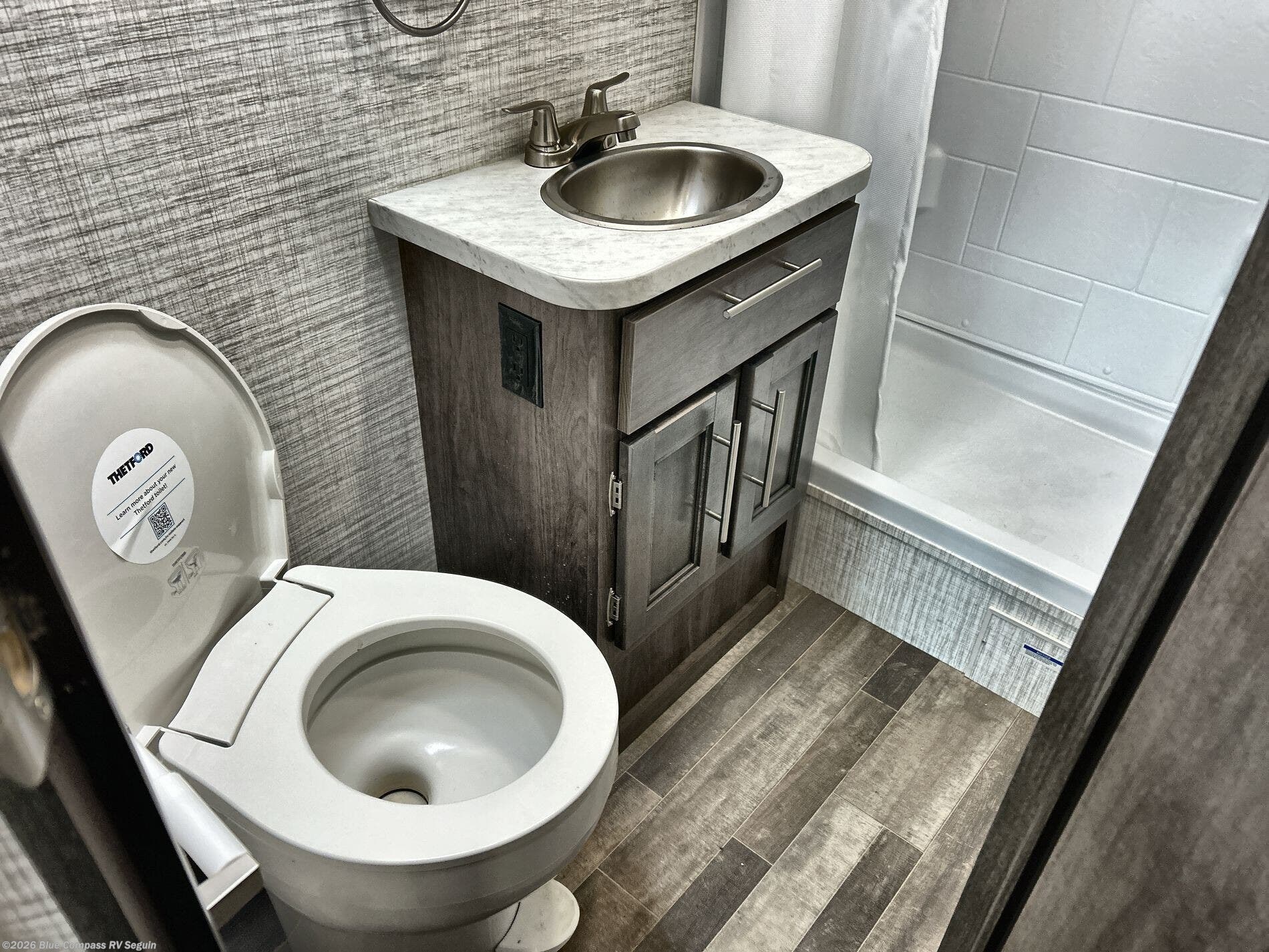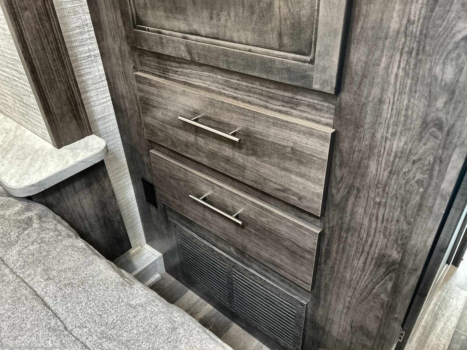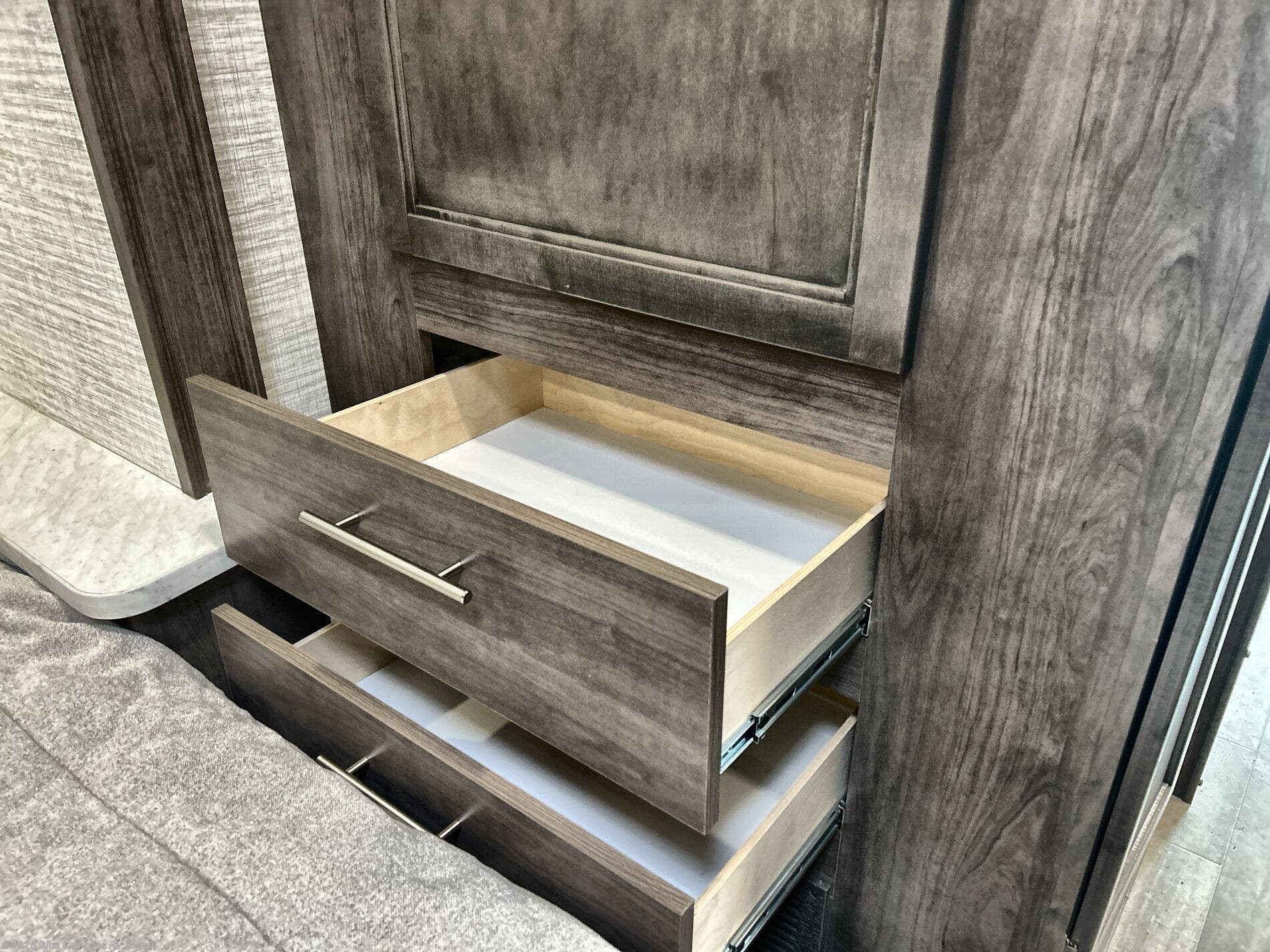 There's a comfortable place to sleep for everyone in this motorhome! From the corner 60" x 70" queen bed that slides out to the bunk over cab, and even the 42" x 70" booth dinette once converted. You can store your favorite snacks and hang up your clothes in the wardrobe/pantry. The chef can prepare delicious meals with the two burner cooktop and if there happens to be any leftovers then they can be stored in the 10 cu. ft. 12V refrigerator. The rear corner bathroom has a 24" x 36" shower that you are sure to enjoy after a long day of traveling!