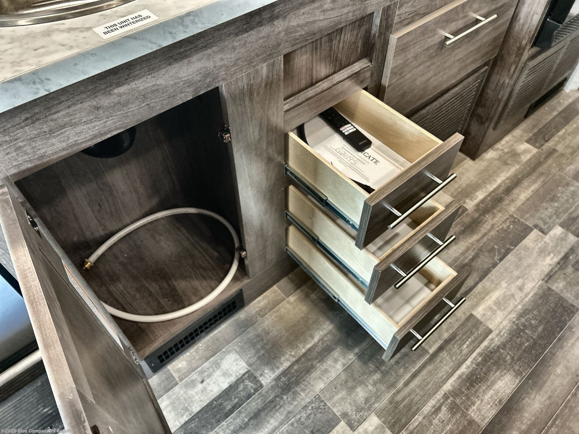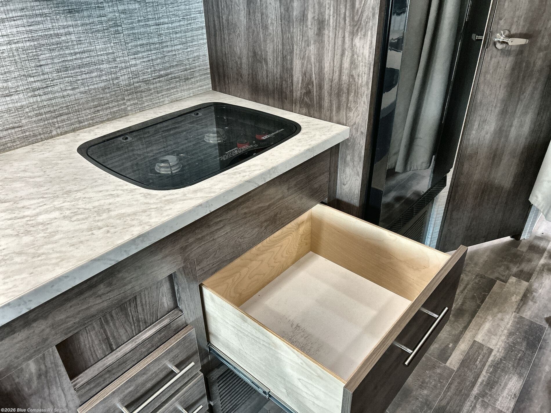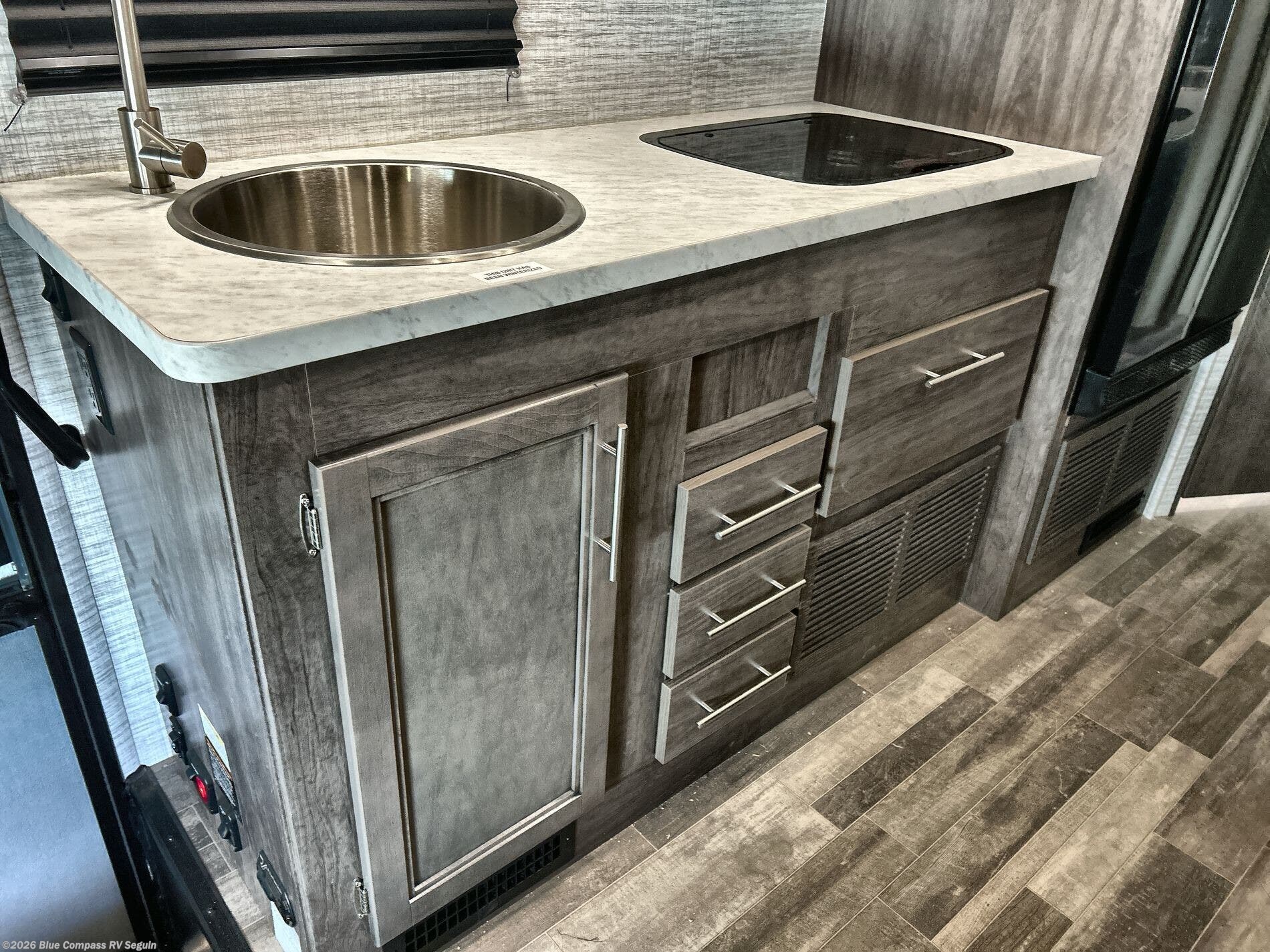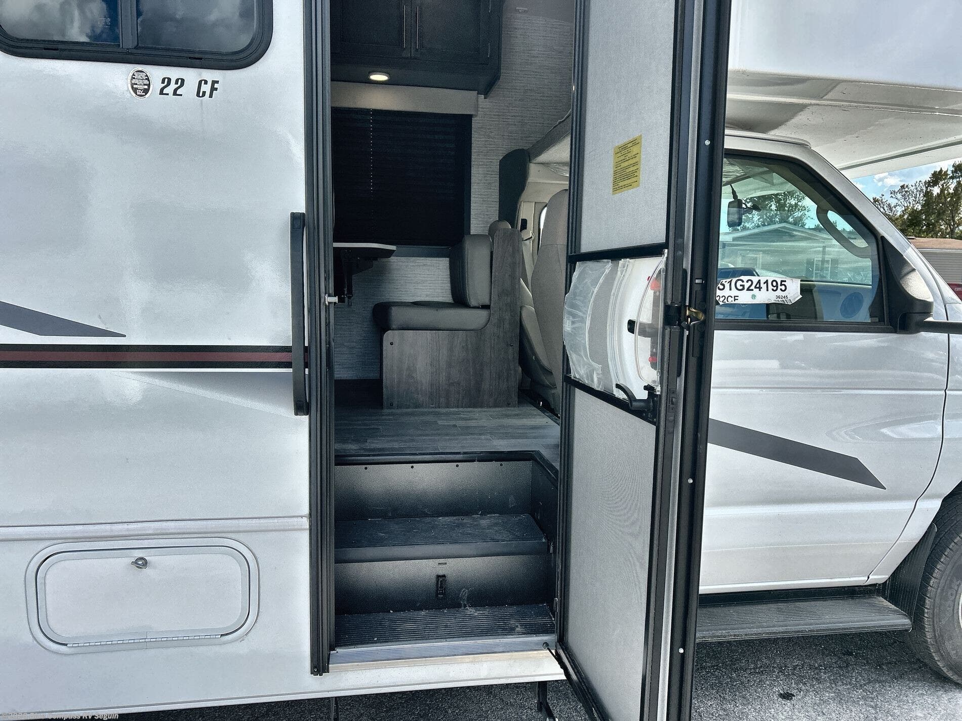 There's a comfortable place to sleep for everyone in this motorhome! From the corner 60" x 70" queen bed that slides out to the bunk over cab, and even the 42" x 70" booth dinette once converted. You can store your favorite snacks and hang up your clothes in the wardrobe/pantry. The chef can prepare delicious meals with the two burner cooktop and if there happens to be any leftovers then they can be stored in the 10 cu. ft. 12V refrigerator. The rear corner bathroom has a 24" x 36" shower that you are sure to enjoy after a long day of traveling!