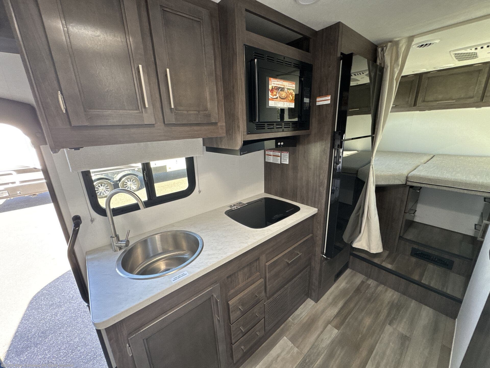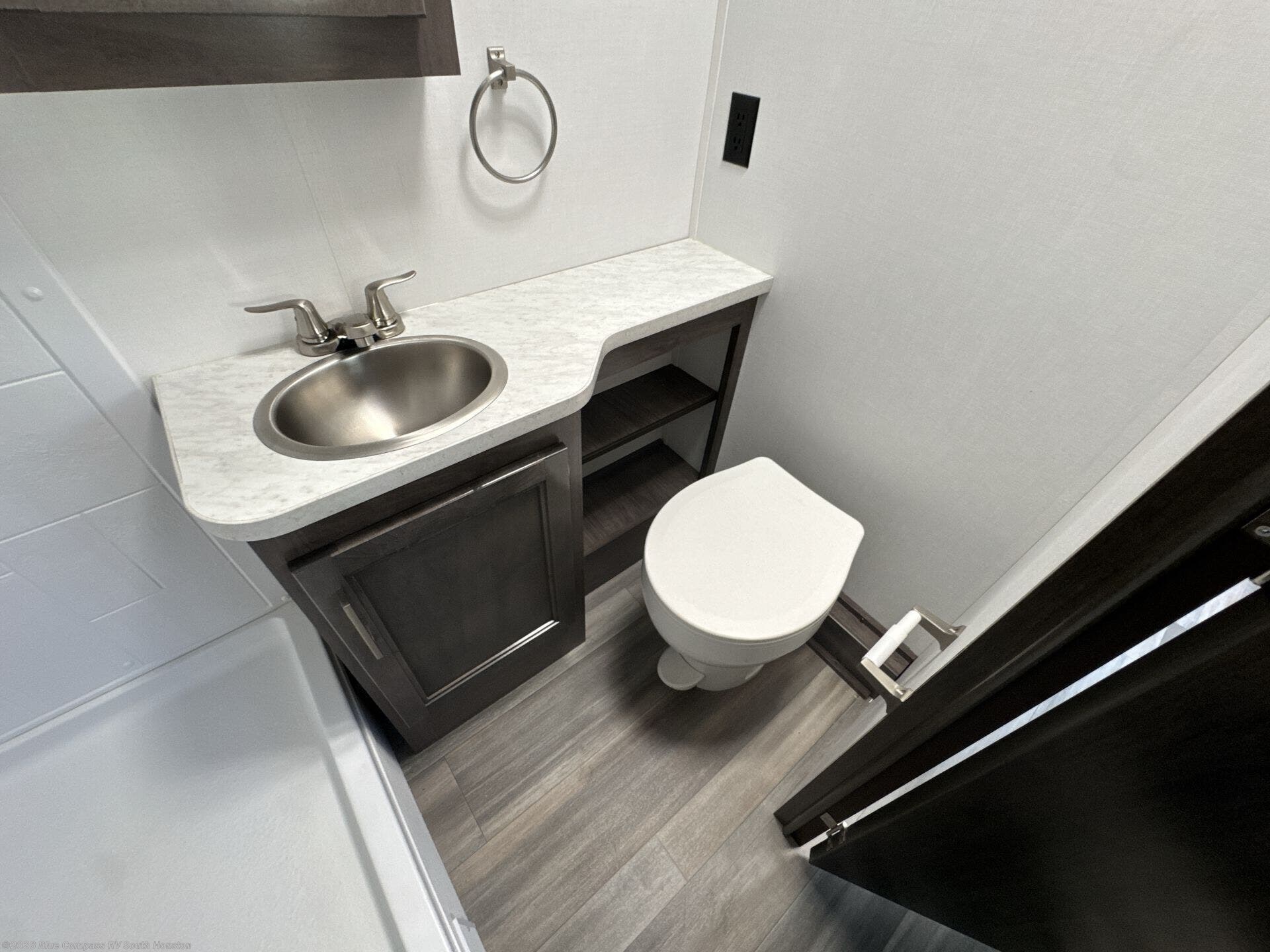 Each journey in this coach will be a journey to remember! Once you arrive at the campground, you can make lunch on the two burner cooktop with a flush cover, or use the convection microwave oven. There is also a 12V refrigerator and overhead cabinets for food, spices, and more. A 48" bench with a removable table will provide a place to dine at, and the mid-coach full bath means you won't have to use the camp's facilities. You'll find two twin beds that convert to a king-size bed in the back, meaning you can camp with your friend or honey!