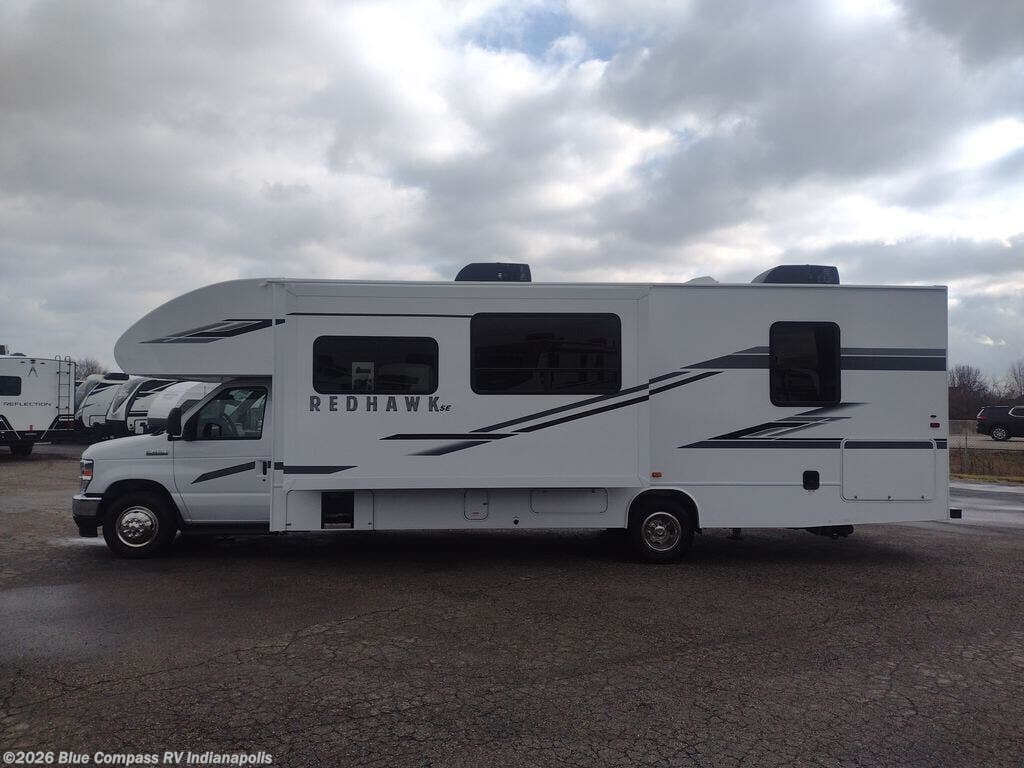 Experience easy living in any one of these Jayco Redhawk SE Class C gas motorhomes! They are built with a Stronghold VBL lamination which is the lightest and strongest construction in the RV industry. The one-piece seamless front cap which helps to resist wear and tear, the Ford E-350 chassis, and the 7.3L V8 325 HP engine reflects the strength and dependable performance built into every unit. The mandatory Customer Value package includes an electric patio awning to protect you rain or shine, an LED HD Smart TV, and a backup camera to make parking and maneuvering easier. You will also love your options that include automatic hydraulic leveling jacks and an optional 200W solar panel with a dual controller and second house battery for off-grid capabilities!