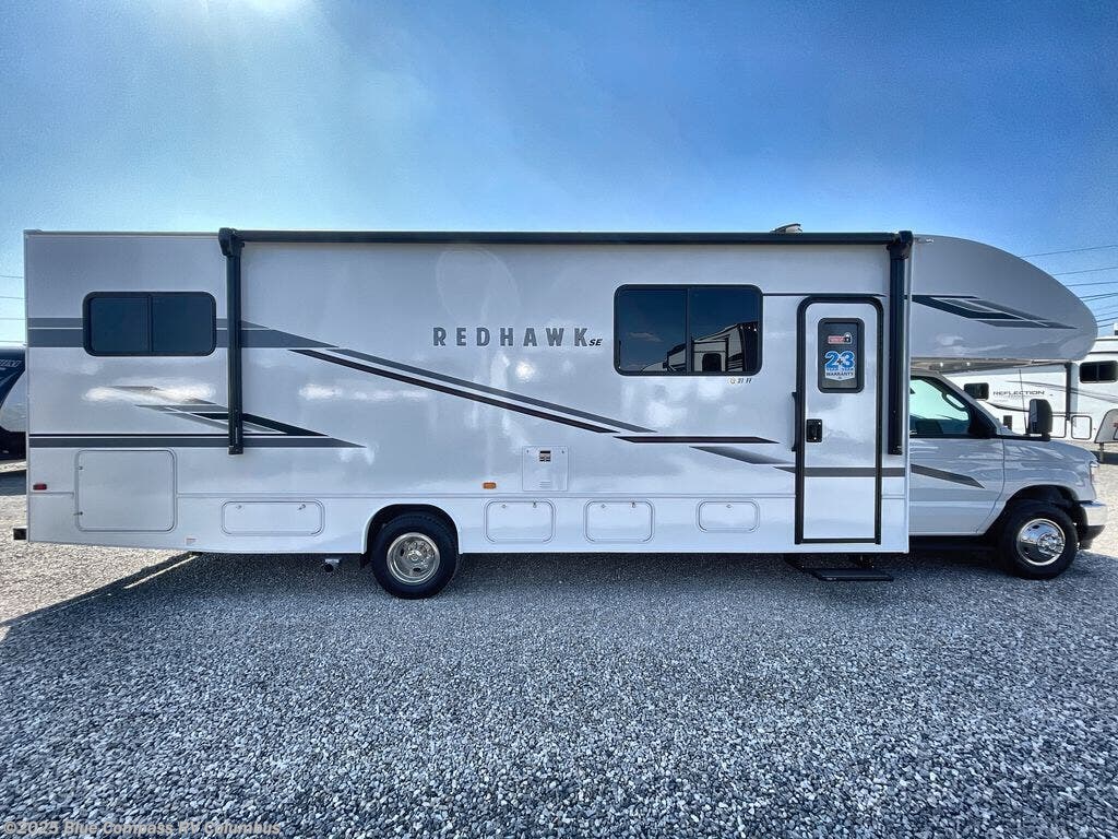 Experience easy living in any one of these Jayco Redhawk SE Class C gas motorhomes! They are built with a Stronghold VBL lamination which is the lightest and strongest construction in the RV industry. The one-piece seamless front cap which helps to resist wear and tear, the Ford E-450 chassis, and the 7.3L V8 325 HP engine shows these units are built to last for years to come. The mandatory Customer Value package includes an electric patio awning to protect you rain or shine, an LED HD Smart TV, and a backup camera to make parking and maneuvering easier. You will also love your options that include automatic hydraulic leveling jacks and an optional 200W solar panel with a dual controller and second house battery for off-grid capabilities!