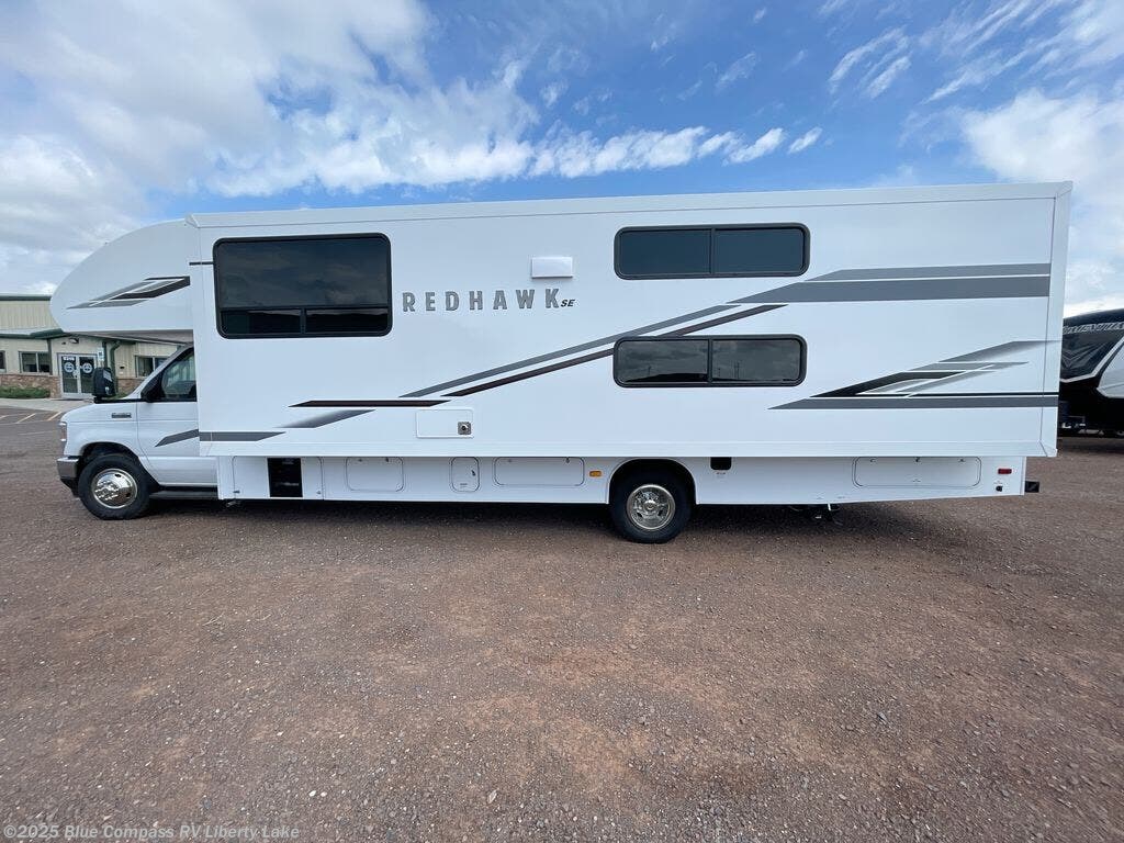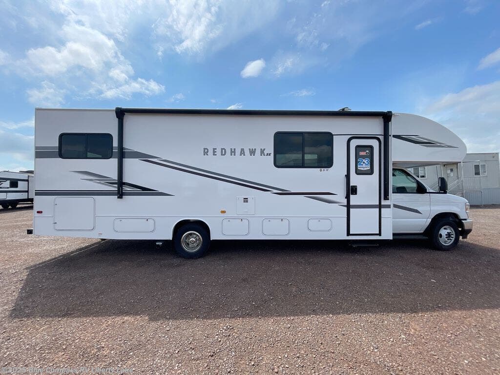 Experience easy living in any one of these Jayco Redhawk SE Class C gas motorhomes! They are built with a Stronghold VBL lamination which is the lightest and strongest construction in the RV industry. The one-piece seamless front cap which helps to resist wear and tear, the Ford E-450 chassis, and the 7.3L V8 325 HP engine shows these units are built to last for years to come. The mandatory Customer Value package includes an electric patio awning to protect you rain or shine, an LED HD Smart TV, and a backup camera to make parking and maneuvering easier. You will also love your options that include automatic hydraulic leveling jacks and an optional 200W solar panel with a dual controller and second house battery for off-grid capabilities!