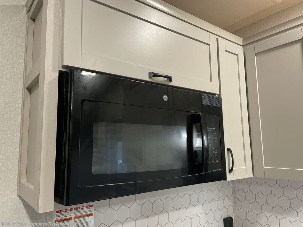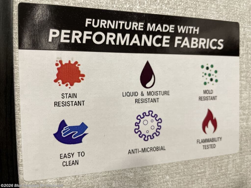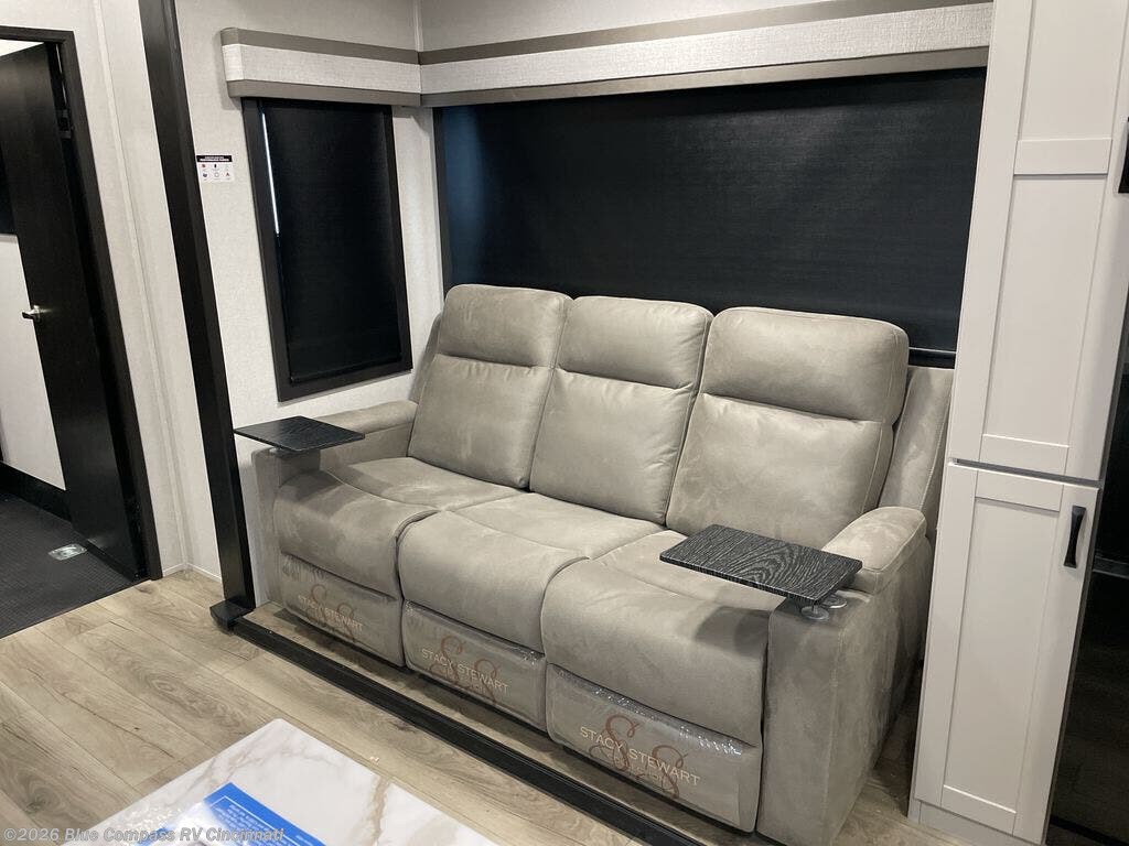 Get ready for outdoor adventures in this spacious toy hauler. Your guests will have the 11' separate garage area with its own half bath, a queen bed with rear convertible sofas, plus an overhead storage area for their things. The main living area includes a large slide out for added space, and here you can relax on the sofa that sits across from the entertainment center and fireplace. The chef will love the U-shaped kitchen counter, 17 cu. ft. 12V refrigerator, and residential oven with a three-burner cooktop. You will feel right at home in the front private bedroom with its slide out wardrobe and Olympic queen bed for all-around comfort.