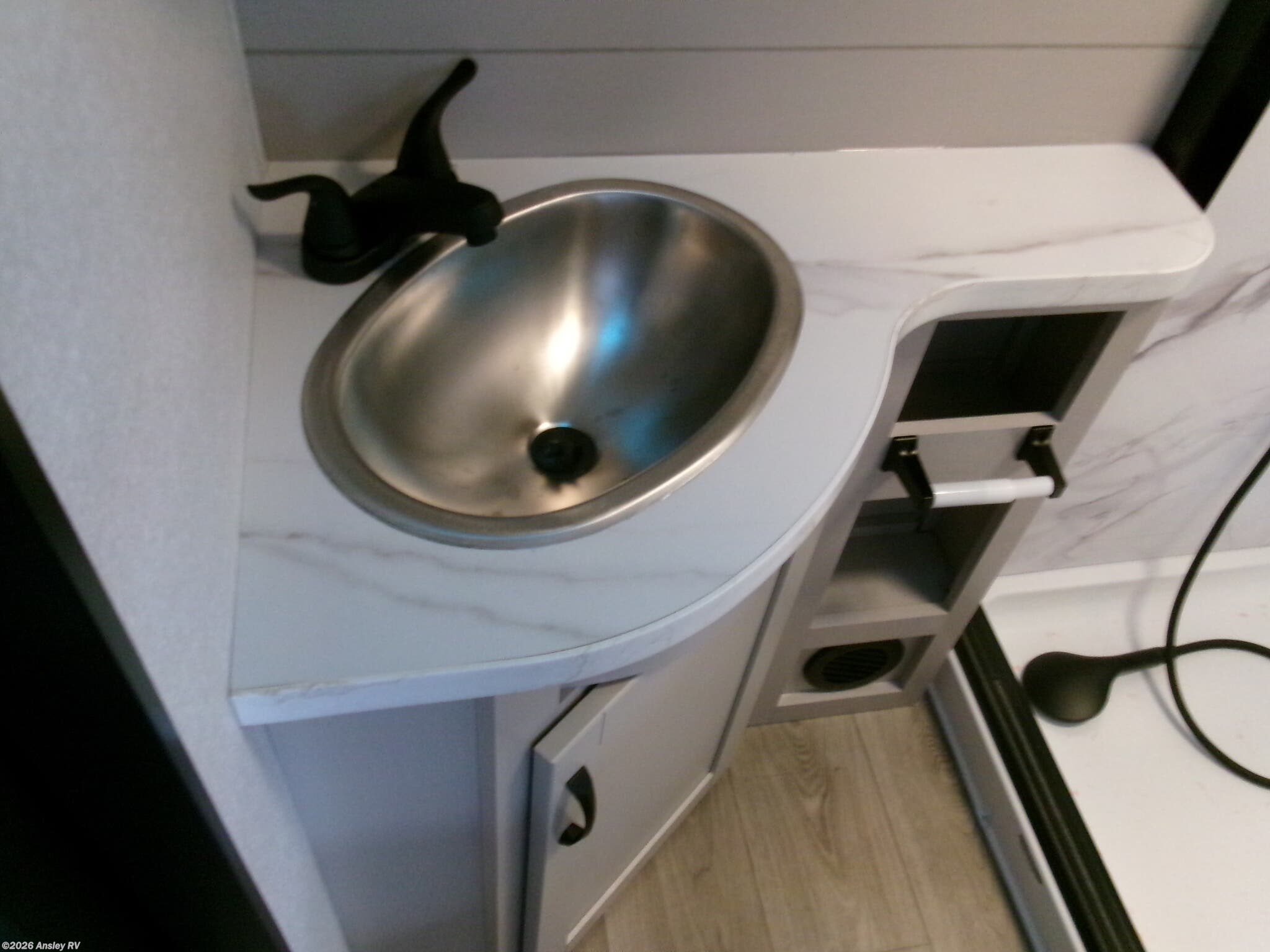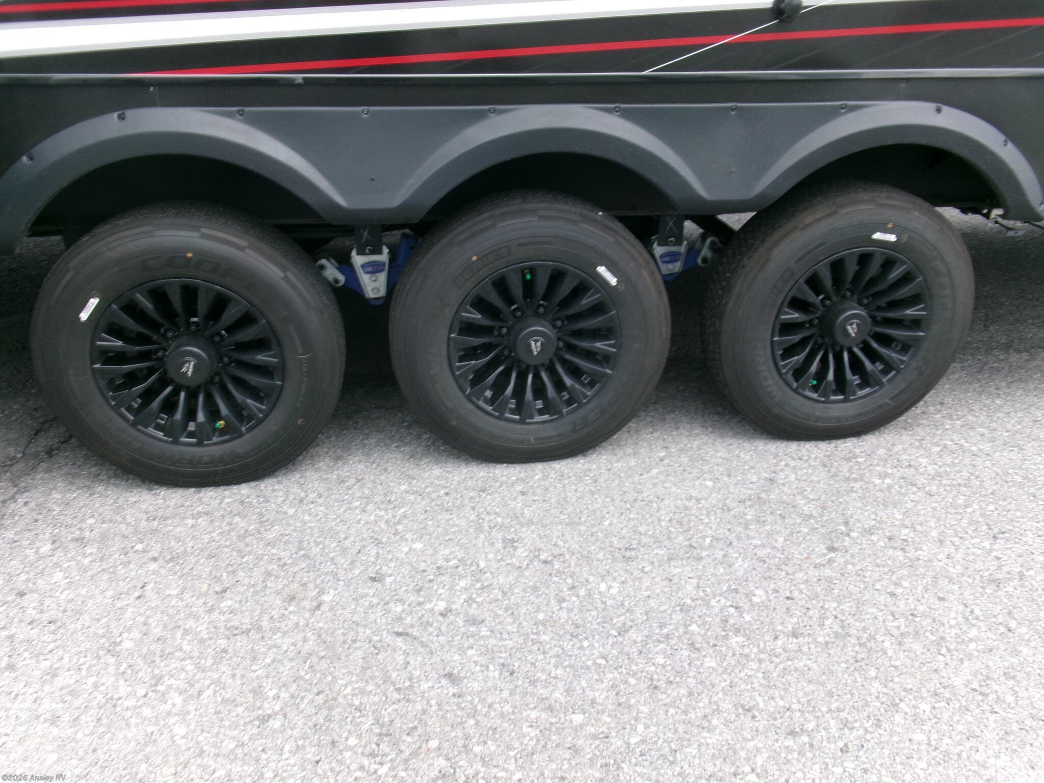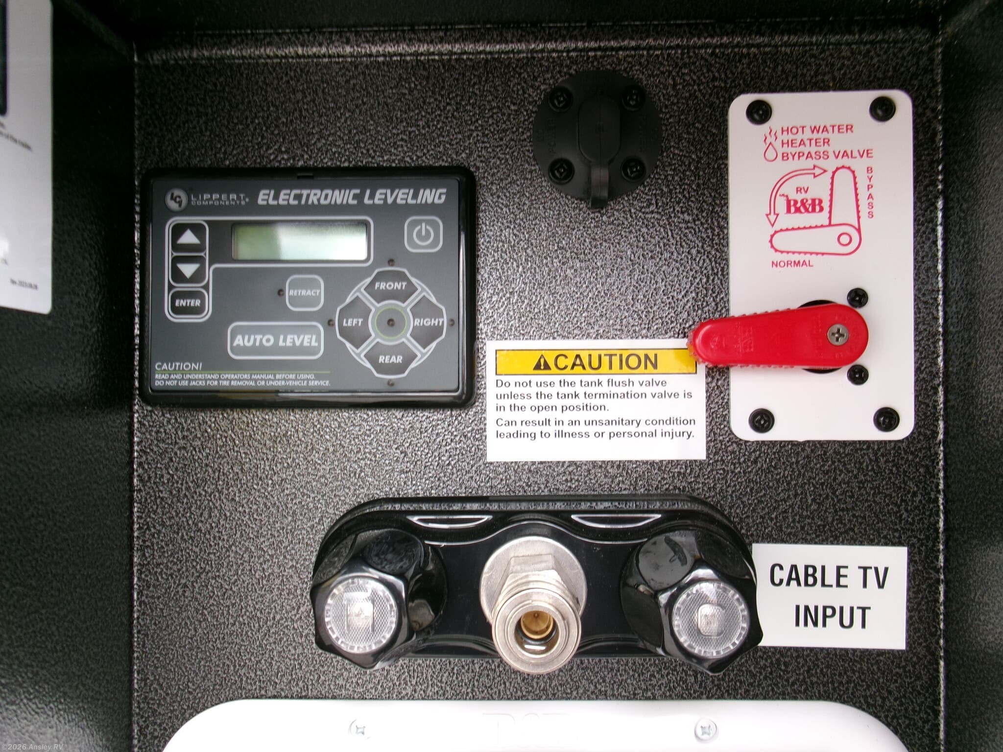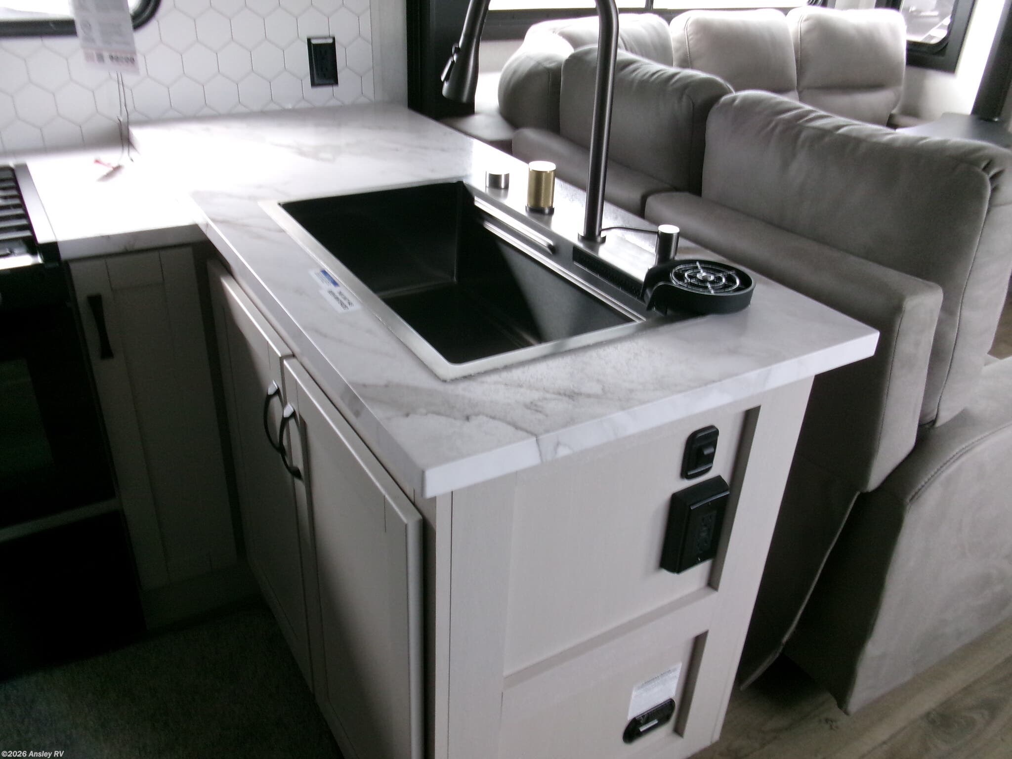 - A comprehensive water system with 106 gallons of fresh water capacity, and 87 gallons each for black and grey water tanks