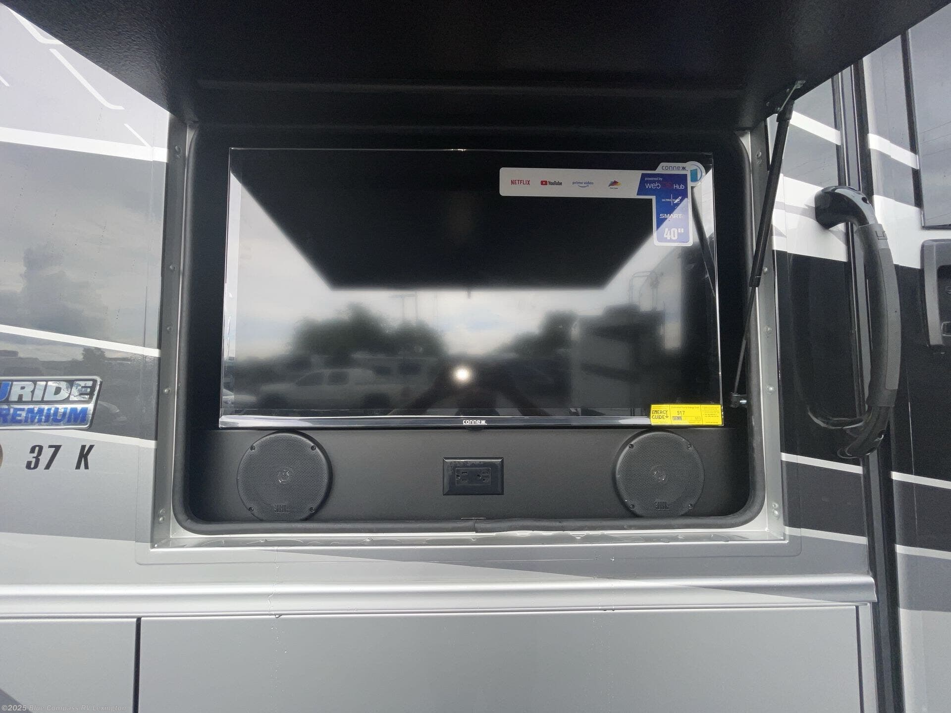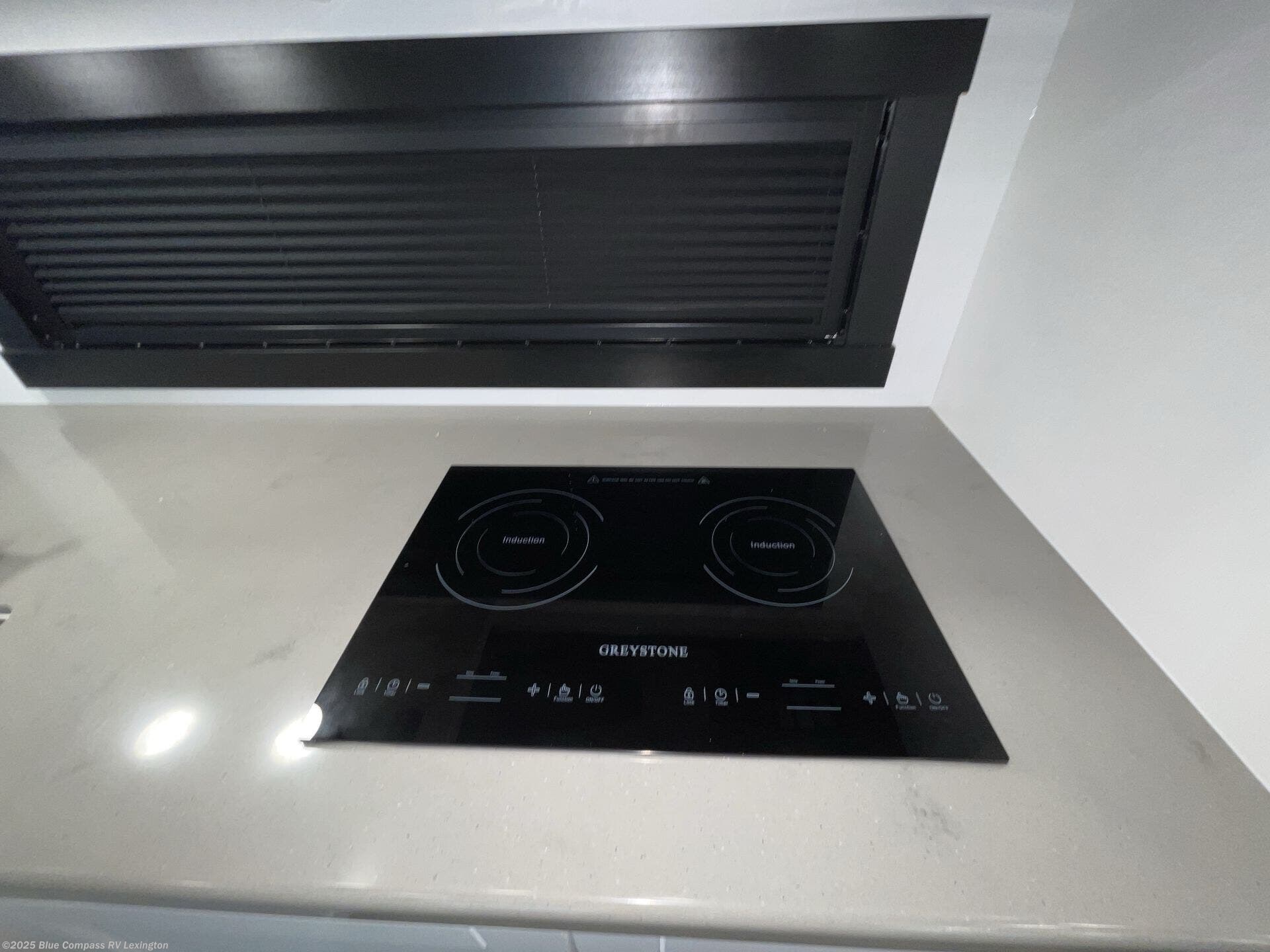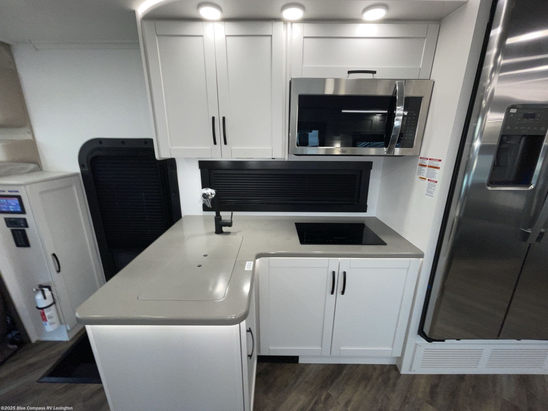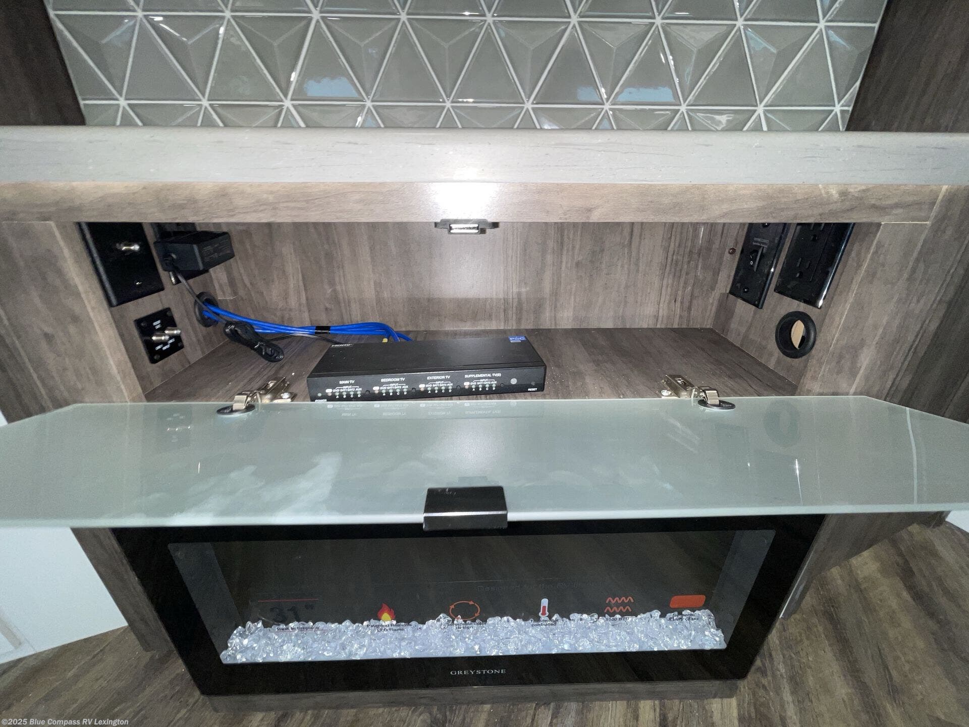 You will find lots to love with this motorhome! From the bath and a half to the bunk over cab and outside entertainment center. The chef can prepare their best meals with the two burner induction cooktop and the residential refrigerator. There's a large pantry next to the booth dinette so you can quickly grab a snack during game night or if you prefer to relax instead then you can enjoy the fireplace and 39" LED HD Smart Fire TV while sitting on the 93" reclining sofa. The master suite has a king bed slide with a power head lift to lay your head on at night, an LED HD Smart TV with a wardrobe and storage area next to it, as well as an area prepped to add an optional washer and dryer. You even have access to the full rear bathroom which has a 30" x 36" shower and a wardrobe to keep your linens close.