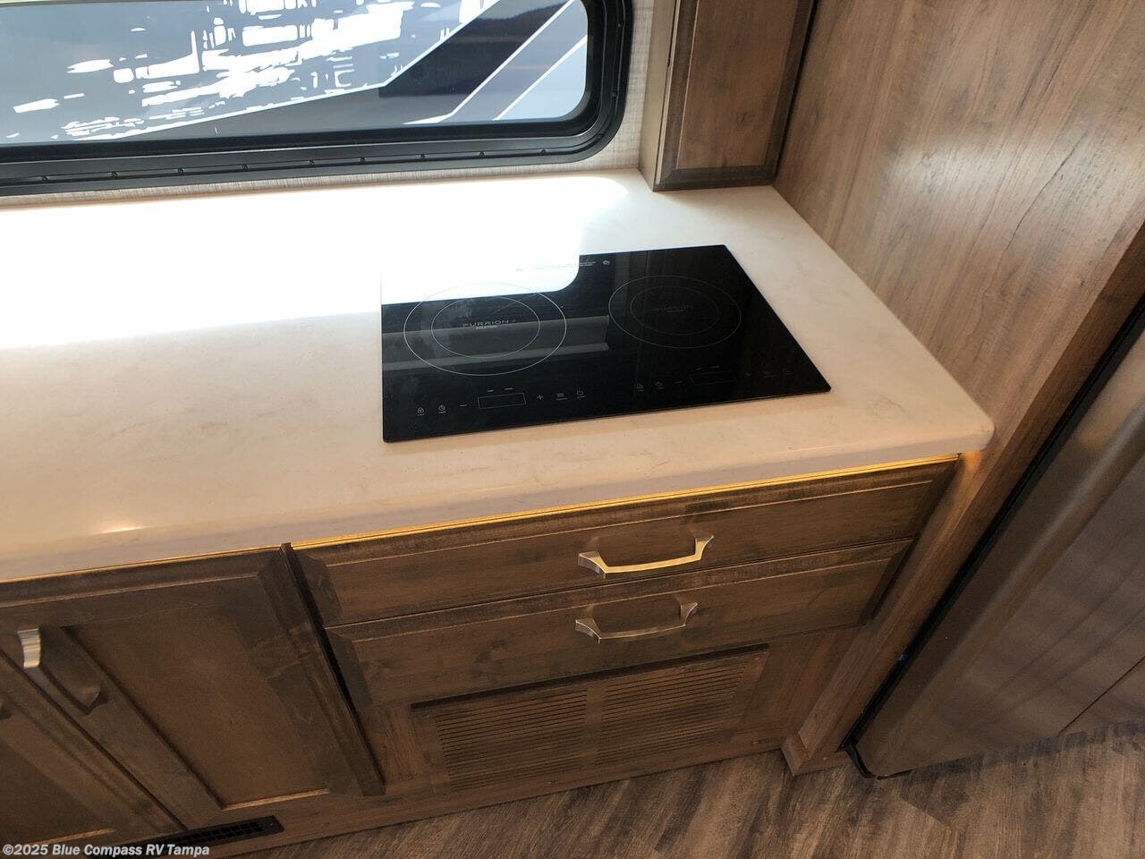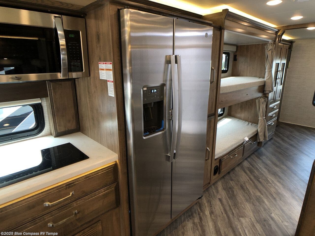 The whole family can join in on the fun with this motorhome! The bunk over cab, the set of bunk beds and king bed slide with power head lift in the rear private bedroom offer comfortable places to sleep. Plus, the hide-a-bed sofa and the booth dinette can also transform into extra sleeping spaces when you're not using the dinette for meals and the sofa for seating to watch a movie on the 50" LED HD Smart TV and fireplace. Everyone will stay squeaky clean with the 30" x 36" shower in the full bathroom, and their bellies full with the two-burner induction cooktop and residential refrigerator!