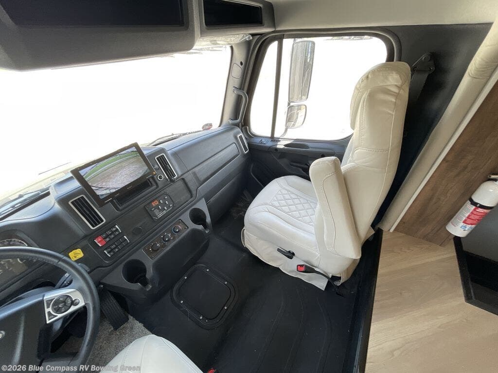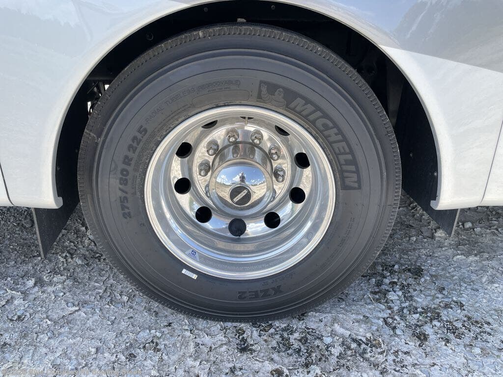 You will be quite impressed with the Jayco Seneca Super C diesel motorhome! The construction consists of a Stronghold VBL roof, floor, and sidewalls, and the premium Sikkens full-body paint is going to draw attention as you cruise down the highway. The entrance door has the industry's largest travel-view window, and you have four 6V AGM (220Ah) house batteries on a slide out tray for convenience. The Firefly multiplex system will give you access to your coach's functions from the smartphone in your hand, and the matte-finish woodgrain polished porcelain tile flooring has a heated floor mat for extra comfort. The luxury continues on with the addition of the solid-surface countertops and water filtration system, and the 9" Sony® infotainment center with Apple CarPlay® and Android Auto™ as well as the backup and sideview cameras are an excellent contribution to the front cab area.