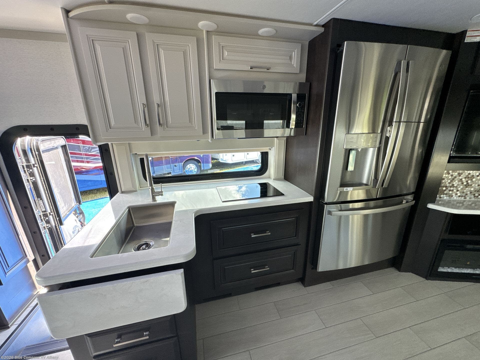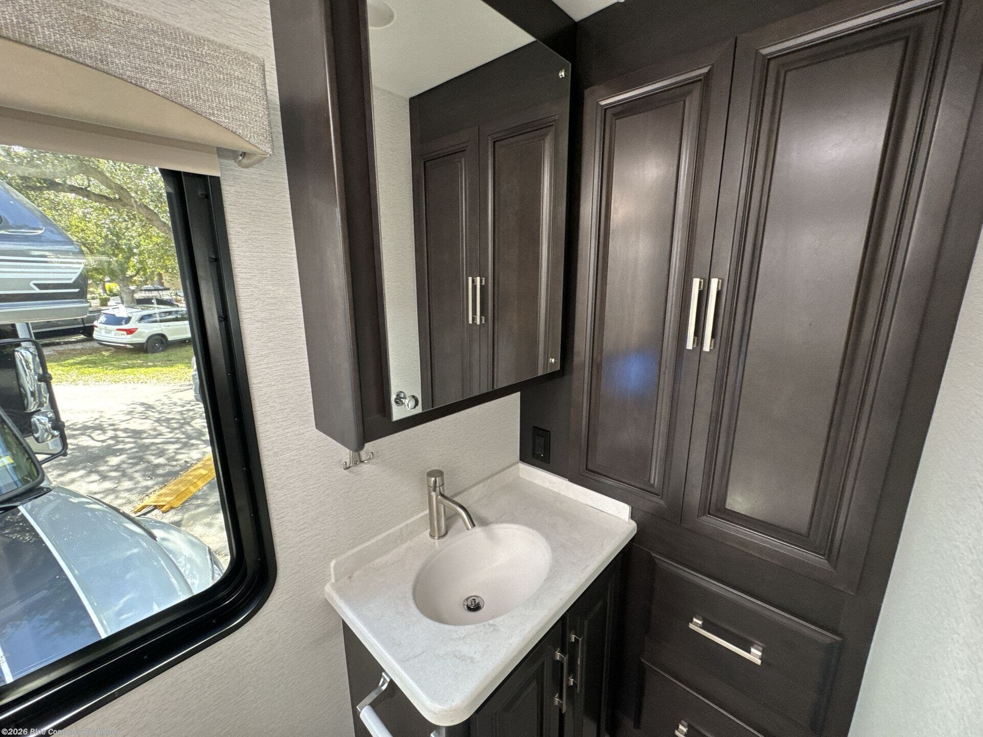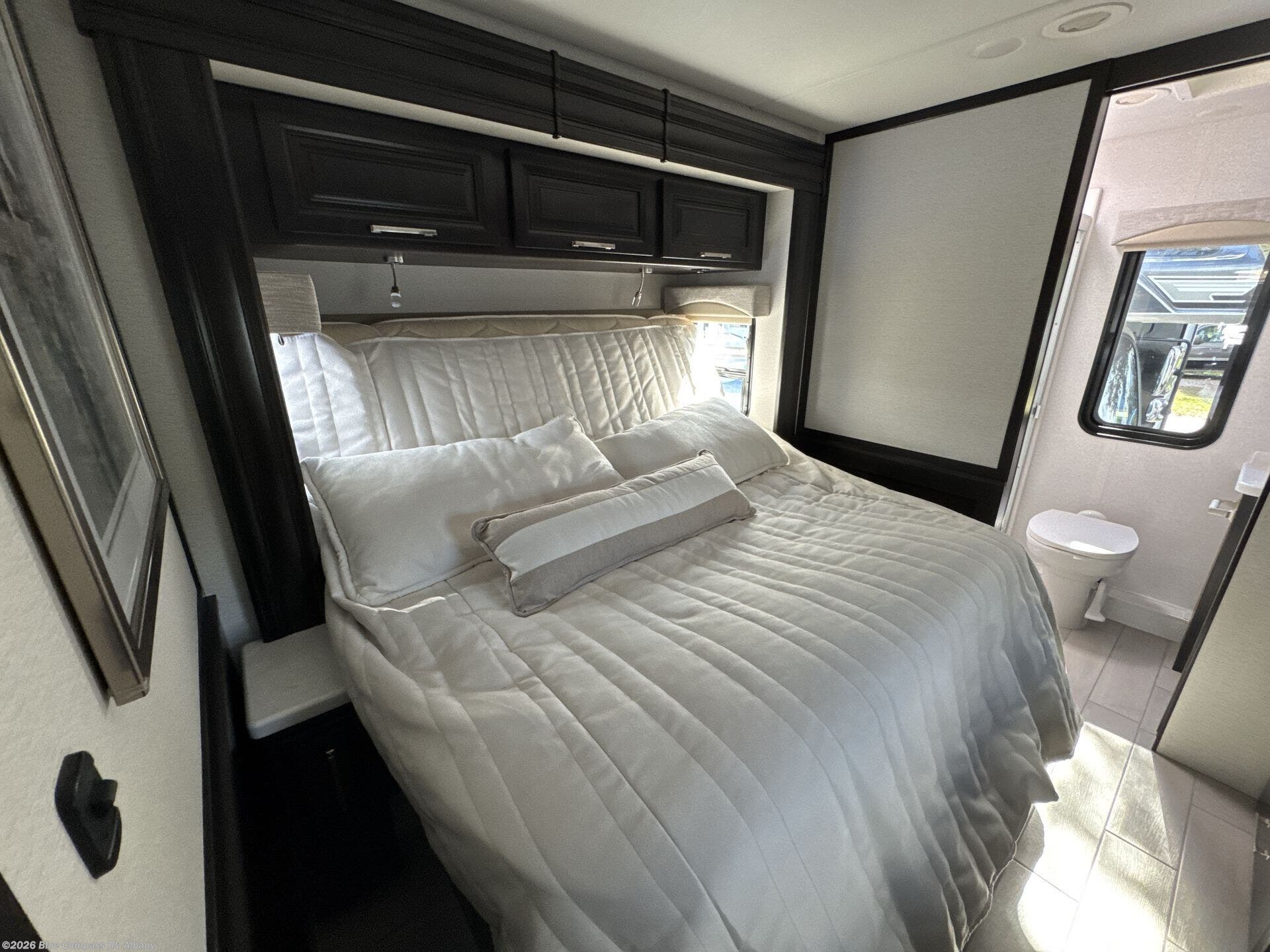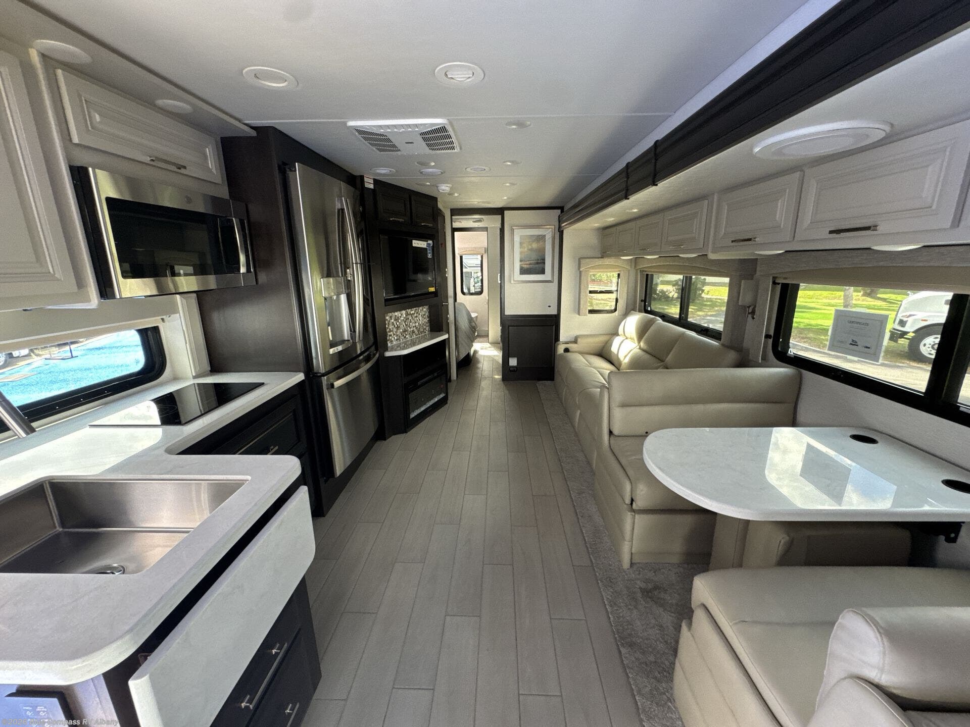 You won't be able to see past the luxury found on this Seneca Prestige Super C diesel motorhome! The first thing that feels ultra glamorous is the master suite which has its very own full bathroom, and the fact that this coach has both a full and a half bathroom will push you towards inviting guests. The main living area is kept spacious when you open up the large slide, and you can also create some more countertop space in the kitchen by opening up the countertop extension. If you want to make fast meals, use the flush-mounted convection microwave, and if you want to host a late-night party, set up the exterior entertainment center which comes with an LED TV mounted on a swivel bracket, a soundbar, and an AM/FM radio.