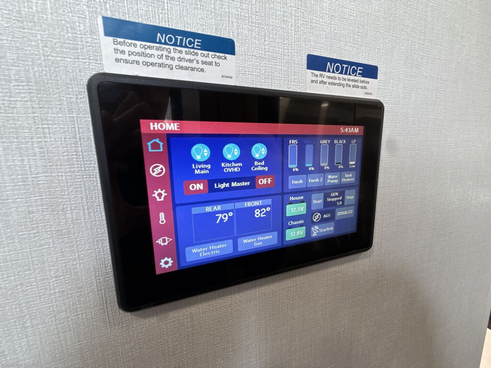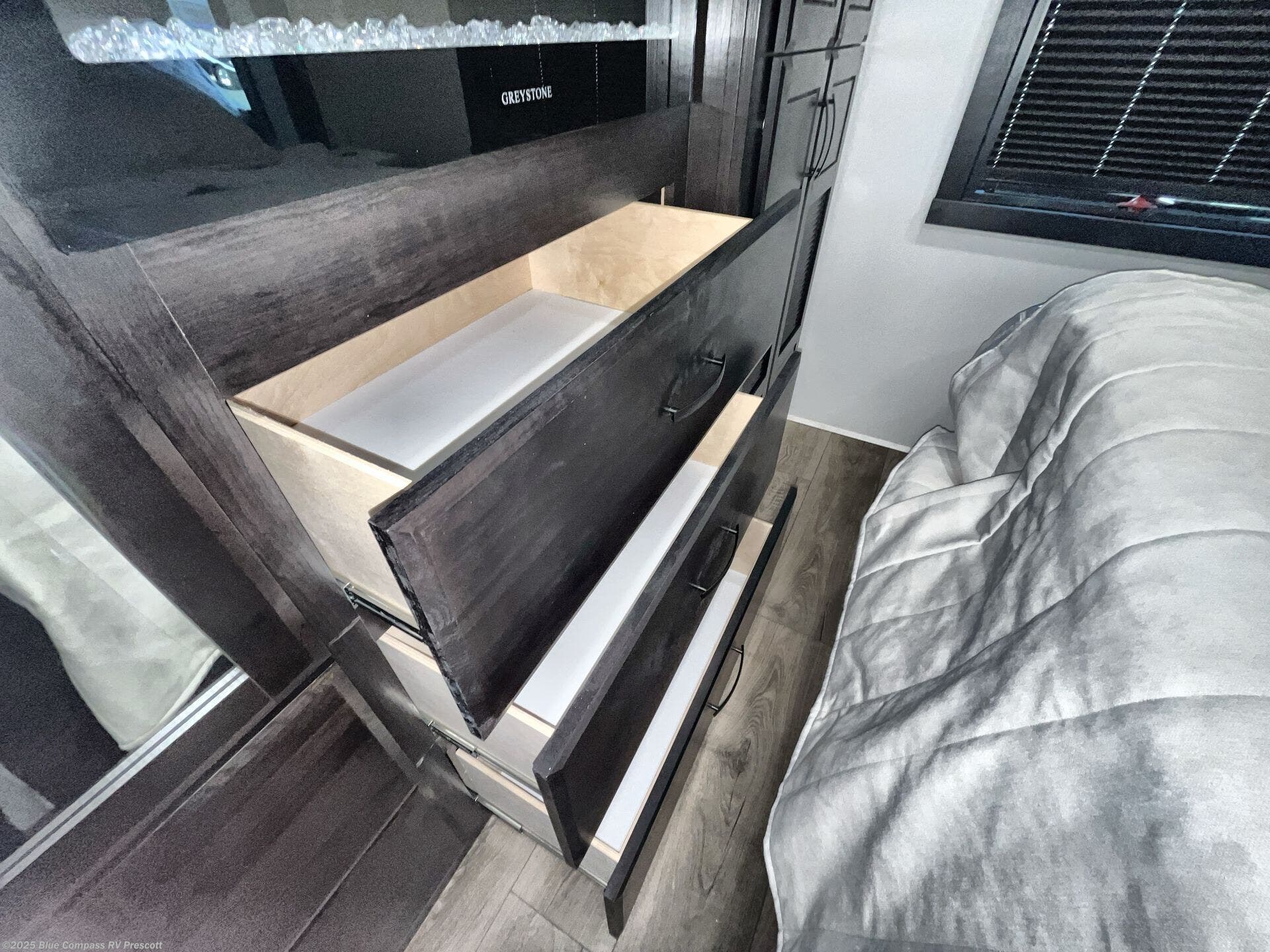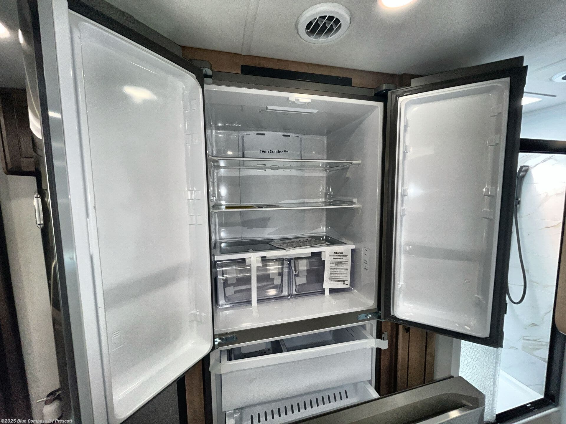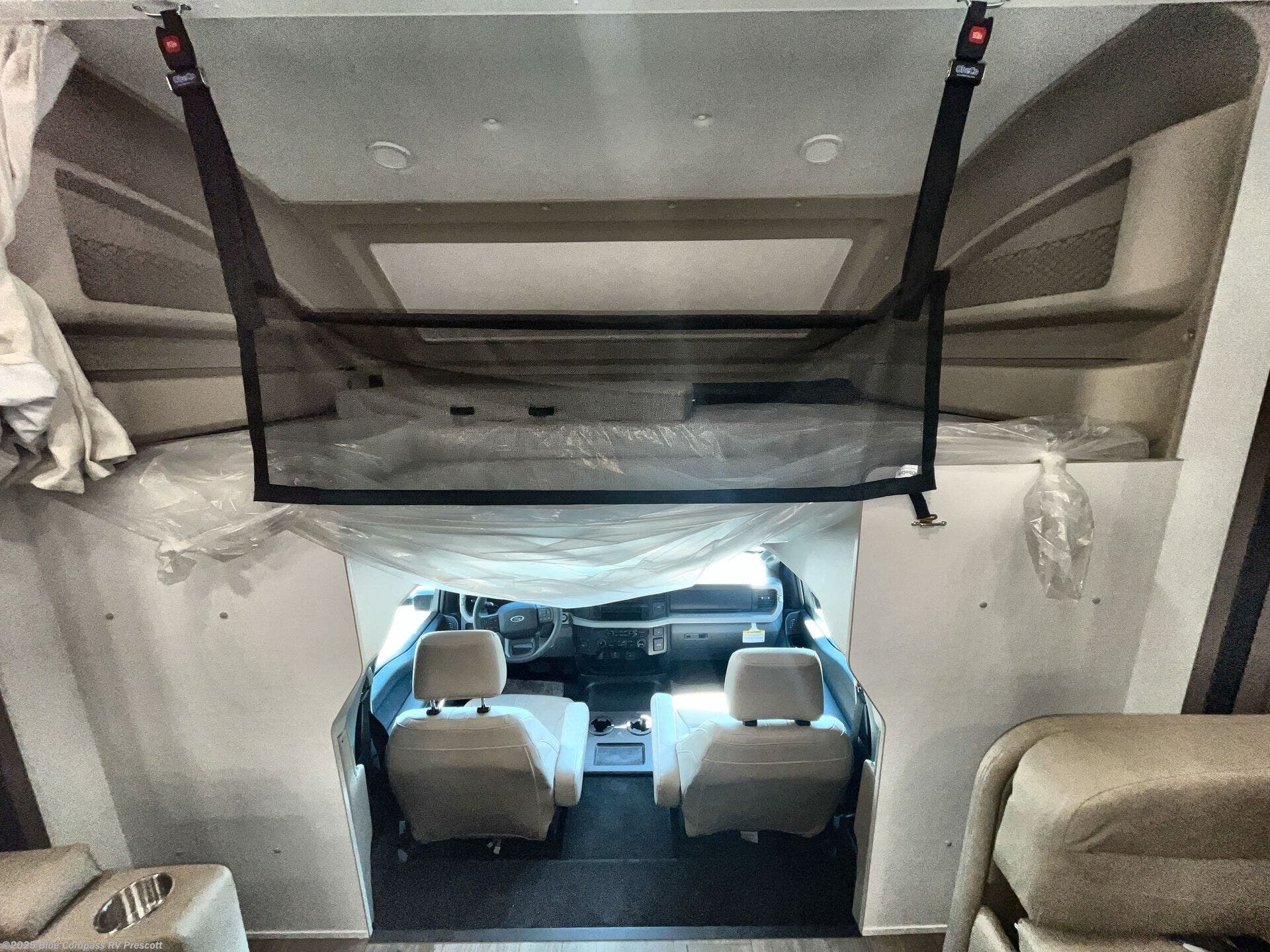 You will get a good night's rest each night in this motorhome! The rear private bedroom has a 72" x 80" king bed slide with power head lift across from a fireplace, a wardrobe, a TV cabinet, and an area prepped for an optional washer and dryer combo so you can have clean clothes throughout your entire trip. The separated bathroom makes it easy for one person to clean up in the 30" x 36" shower while another uses the private toilet and sink. Prepare your best home cooked meals with the two burner cooktop then enjoy them at the 38" x 70" booth dinette with a 50" TV lift above it. The cabover bunk provides a comfortable place to sleep and the 60" tri-fold sofa can also be a sleeping space too!
