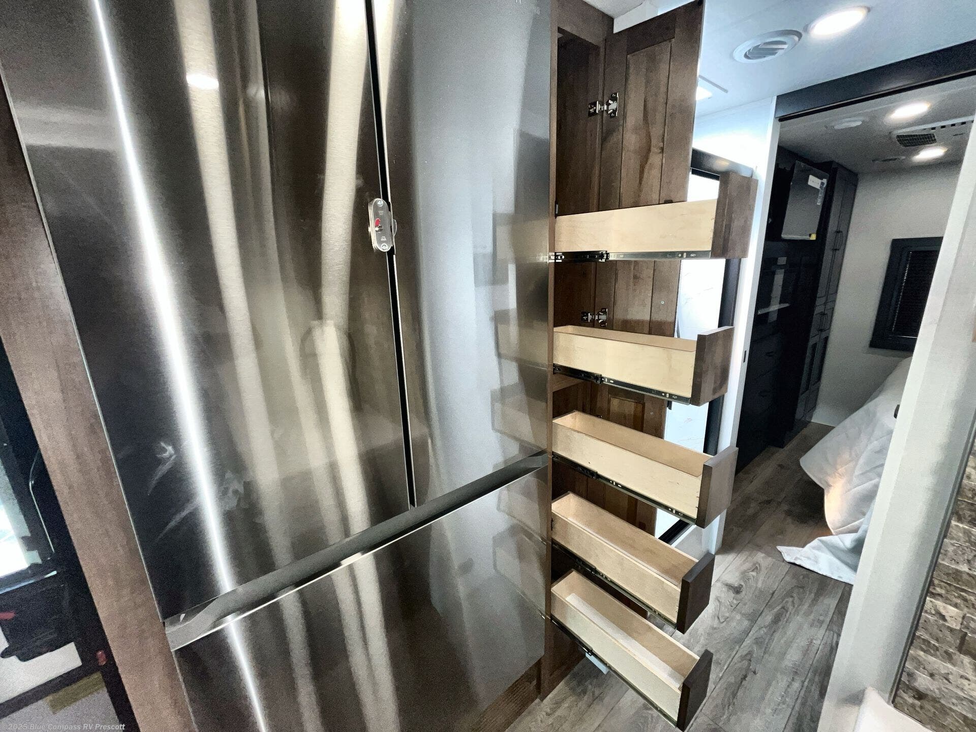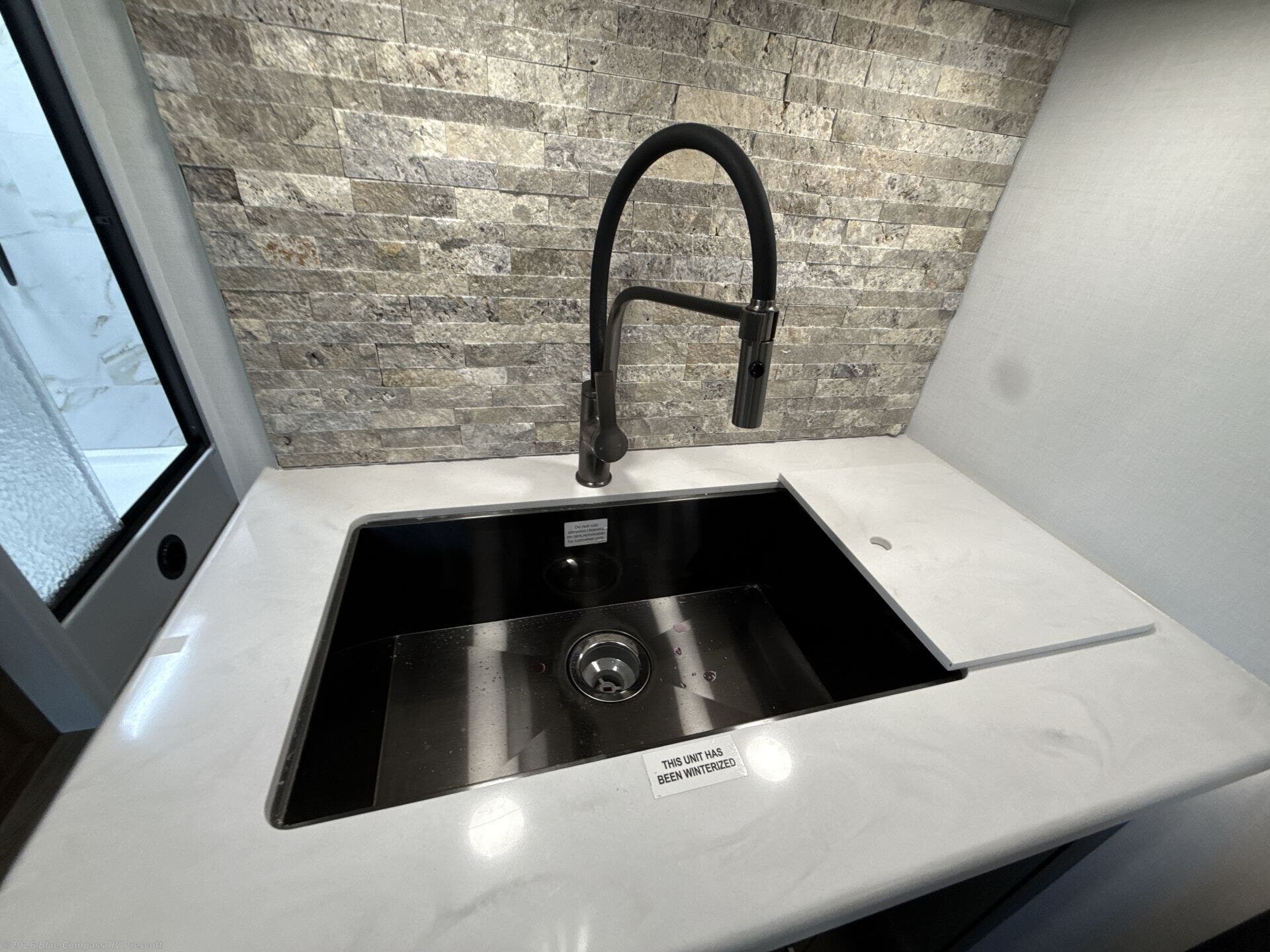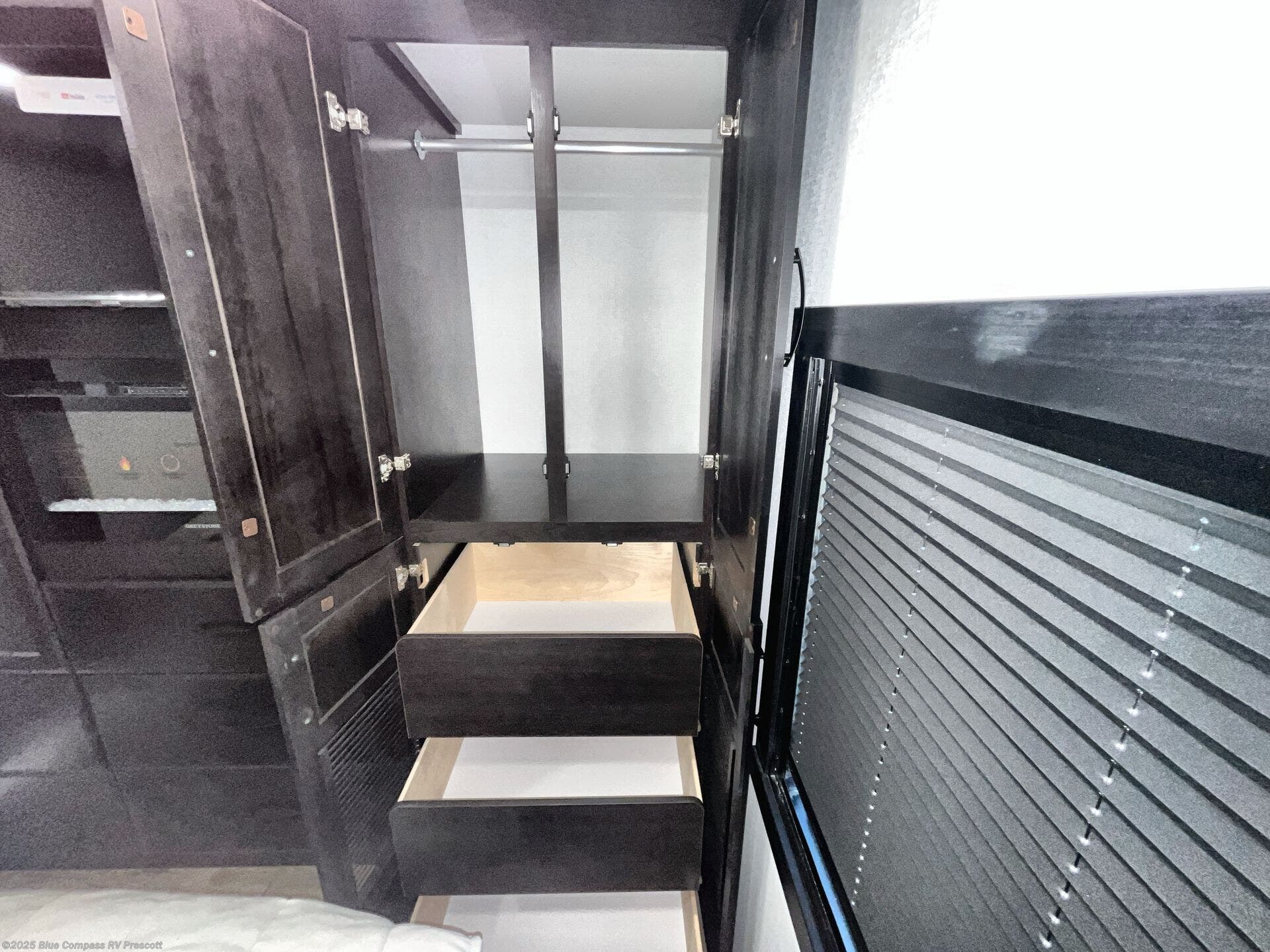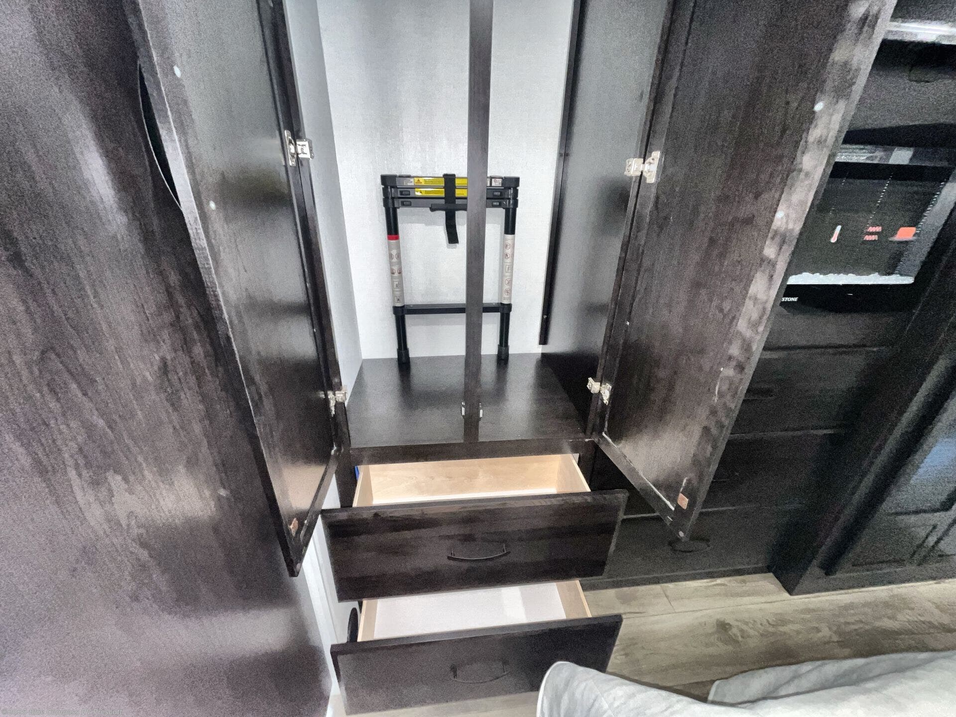 You will get a good night's rest each night in this motorhome! The rear private bedroom has a 72" x 80" king bed slide with power head lift across from a fireplace, a wardrobe, a TV cabinet, and an area prepped for an optional washer and dryer combo so you can have clean clothes throughout your entire trip. The separated bathroom makes it easy for one person to clean up in the 30" x 36" shower while another uses the private toilet and sink. Prepare your best home cooked meals with the two burner cooktop then enjoy them at the 38" x 70" booth dinette with a 50" TV lift above it. The cabover bunk provides a comfortable place to sleep and the 60" tri-fold sofa can also be a sleeping space too!