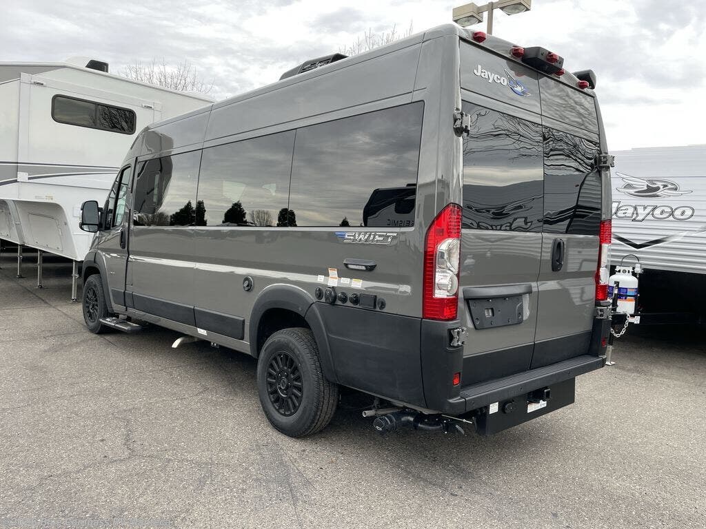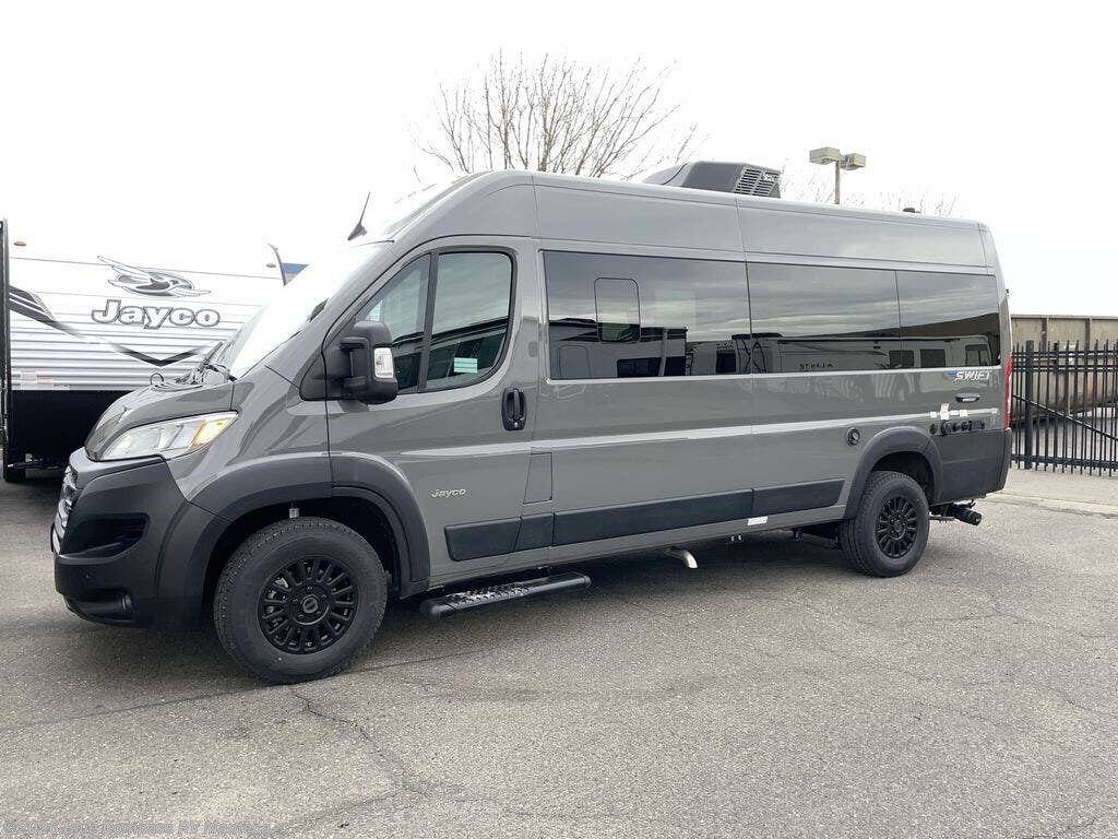 Head out on your greatest adventures with one of these Jayco Swift Class B gas motorhomes! Each model includes the JRide system with Hellwig helper springs and a premium heavy-duty suspension for smooth handling, and the Thule armless patio awning with LED lights will create an outdoor living space you are sure to love. Head inside to find pressed countertops, sliding vented windows, a soft-touch vinyl ceiling, plus many more comforts. The Uconnect 5 NAV infotainment center with Apple CarPlay® and Android Auto™ will also come in handy as you travel to your destination. An optional 200W roof-mounted solar panel can be added, along with the optional Li Package that features a lithium smart battery, Timberline hydronic heating system, a 3,000W inverter, and more power features!
