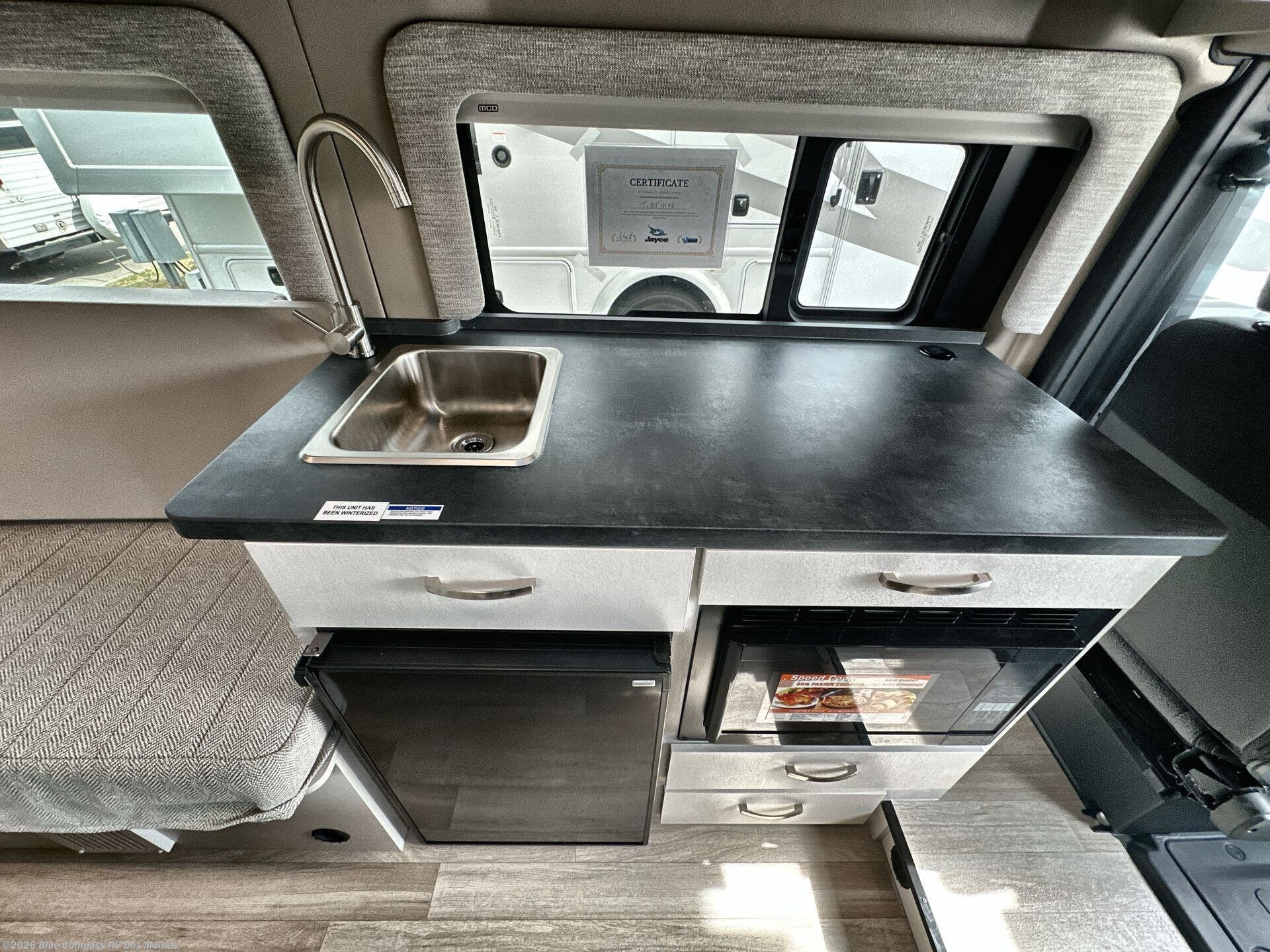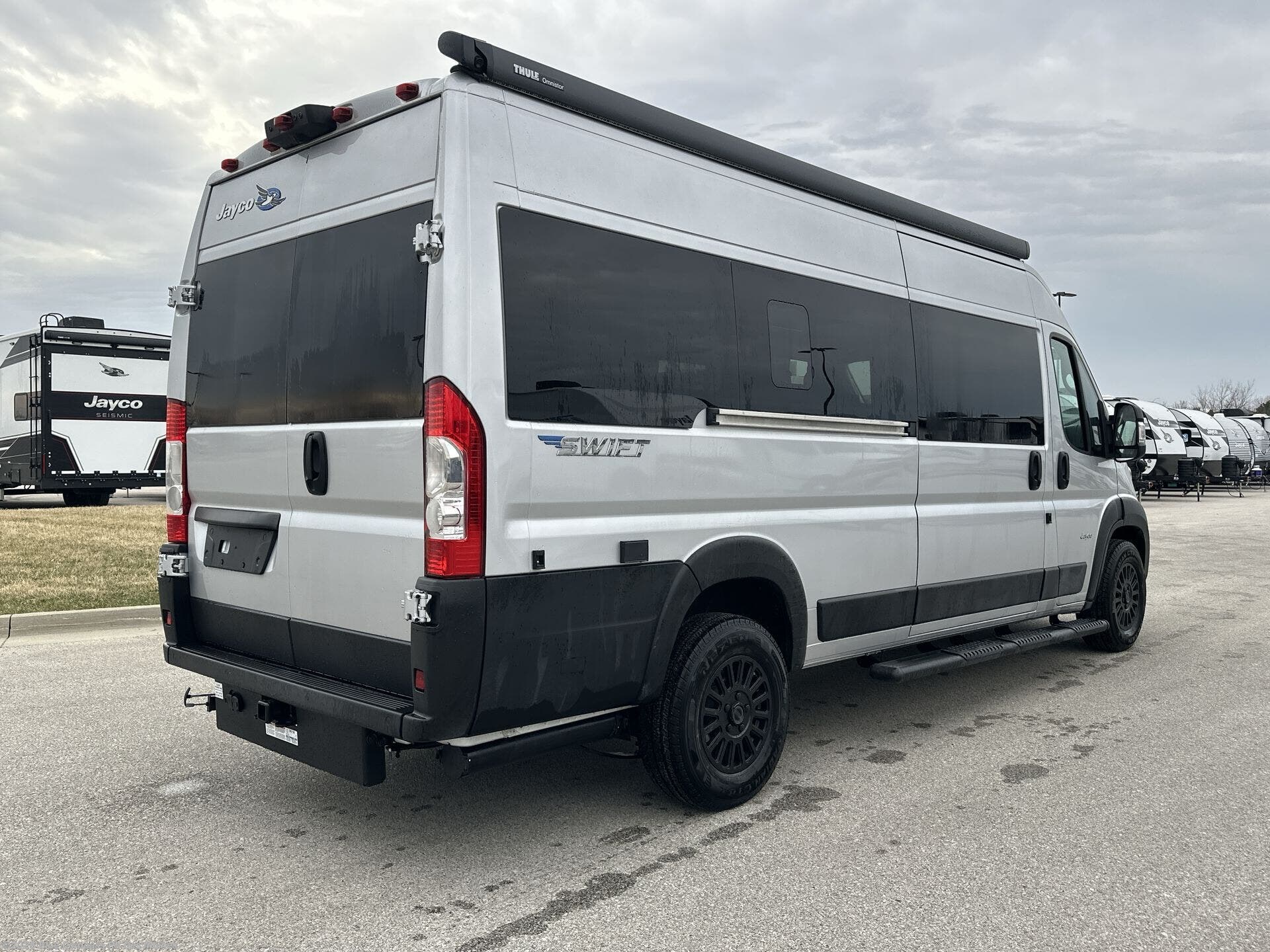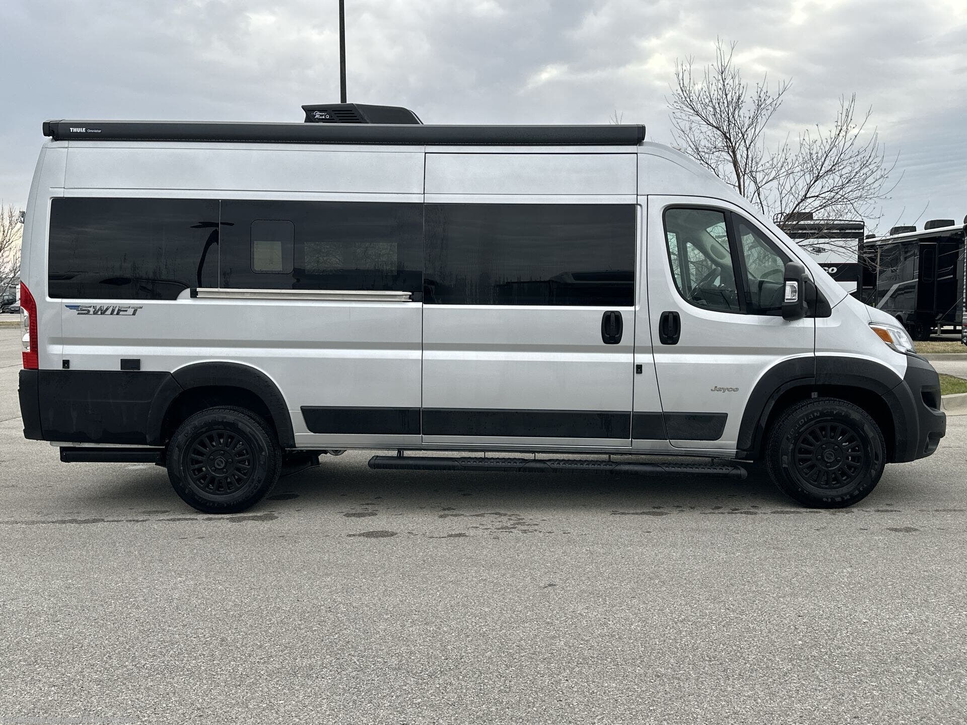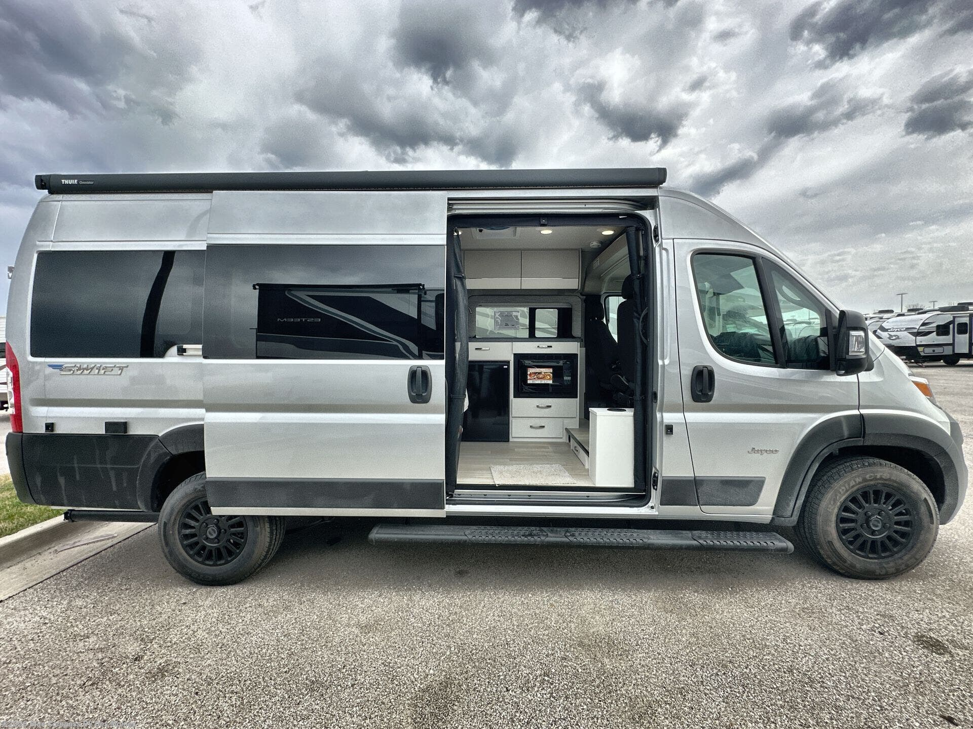 Head out on your greatest adventures with one of these Jayco Swift Class B gas motorhomes! Each model includes the JRide system with Hellwig helper springs and a premium heavy-duty suspension for smooth handling, and the Thule armless patio awning with LED lights will create an outdoor living space you are sure to love. Head inside to find pressed countertops, sliding vented windows, a soft-touch vinyl ceiling, plus many more comforts. The Uconnect 5 NAV infotainment center with Apple CarPlay® and Android Auto™ will also come in handy as you travel to your destination. An optional 200W roof-mounted solar panel can be added, along with the optional Li Package that features a lithium smart battery, Timberline hydronic heating system, a 3,000W inverter, and more power features!