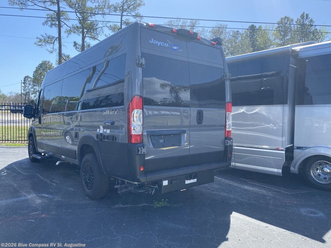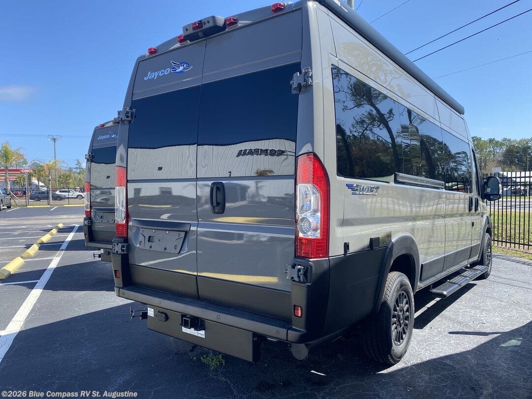 Head out on your greatest adventures with one of these Jayco Swift Class B gas motorhomes! Each model includes the JRide system with Hellwig helper springs and a premium heavy-duty suspension for smooth handling, and the Thule armless patio awning with LED lights will create an outdoor living space you are sure to love. Head inside to find pressed countertops, sliding vented windows, a soft-touch vinyl ceiling, plus many more comforts. The Uconnect 5 NAV infotainment center with Apple CarPlay® and Android Auto™ will also come in handy as you travel to your destination. An optional 200W roof-mounted solar panel can be added, along with the optional Li Package that features a lithium smart battery, Timberline hydronic heating system, a 3,000W inverter, and more power features!