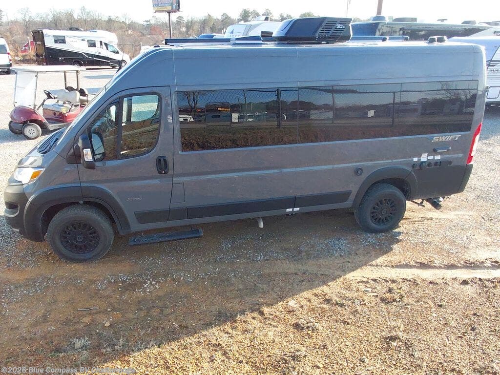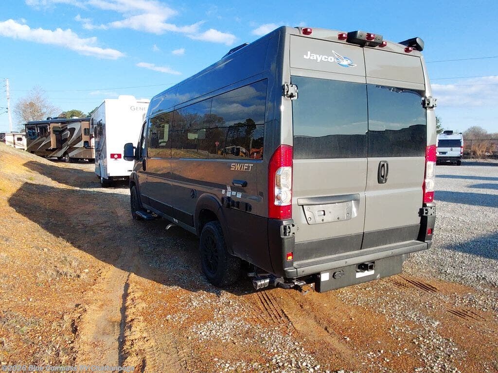 Head out on your greatest adventures with one of these Jayco Swift Class B gas motorhomes! Each model includes the JRide system with Hellwig helper springs and a premium heavy-duty suspension for smooth handling, and the Thule armless patio awning with LED lights will create an outdoor living space you are sure to love. Head inside to find pressed countertops, sliding vented windows, a soft-touch vinyl ceiling, plus many more comforts. The Uconnect 5 NAV infotainment center with Apple CarPlay® and Android Auto™ will also come in handy as you travel to your destination. An optional 200W roof-mounted solar panel can be added, along with the optional Li Package that features a lithium smart battery, Timberline hydronic heating system, a 3,000W inverter, and more power features!
