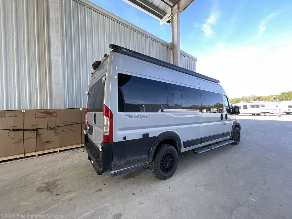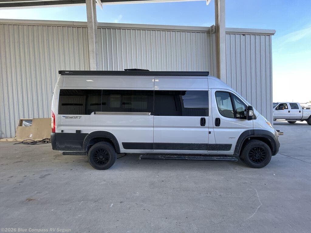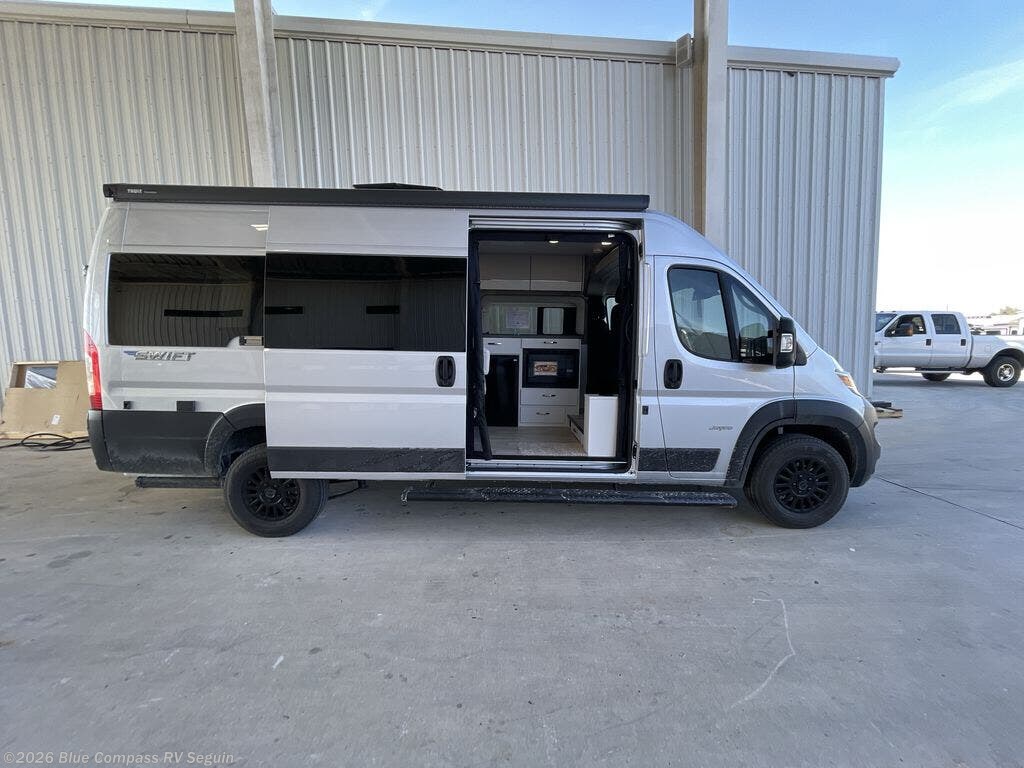 Head out on your greatest adventures with one of these Jayco Swift Class B gas motorhomes! Each model includes the JRide system with Hellwig helper springs and a premium heavy-duty suspension for smooth handling, and the Thule armless patio awning with LED lights will create an outdoor living space you are sure to love. Head inside to find pressed countertops, sliding vented windows, a soft-touch vinyl ceiling, plus many more comforts. The Uconnect 5 NAV infotainment center with Apple CarPlay® and Android Auto™ will also come in handy as you travel to your destination. An optional 200W roof-mounted solar panel can be added, along with the optional Li Package that features a lithium smart battery, Timberline hydronic heating system, a 3,000W inverter, and more power features!