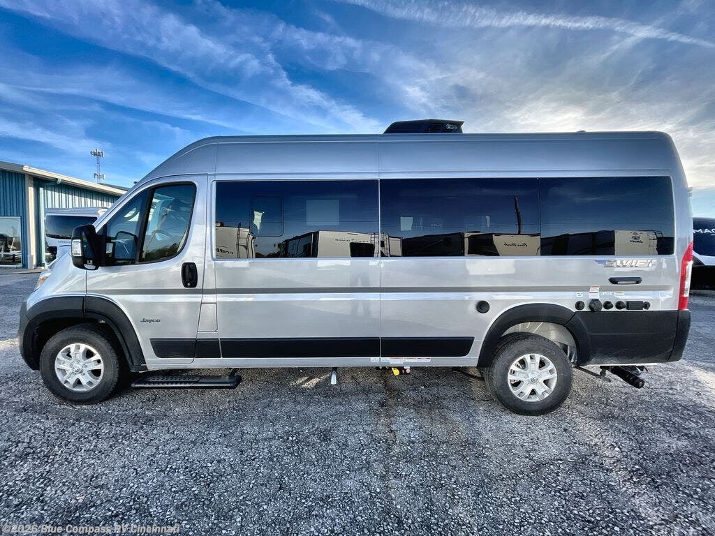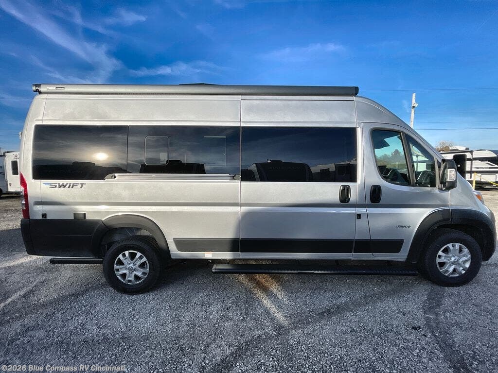 Head out on your greatest adventures with one of these Jayco Swift Class B gas motorhomes! Each model includes the JRide system with Hellwig helper springs and a premium heavy-duty suspension for smooth handling, and the Thule armless patio awning with LED lights will create an outdoor living space you are sure to love. Head inside to find pressed countertops, sliding vented windows, a soft-touch vinyl ceiling, plus many more comforts. The Uconnect 5 NAV infotainment center with Apple CarPlay® and Android Auto™ will also come in handy as you travel to your destination. An optional 200W roof-mounted solar panel can be added, along with the optional Li Package that features a lithium smart battery, Timberline hydronic heating system, a 3,000W inverter, and more power features!