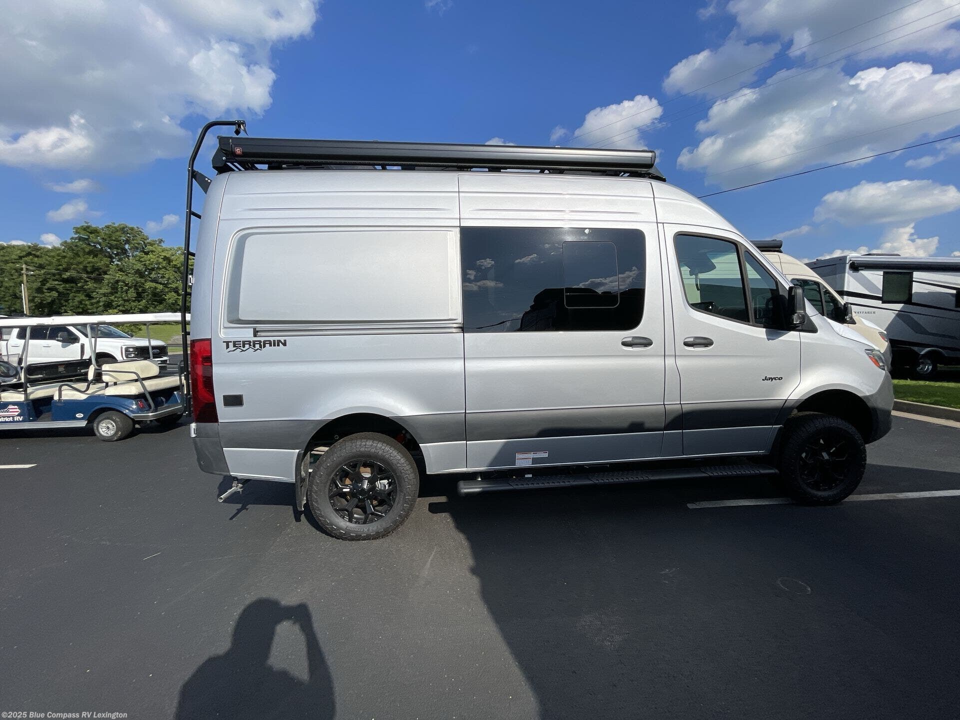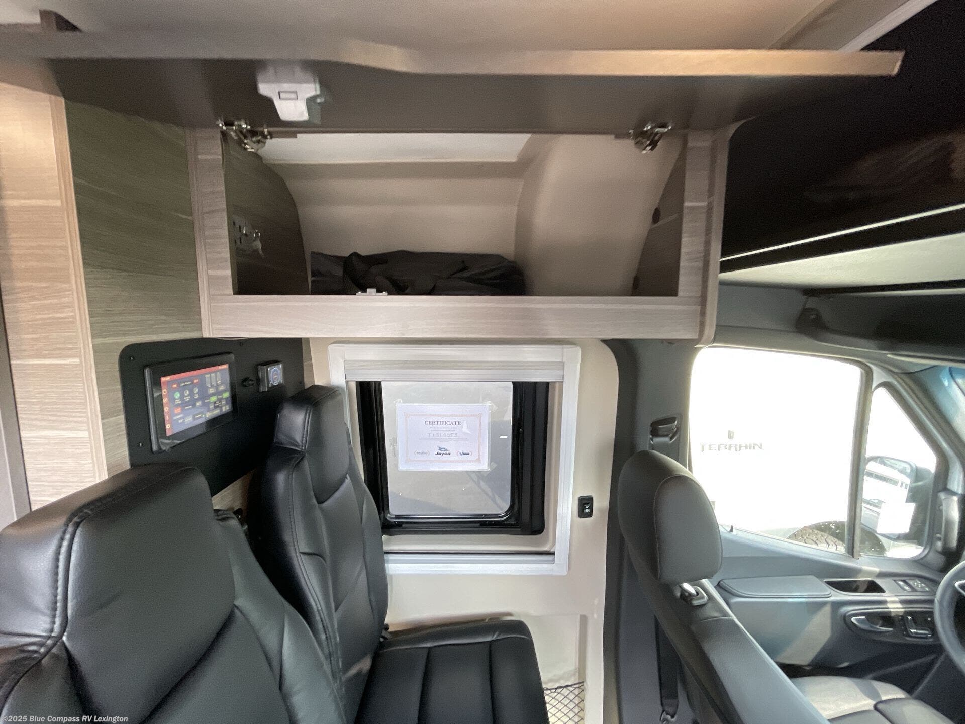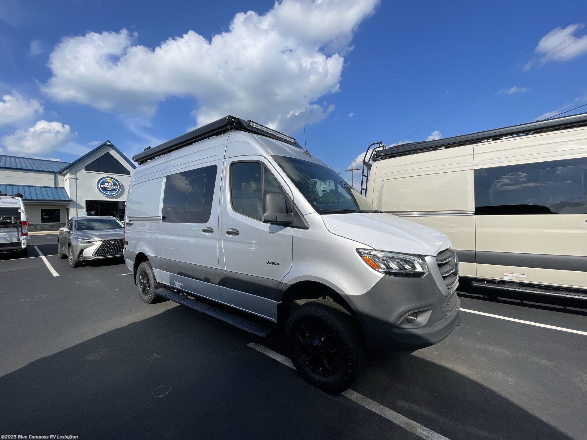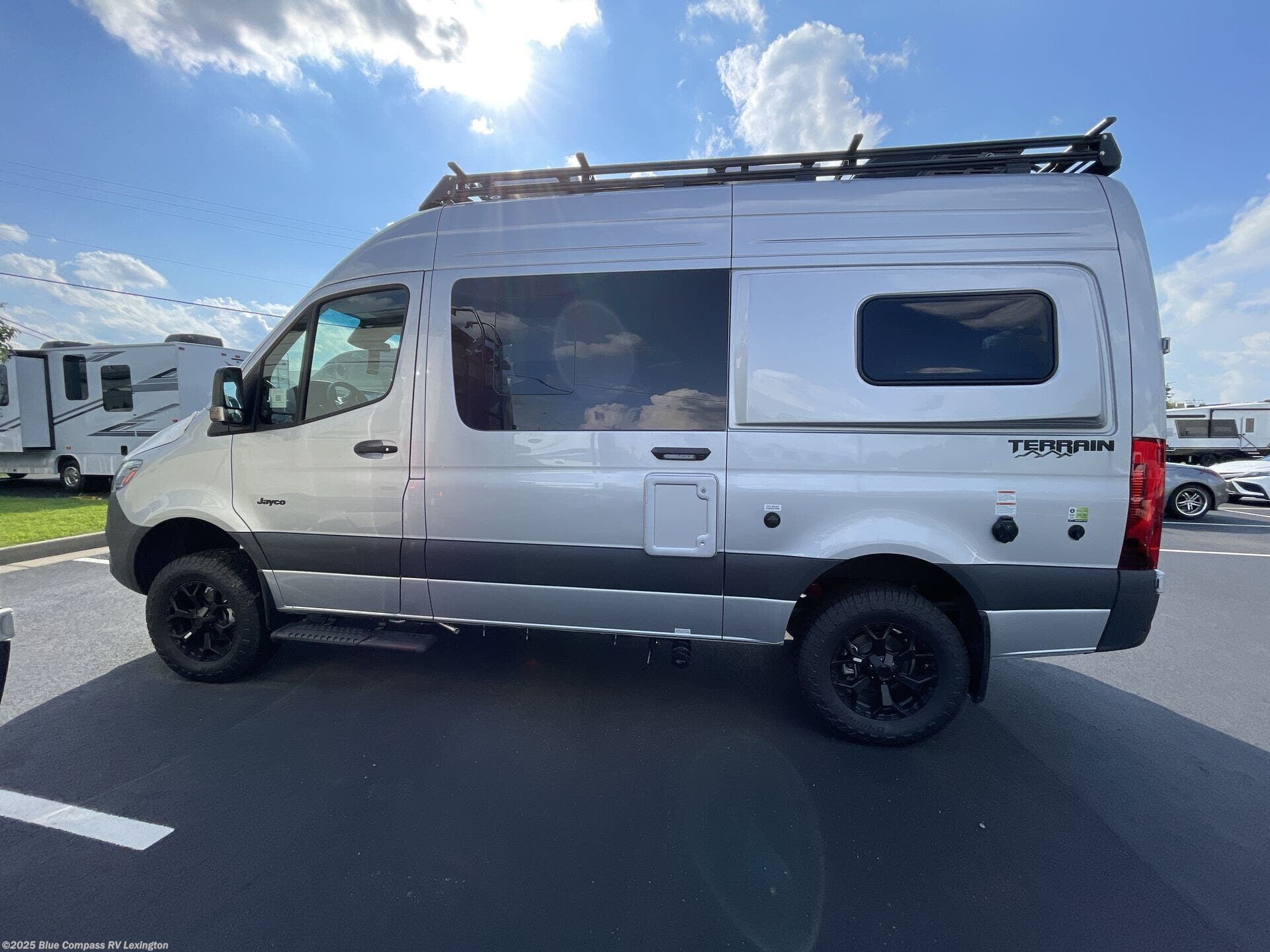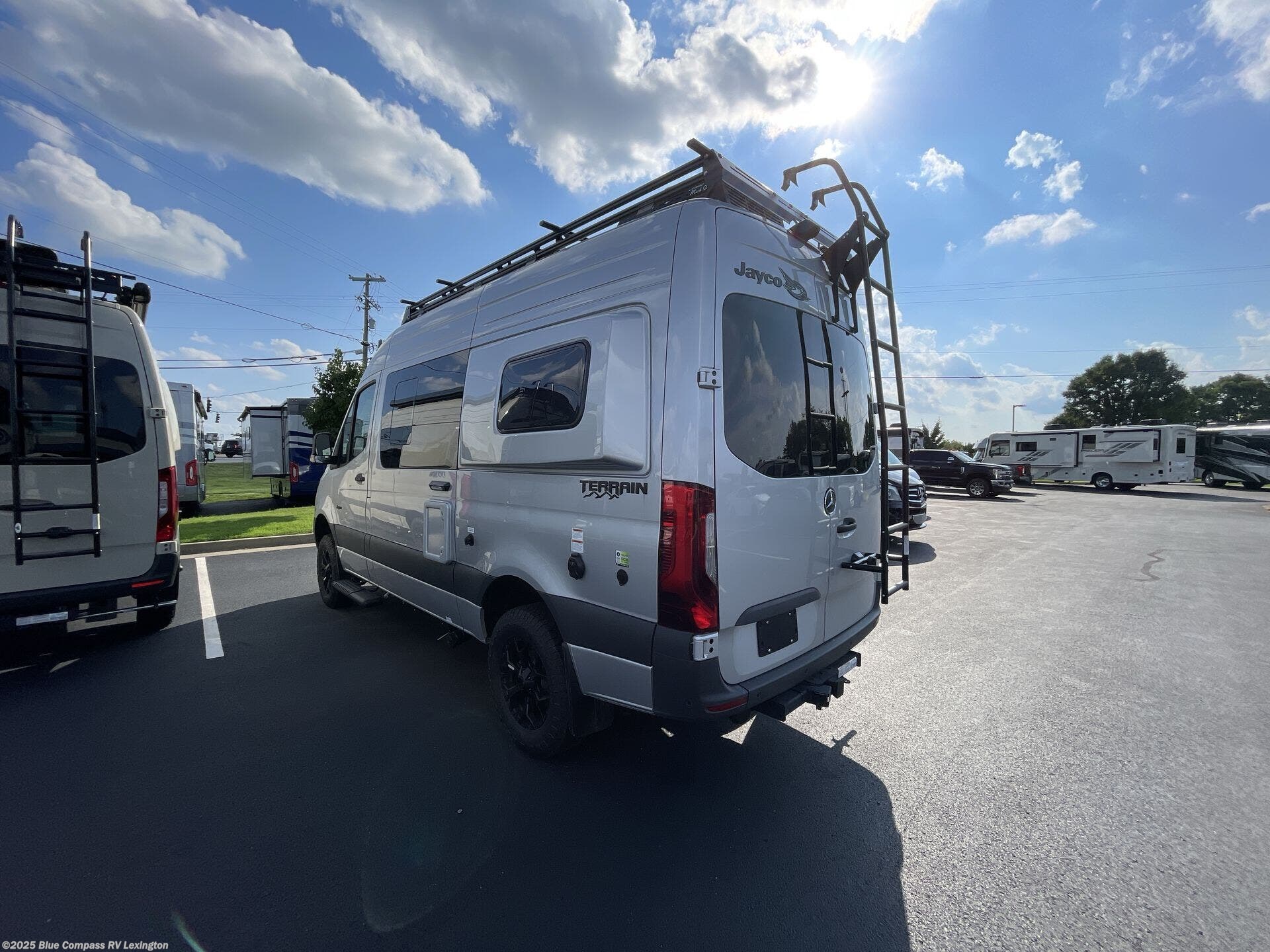 The Jayco Terrain Class B diesel motorhome is just waiting for you to hit the trails with it! The Mercedes-Benz Sprinter 2500 AWD chassis will provide an outstanding driving experience, plus there is a 9-speed transmission and a 2.0L 4-cyliner diesel engine with 211HP and 332 ft.-lb. of torque to power your adventures. You will appreciate the added safety features, such as active lane keeping assist, attention assist, and the parking package with a 360° camera that will help keep you stay safe on the road. The Tecnoform European-style cabinetry is ultra stylish and the durable rubber floor will withstand your spontaneous van life. And don't overlook the exterior with its Carefree armless awning with an LED light, a double roof rack and moveable roof ladder, a fold-down exterior table, and more!