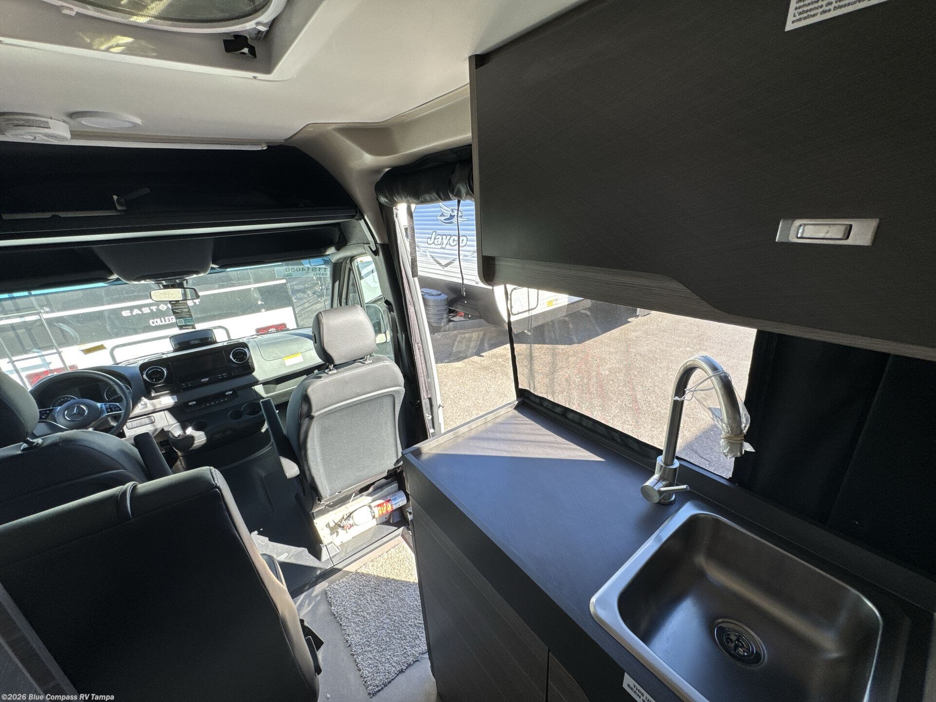 The Jayco Terrain Class B diesel motorhome is just waiting for you to hit the trails with it! The Mercedes-Benz Sprinter 2500 AWD chassis will provide an outstanding driving experience, plus there is a 9-speed transmission and a 2.0L 4-cyliner twin turbo diesel engine with 211HP and 332 ft.-lb. of torque to power your adventures. You will appreciate the added safety features, such as active lane keeping assist, attention assist, and the parking package with a 360° camera that will help keep you stay safe on the road. The Tecnoform European-style cabinetry is ultra stylish and the durable rubber floor will withstand your spontaneous van life. And don't overlook the exterior with its Carefree armless awning with an LED light, a double roof rack and moveable roof ladder, a fold-down exterior table, and more!