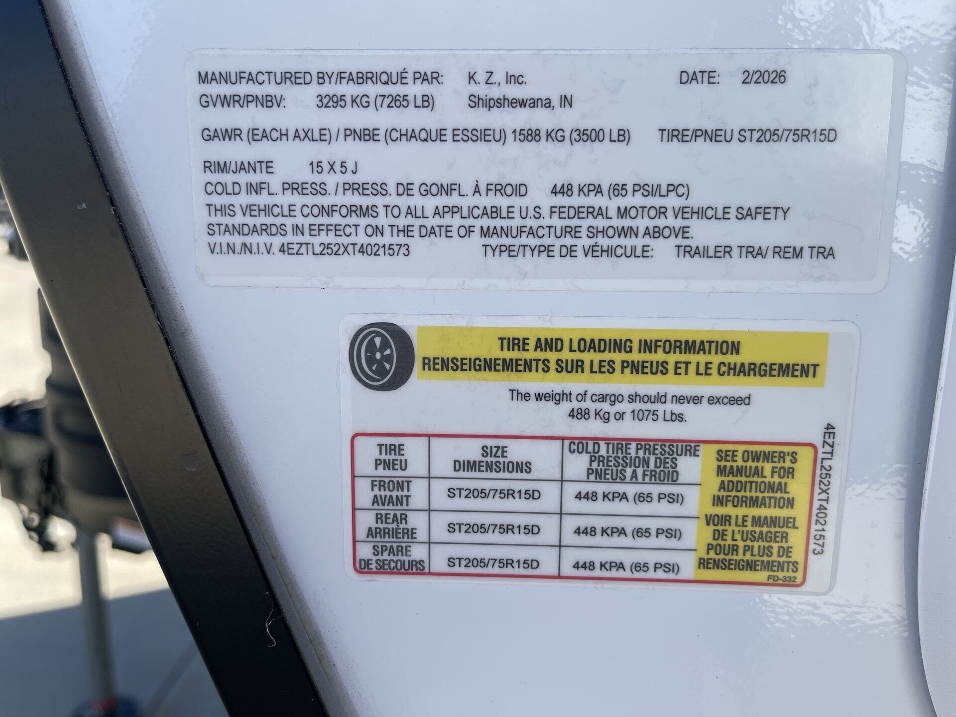 - GVWR: 7,300 lbs • Dry Weight: 5,300 lbs