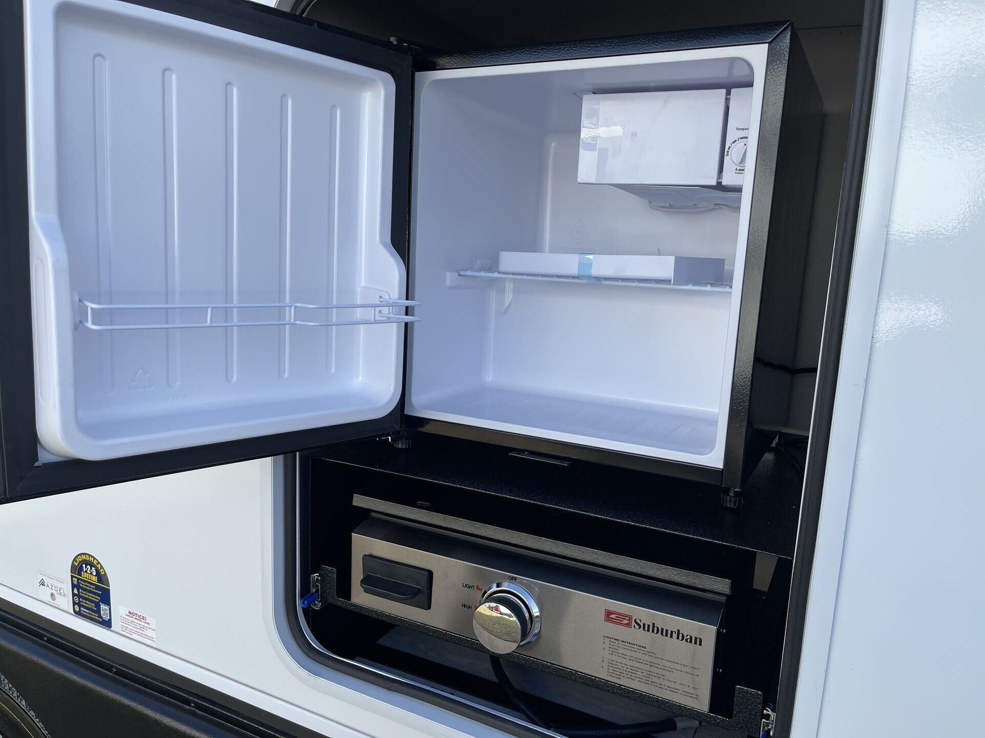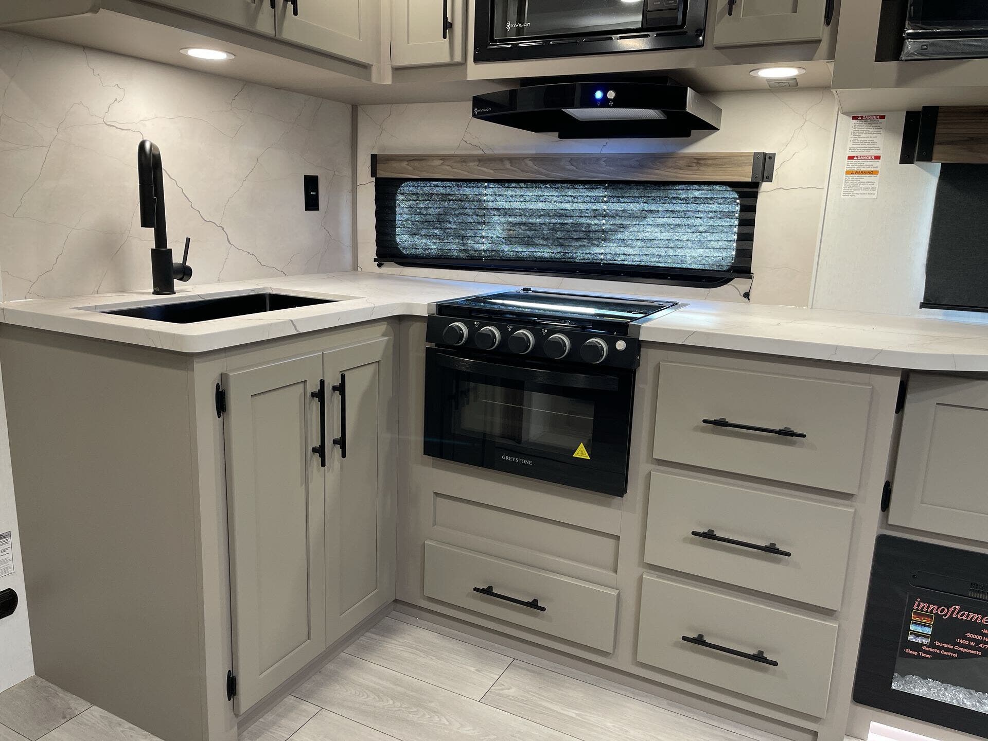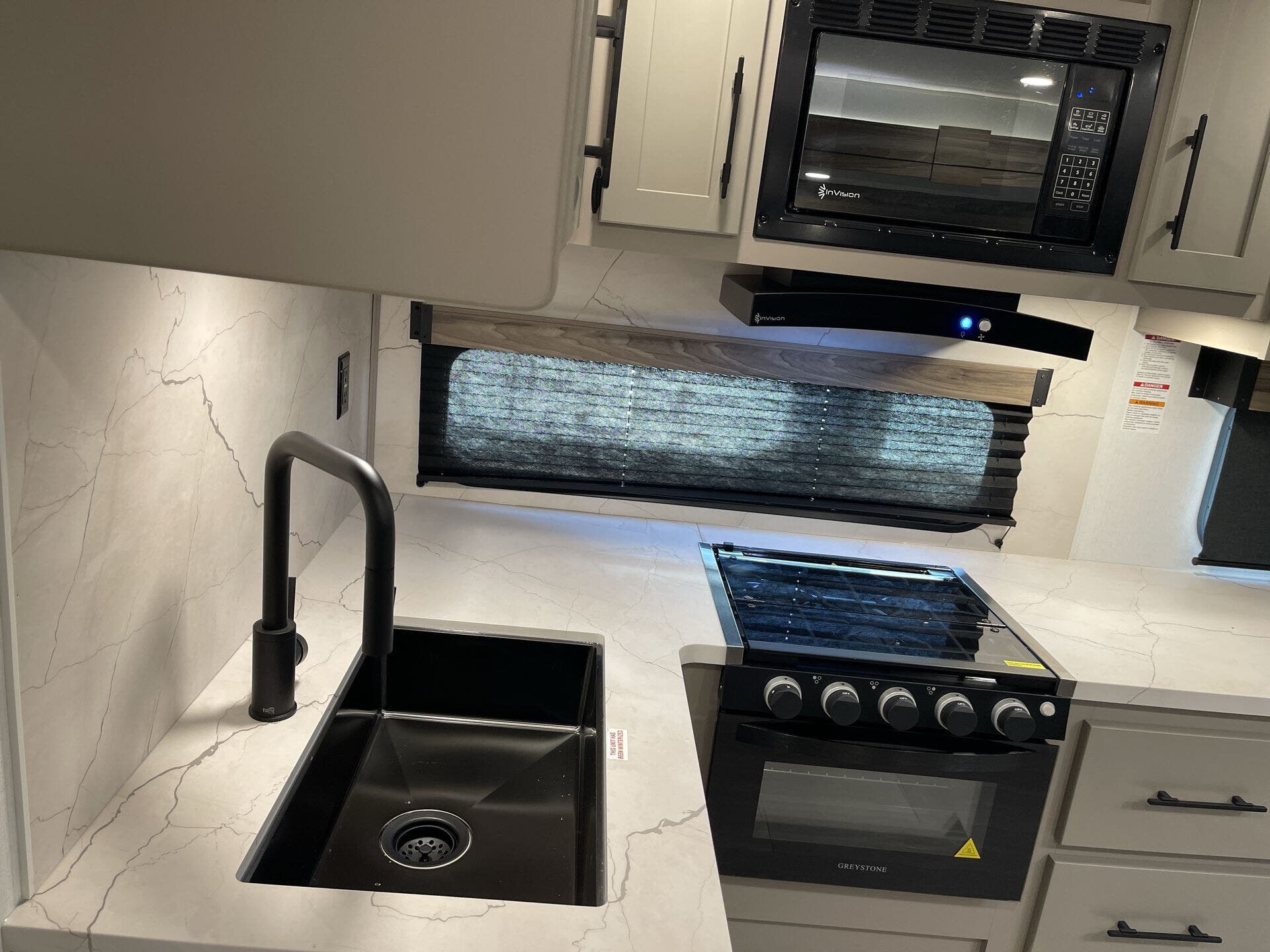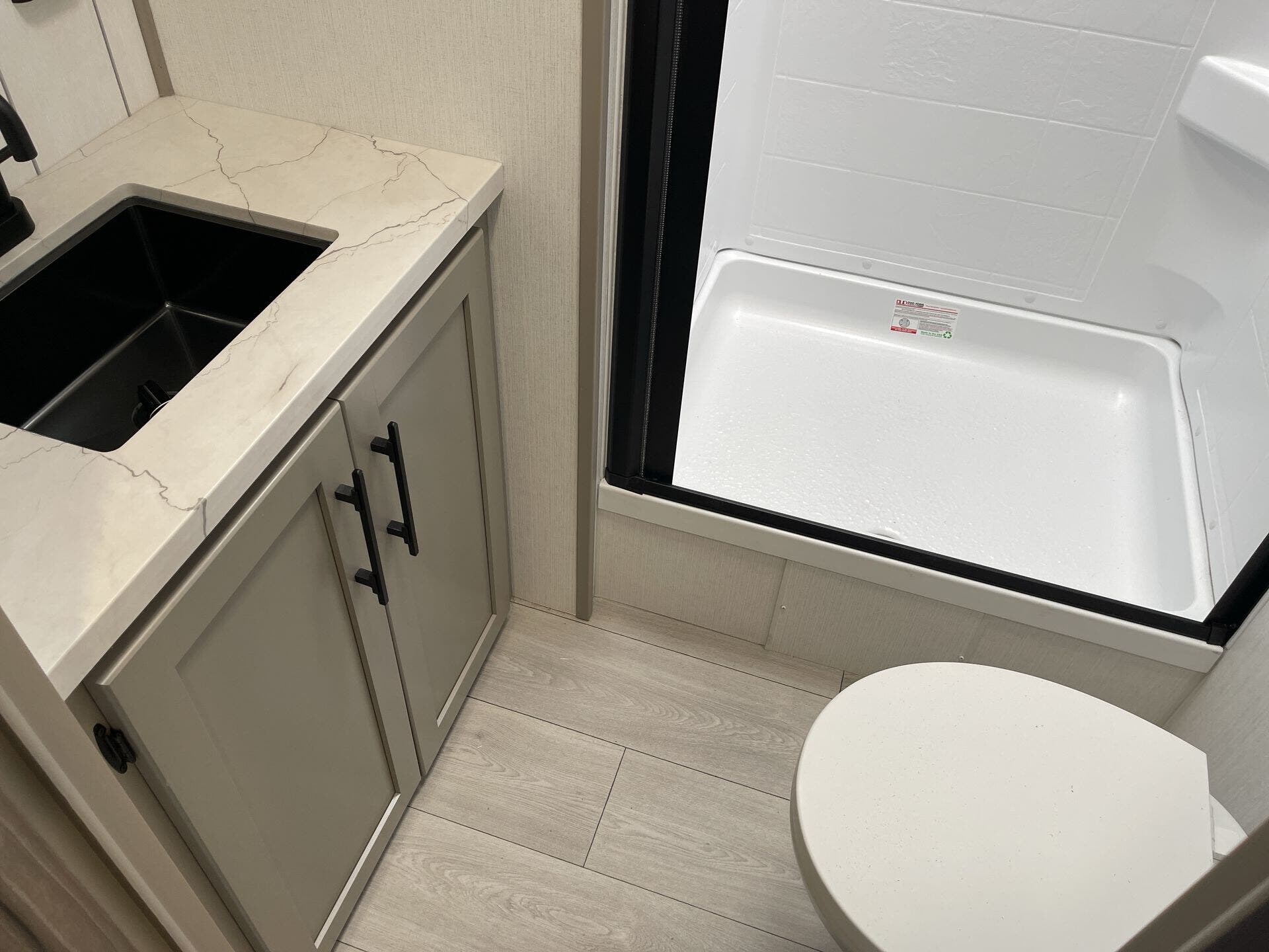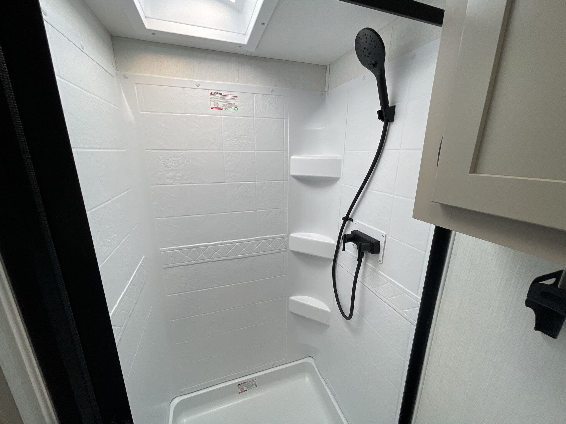 - Water system: Fresh 45 gallons; Grey 32 gallons; Black 32 gallons