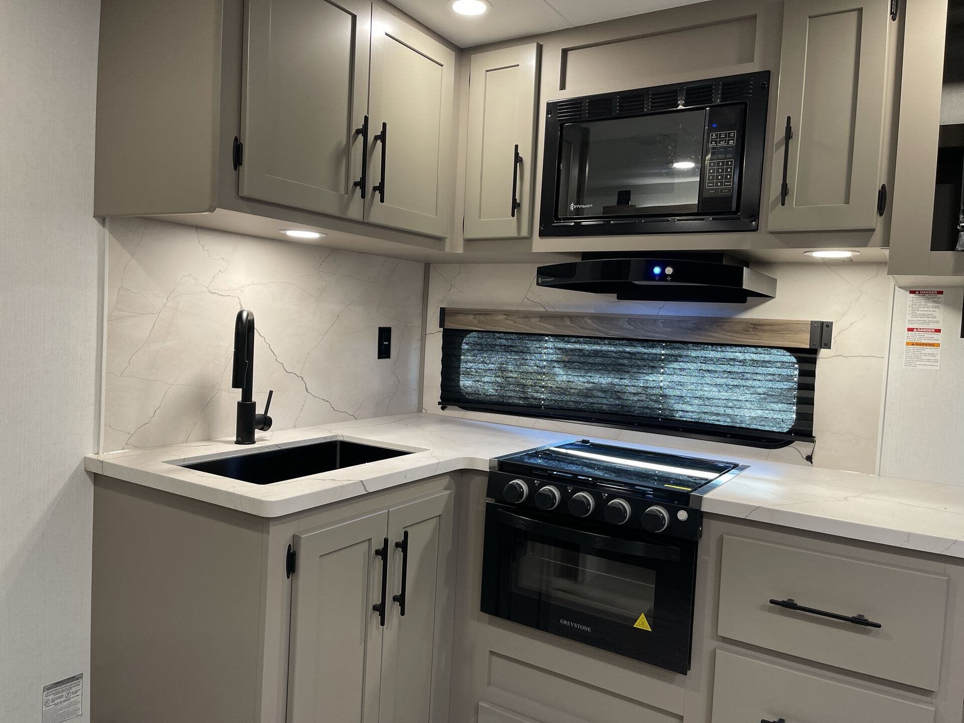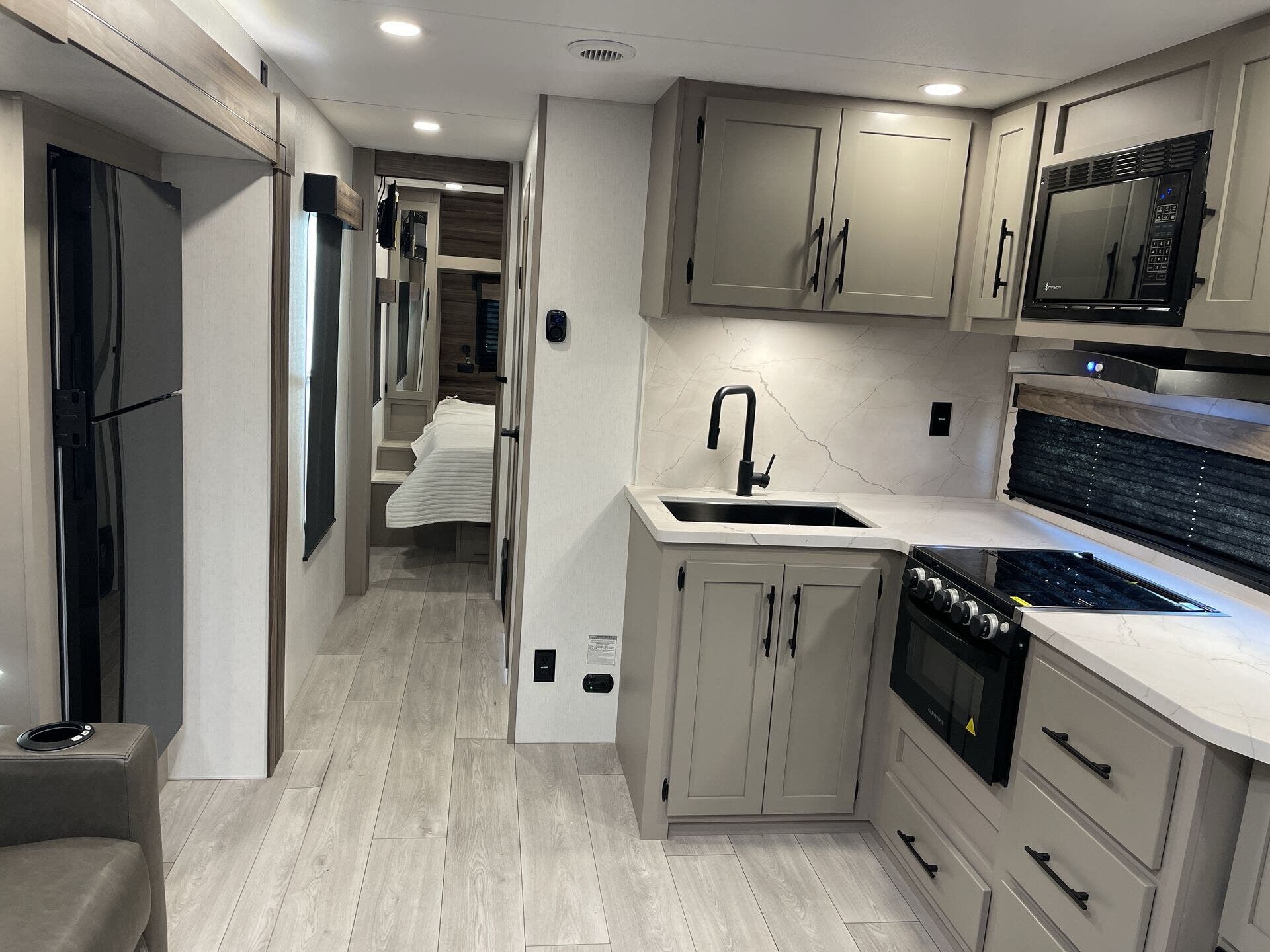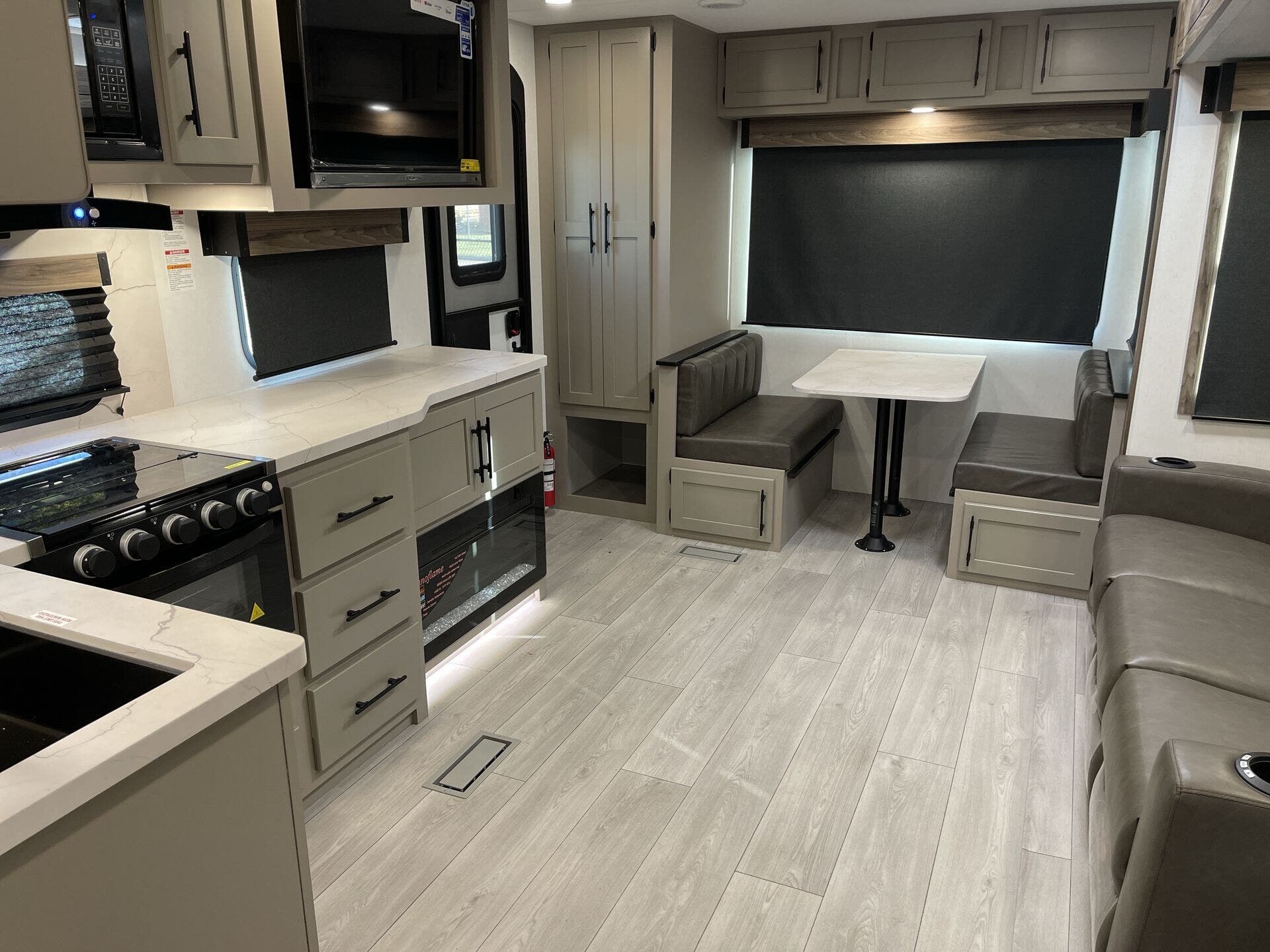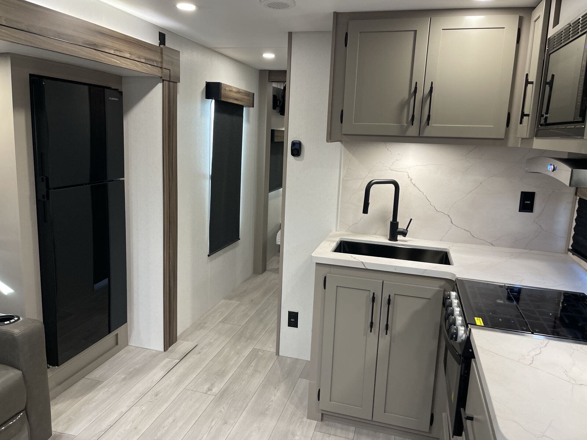 The 271RL floor plan emphasizes comfort and sociability. A private Front Bedroom provides a quiet retreat after a day on the road, while the Mid Bath keeps morning routines convenient. The Rear Living Area with Rear Entertainment creates a welcoming hub for family movie nights or watching your favorite shows, right next to the well-equipped kitchen. A single Slide-Out enhances the living area, giving you more space without adding unnecessary length.