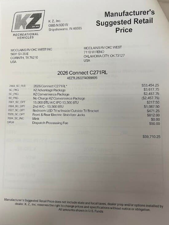 Request More Info on this 2026 K-Z Connect 271RL Offered for sale by McClain's RV Oklahoma City