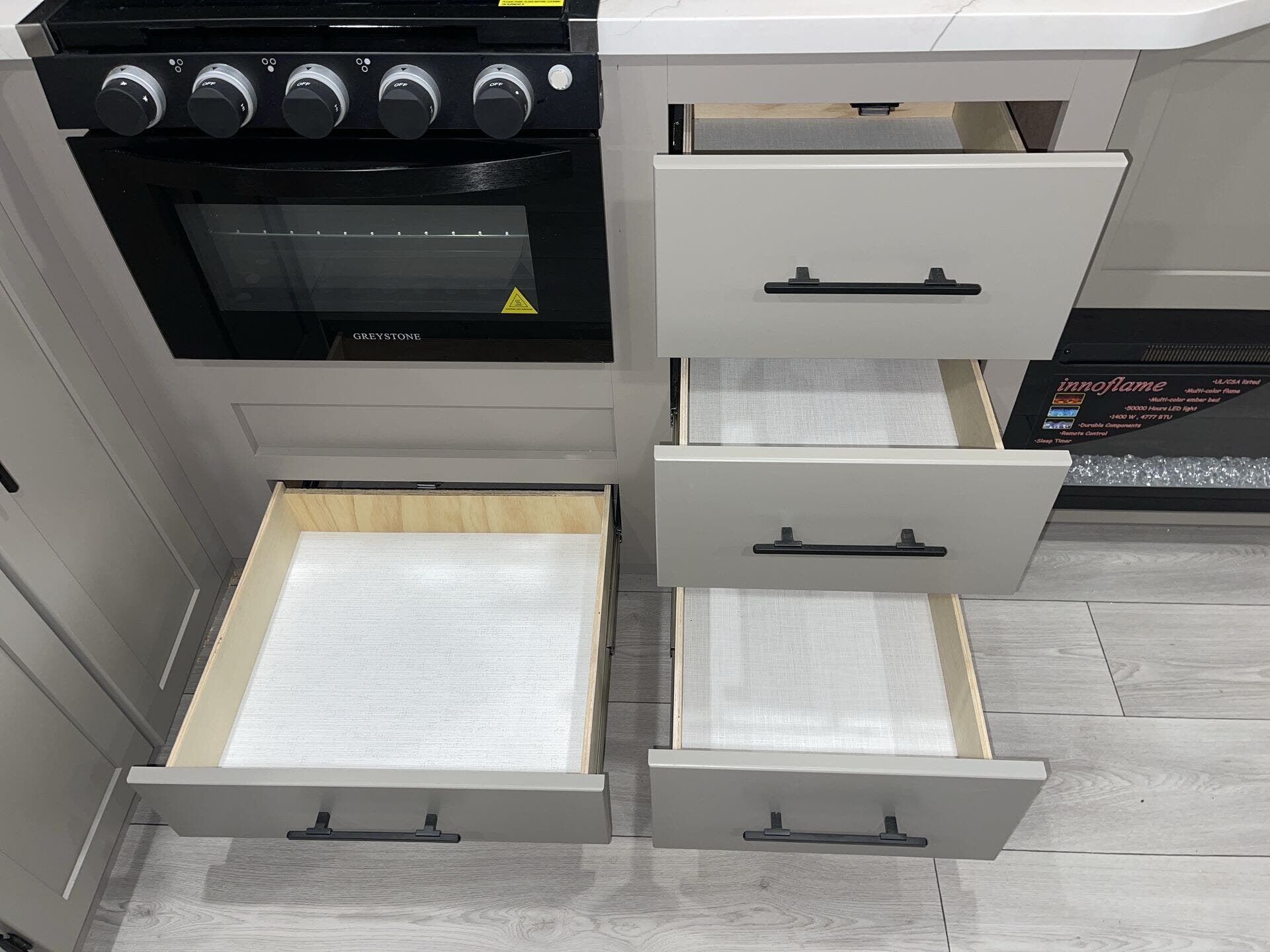 - Kitchen appliances: Microwave, Oven, Stove, Refrigerator