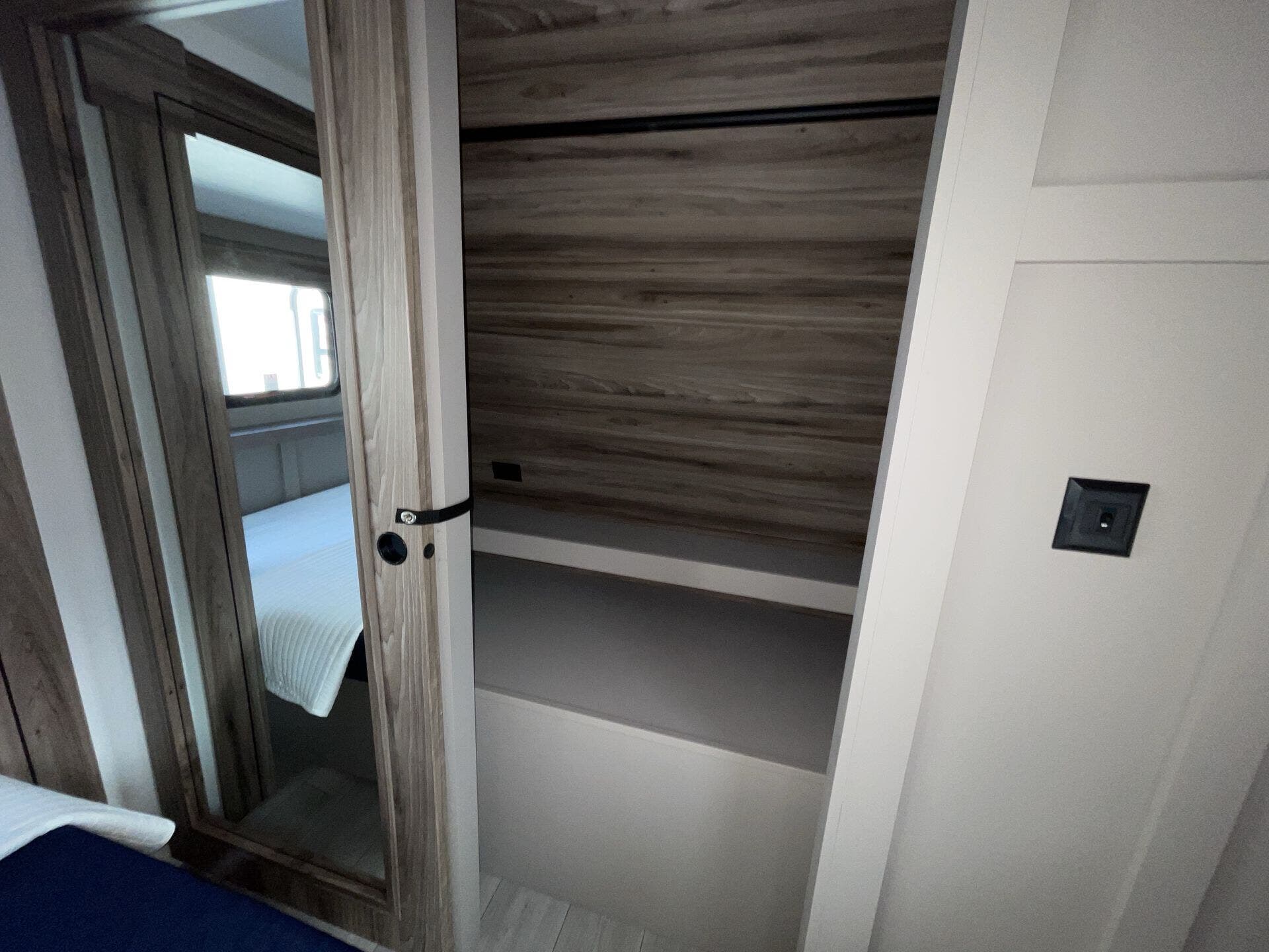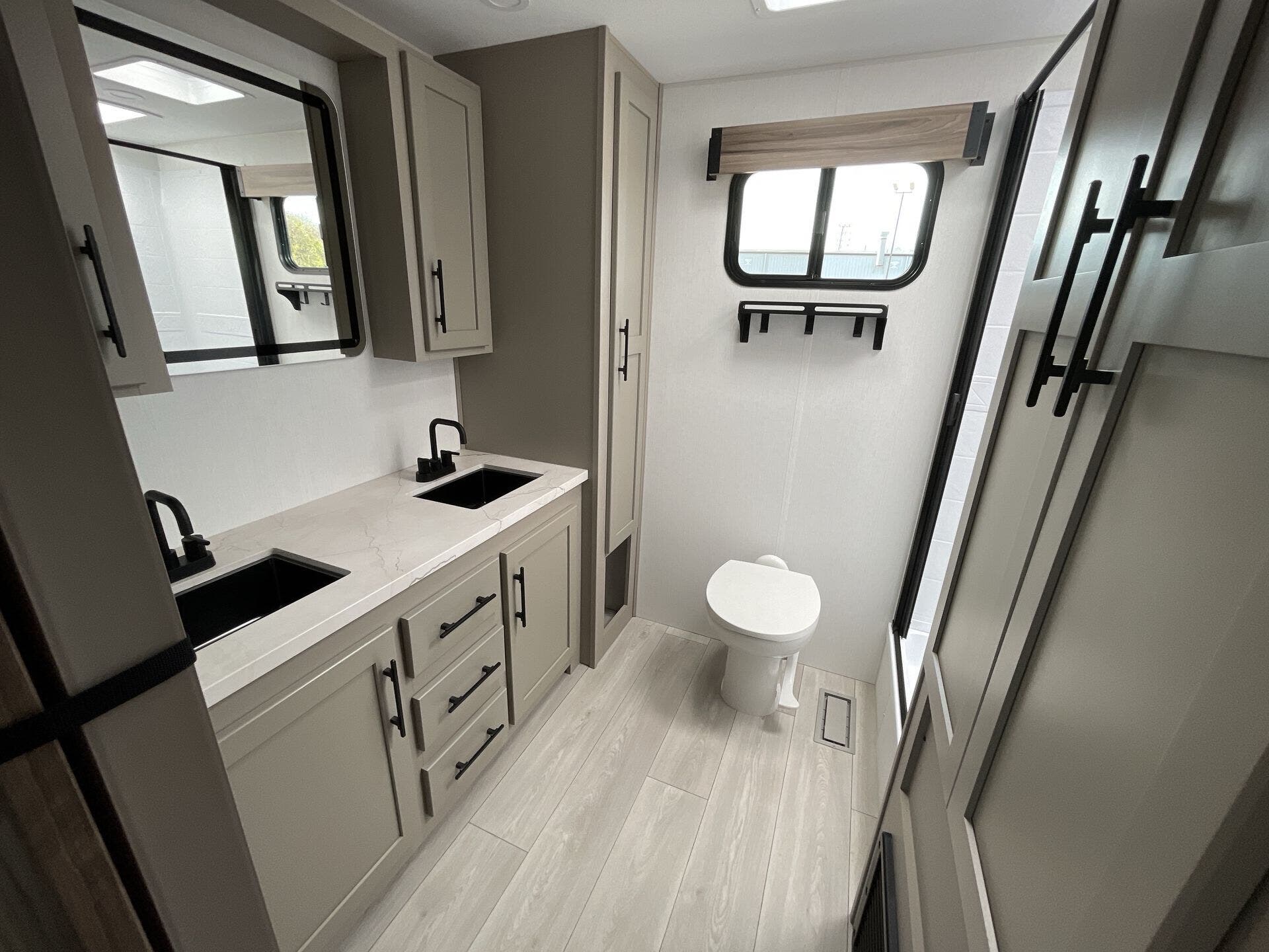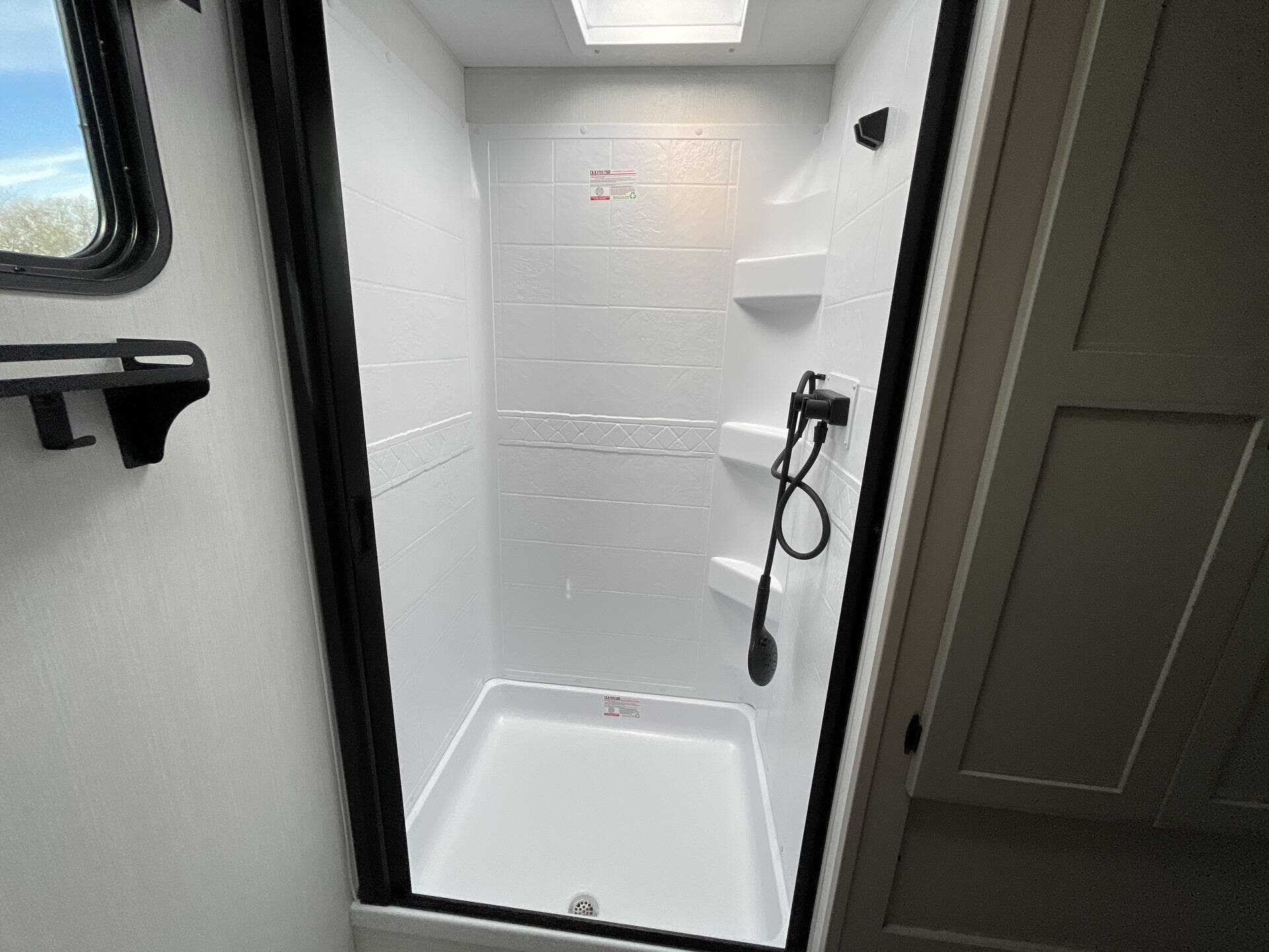 At the front of the trailer, the private bedroom provides a restful haven with its walk-around queen bed, wardrobes, and overhead storage. The spacious rear bathroom boasts a large radius shower, linen closet, and plenty of room to move—making it one of the most comfortable bathrooms in its class. With upgraded insulation, climate control features, and thoughtful storage throughout, the 2026 K-Z Connect 293RB is perfect for travelers seeking a well-crafted, stylish RV that enhances every adventure.