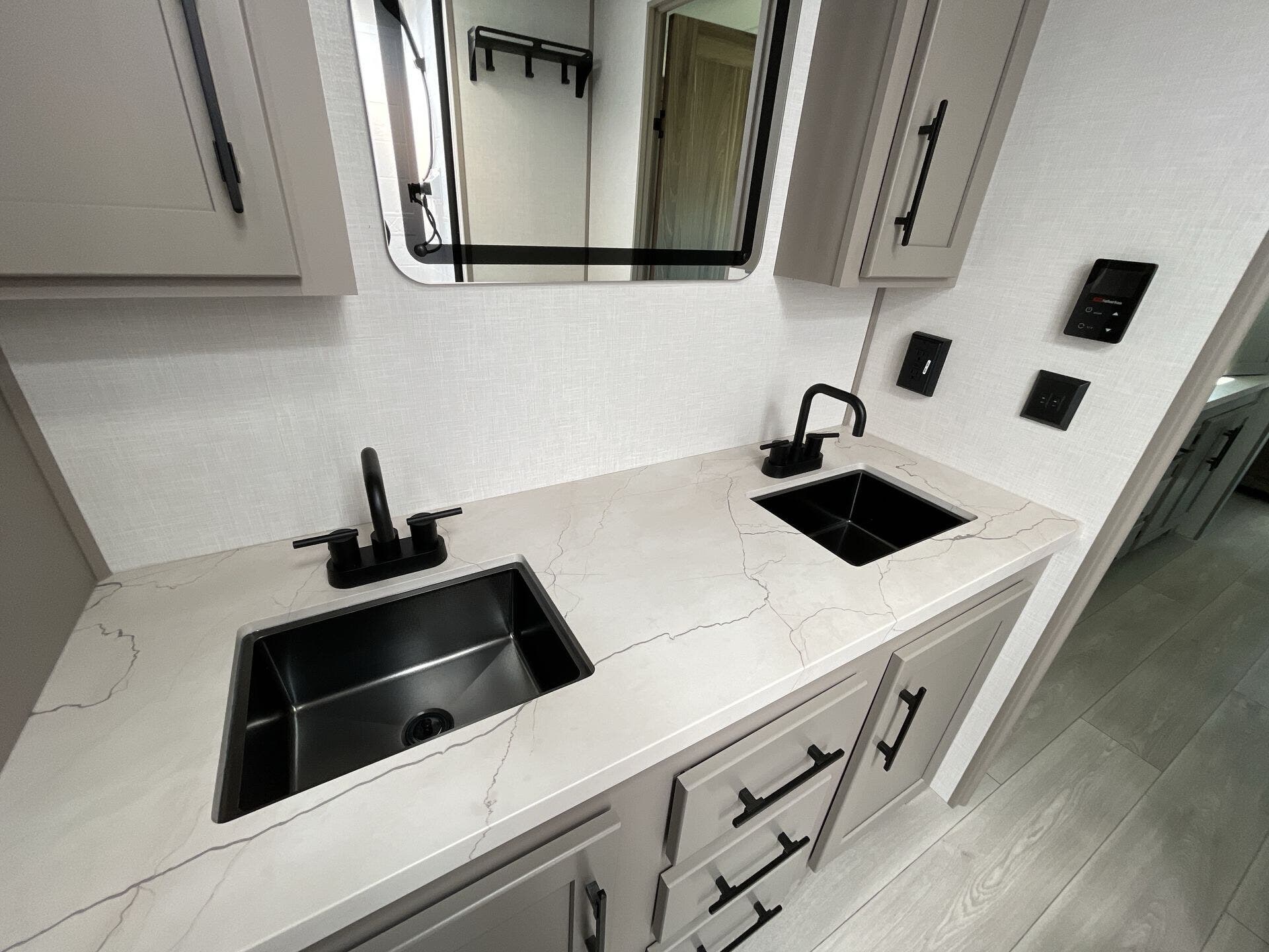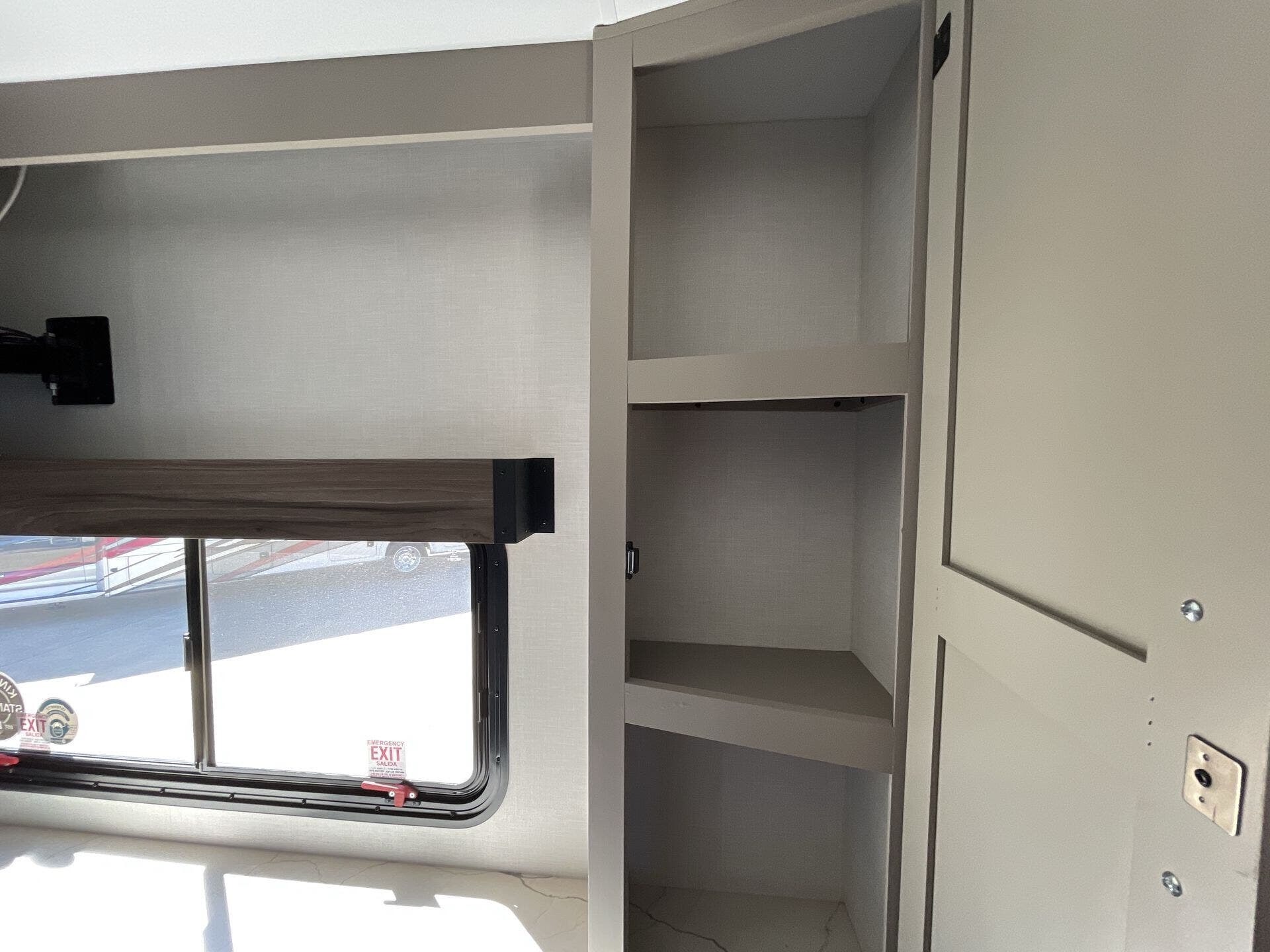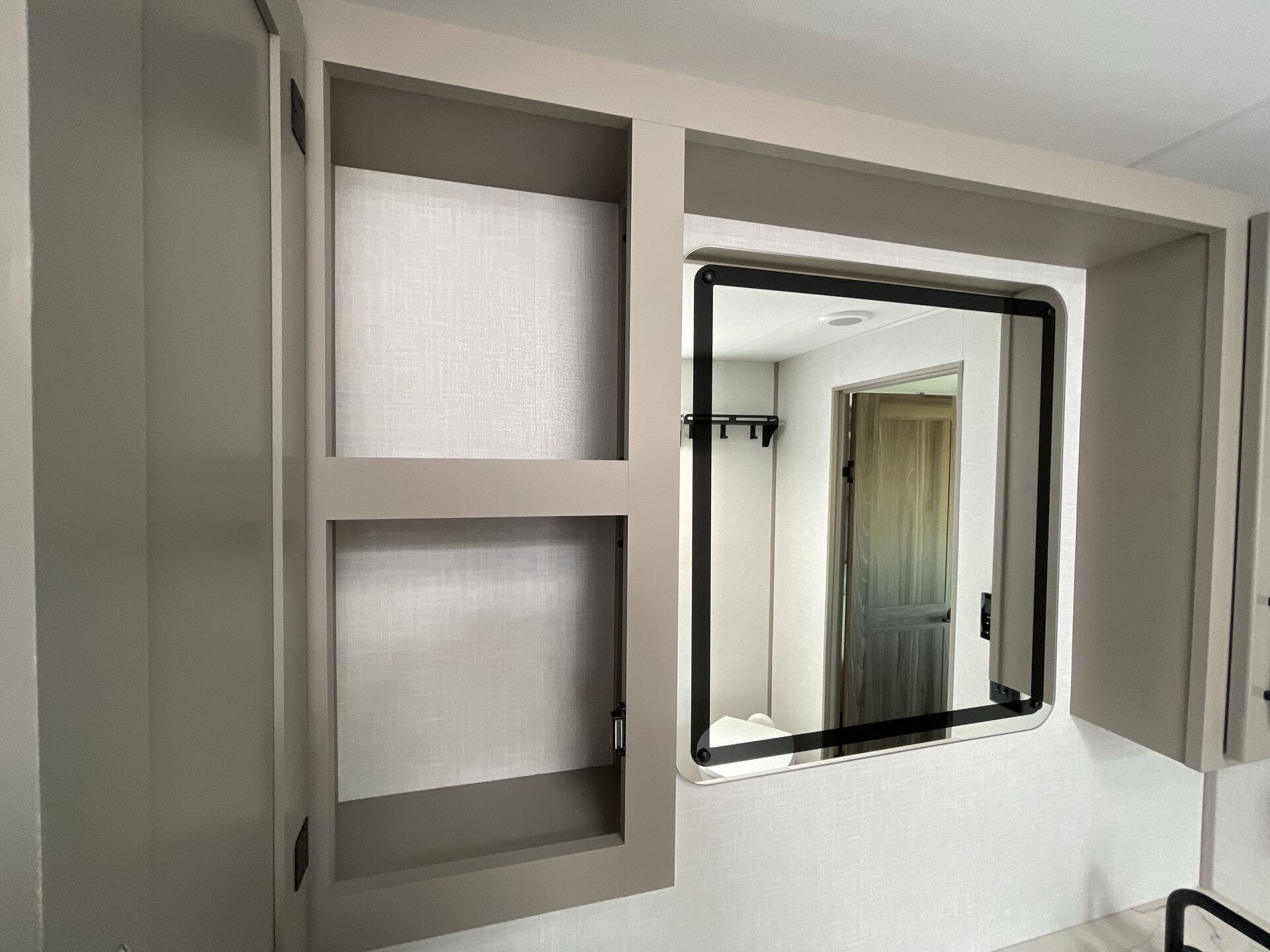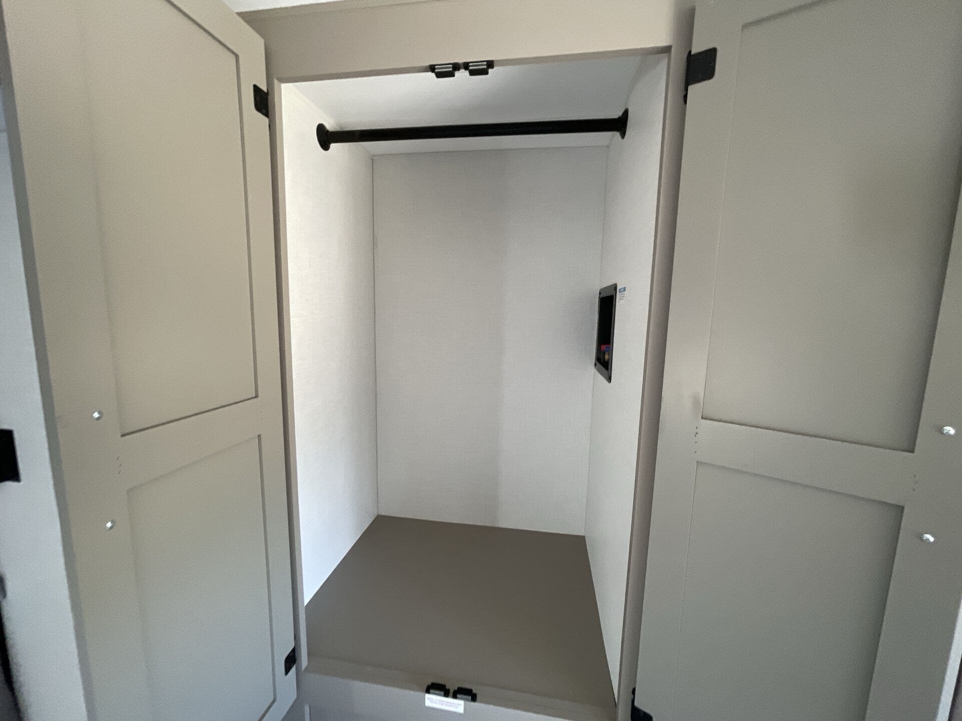 The private rear bedroom offers a cozy retreat with a comfortable bed, wardrobe storage, and convenient access to the spacious bathroom, which includes a residential-style shower and modern finishes. Designed for extended comfort, the Connect 302FBK also includes efficient climate control, user-friendly systems, and optional solar prep for off-grid adventures. Whether traveling cross-country, exploring scenic campgrounds, or enjoying a quiet getaway, the 2026 K-Z Connect 302FBK delivers a perfect blend of luxury, practicality, and convenience for every journey.