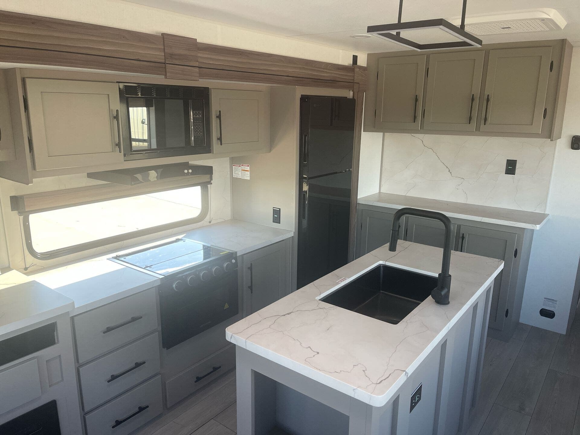 - Black tank flush, stabilizer jacks, and a wide 8'0" exterior width for stable towing