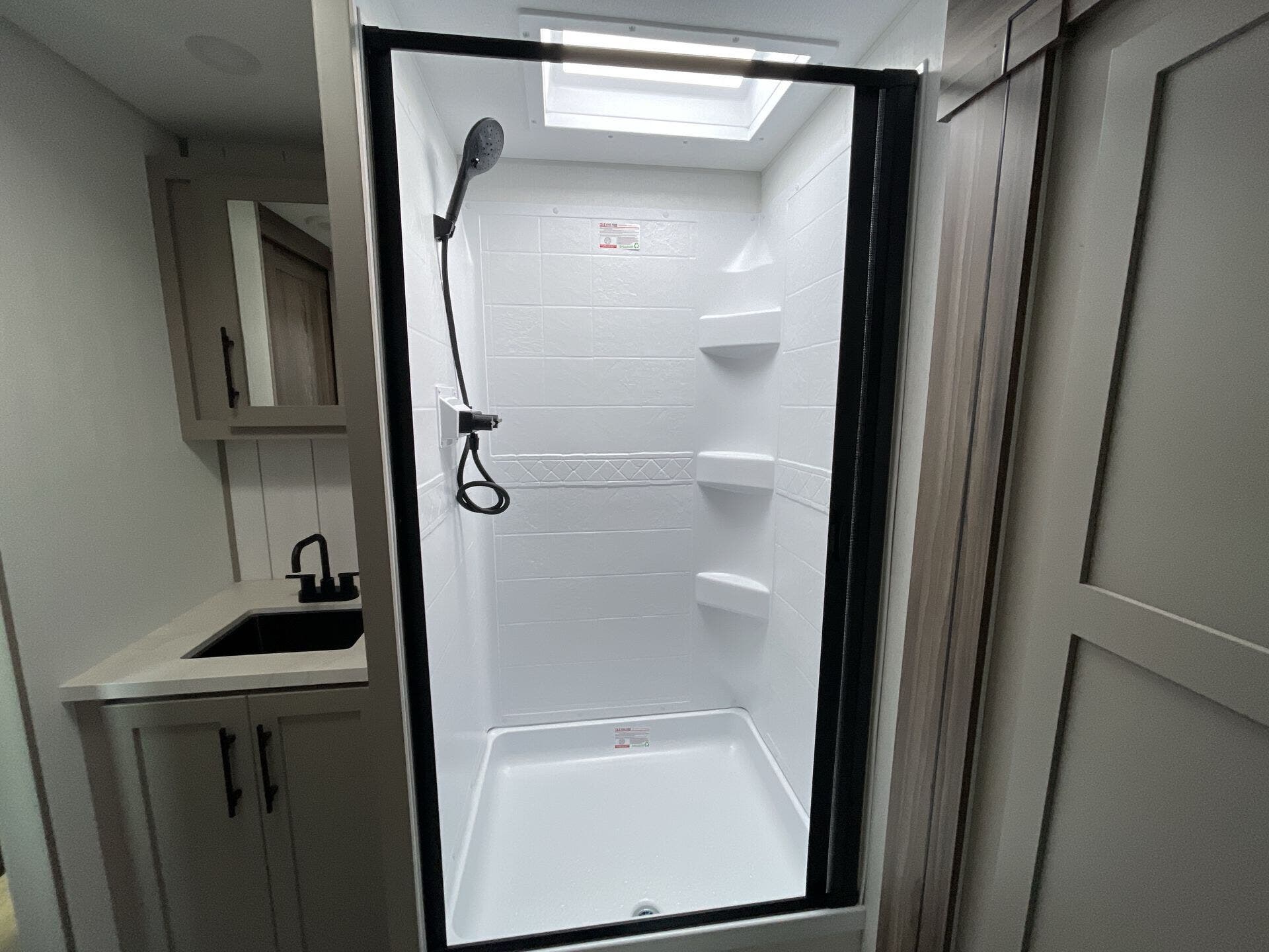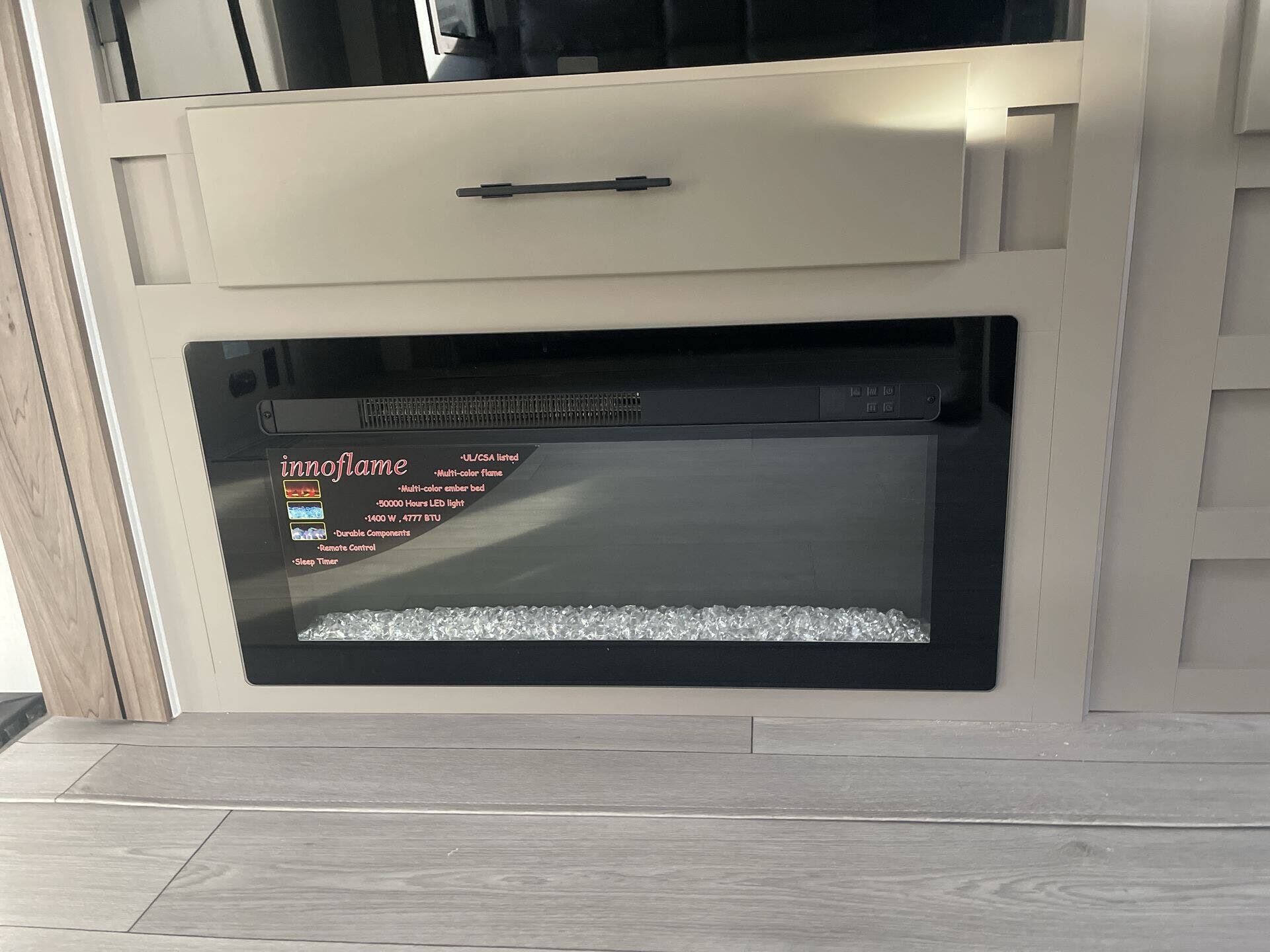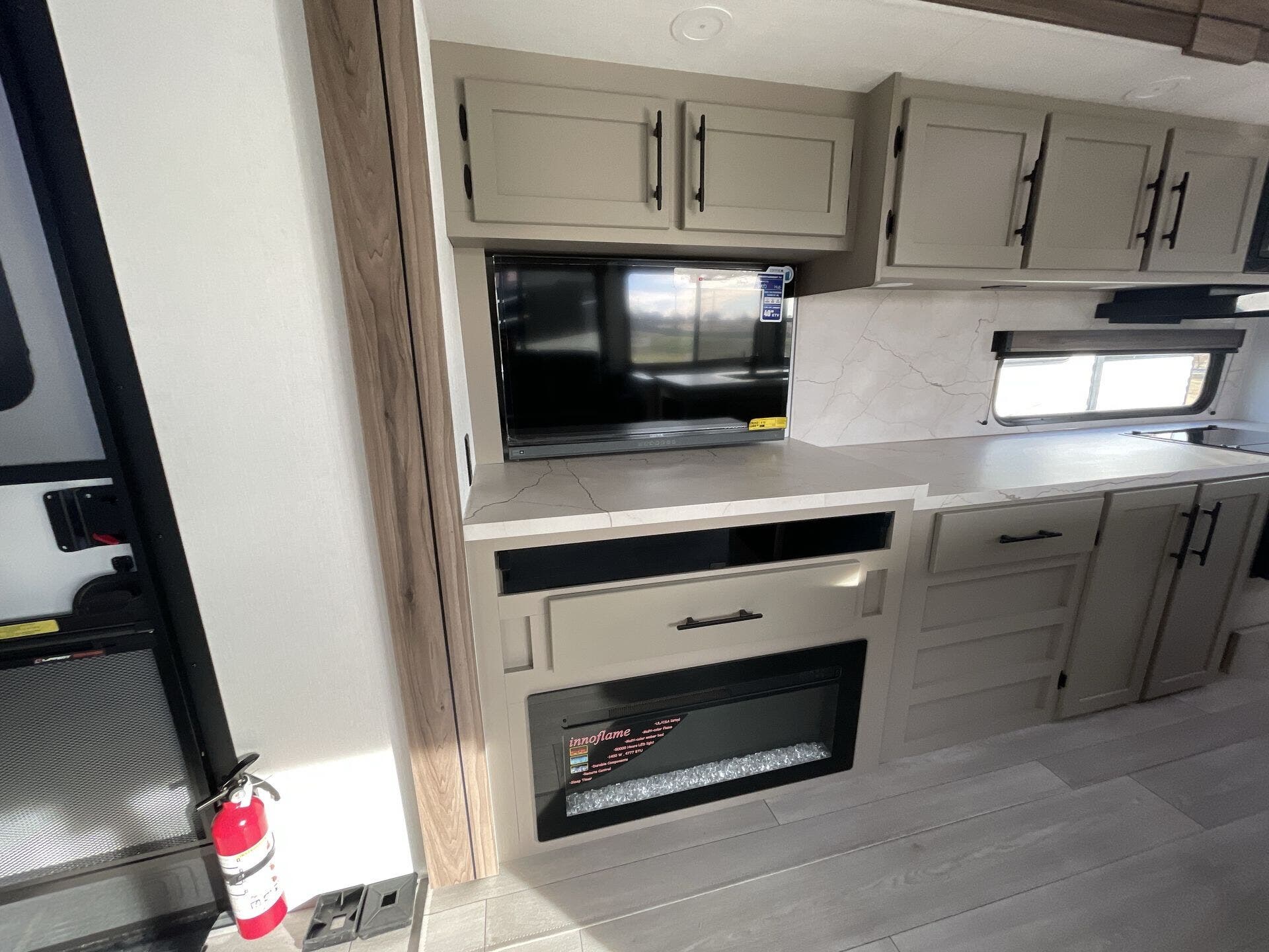 This travel trailer delivers a welcoming layout designed for family time and entertaining. Inside, you’ll find a well-equipped galley featuring a microwave, oven, and refrigerator, plus a kitchen sink and a dedicated dinette for meals and gatherings. A stylish fireplace adds ambiance on cool evenings, while LED lighting keeps spaces bright and energy-efficient. The living area is crafted for relaxation, with a TV and TV antenna for easy entertainment, and the Mink interior provides a warm, contemporary feel that complements the bright exterior.