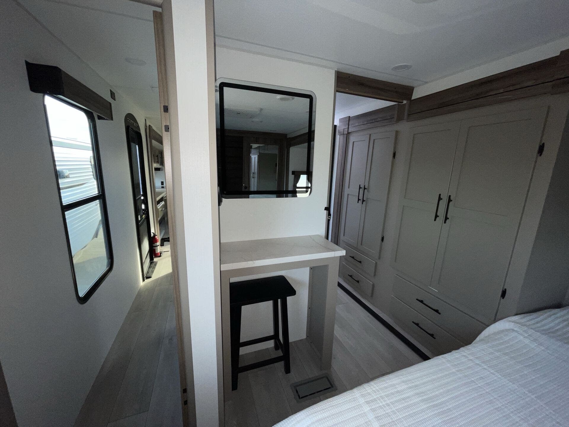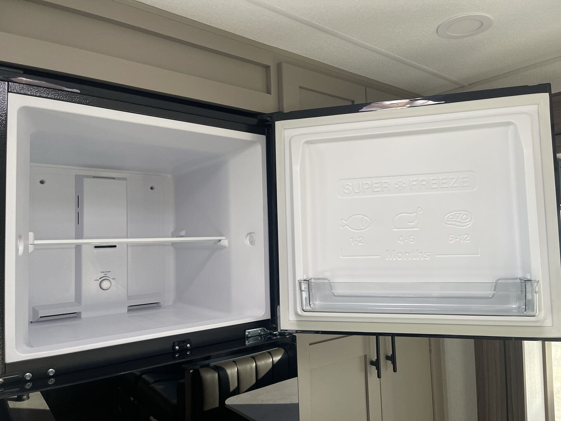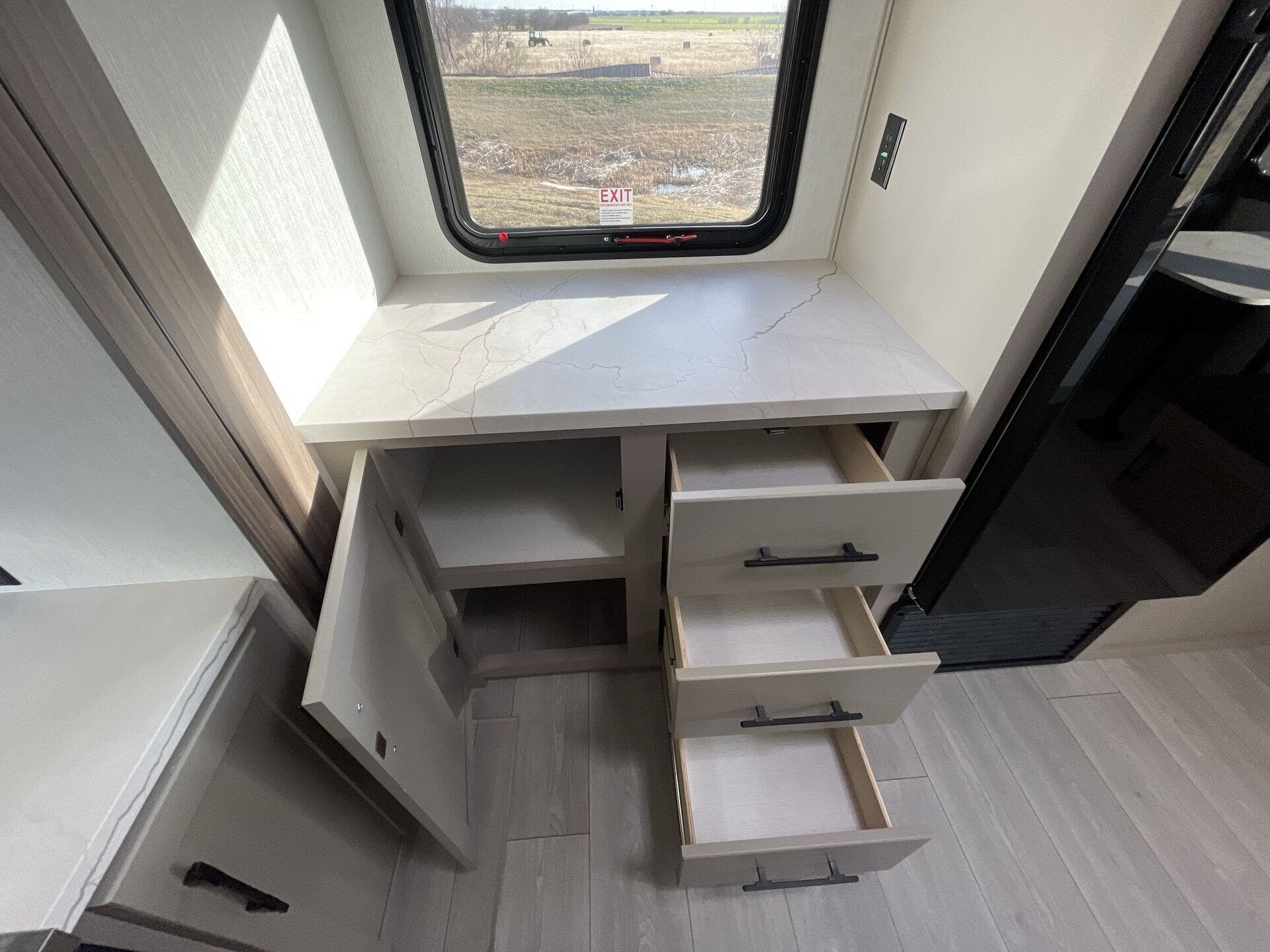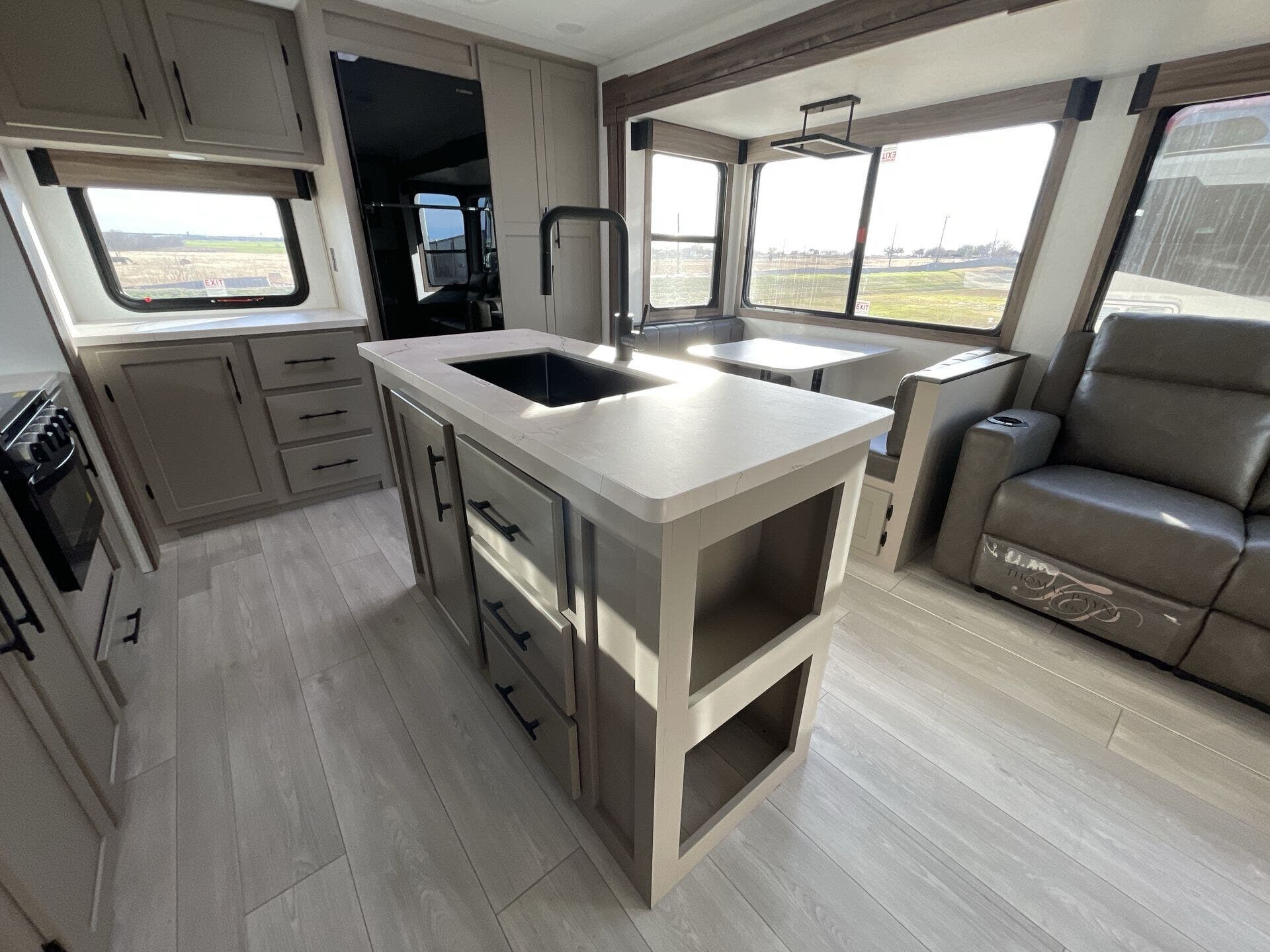 This travel trailer delivers a welcoming layout designed for family time and entertaining. Inside, you’ll find a well-equipped galley featuring a microwave, oven, and refrigerator, plus a kitchen sink and a dedicated dinette for meals and gatherings. A stylish fireplace adds ambiance on cool evenings, while LED lighting keeps spaces bright and energy-efficient. The living area is crafted for relaxation, with a TV and TV antenna for easy entertainment, and the Mink interior provides a warm, contemporary feel that complements the bright exterior.