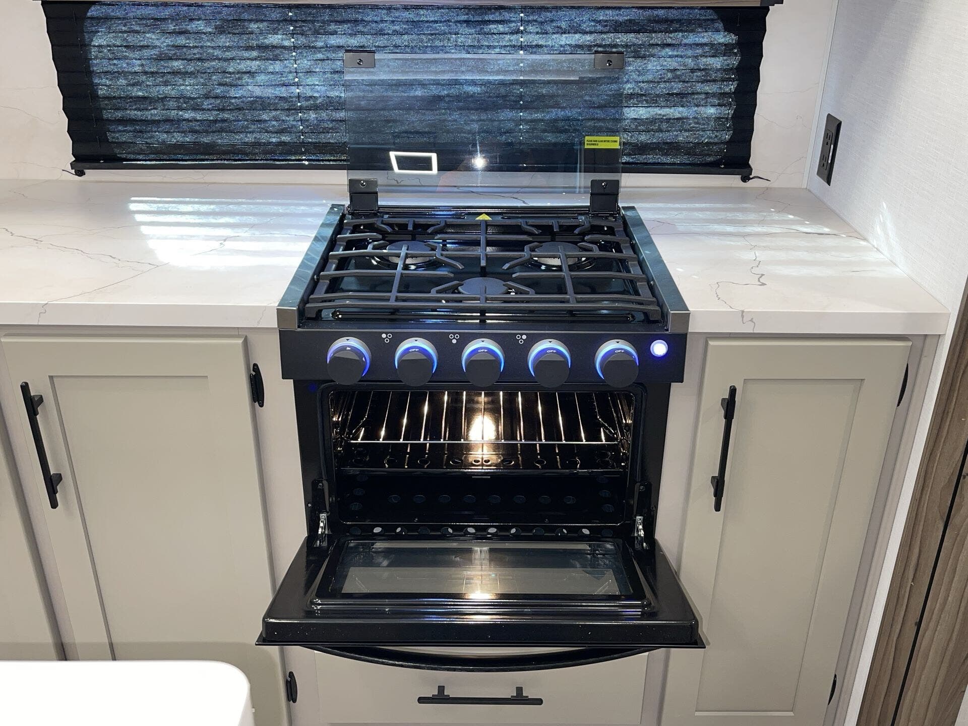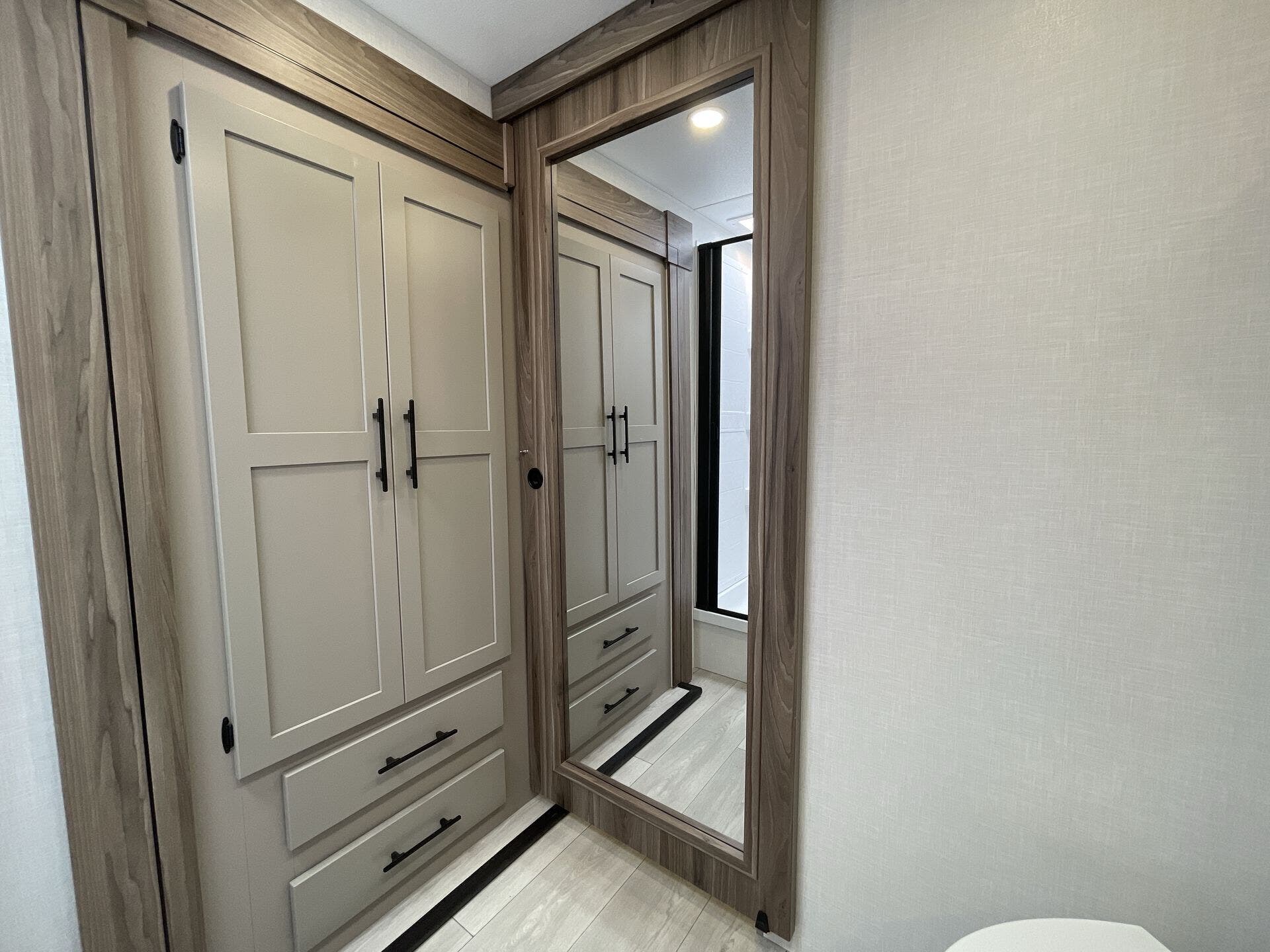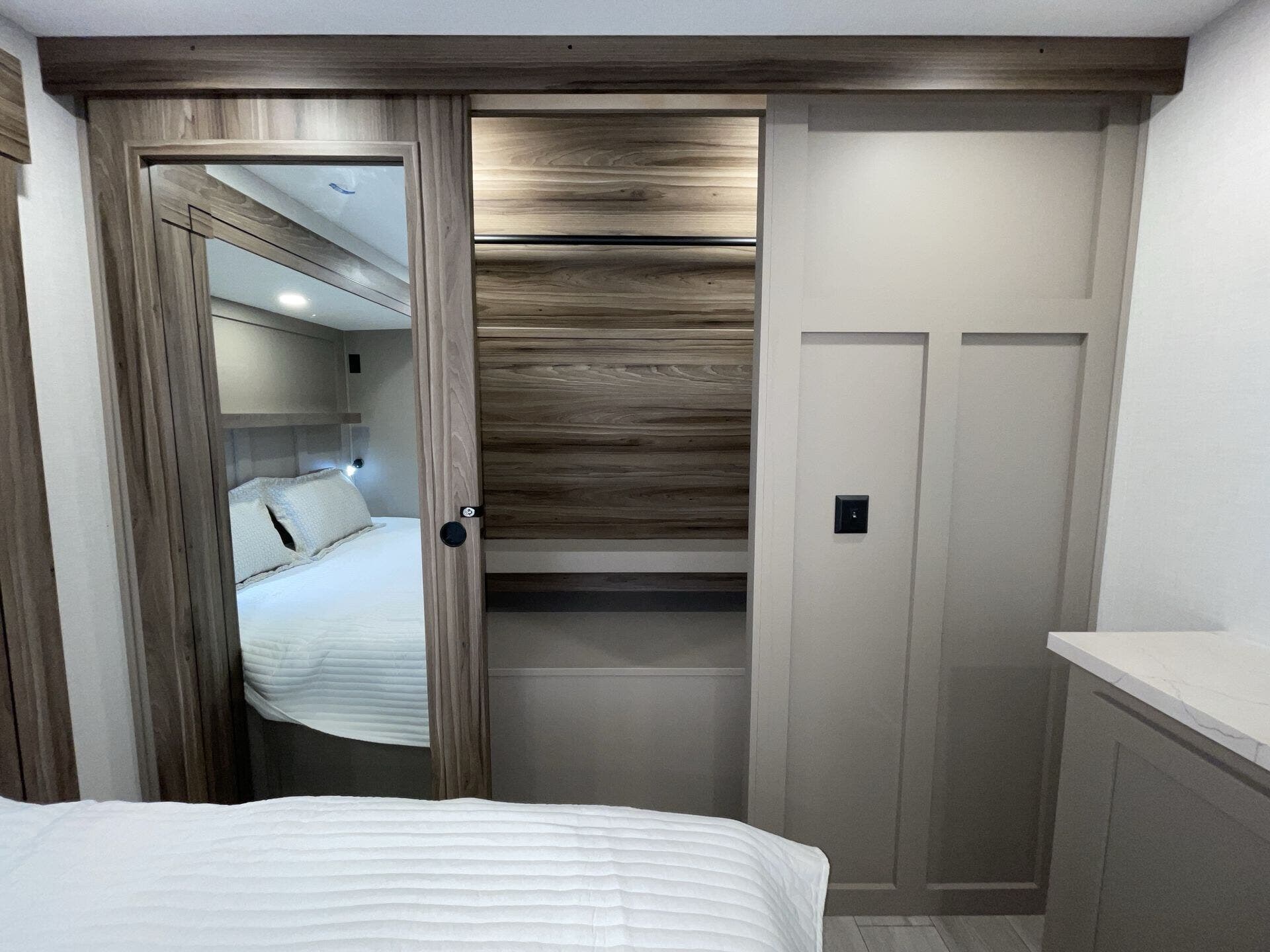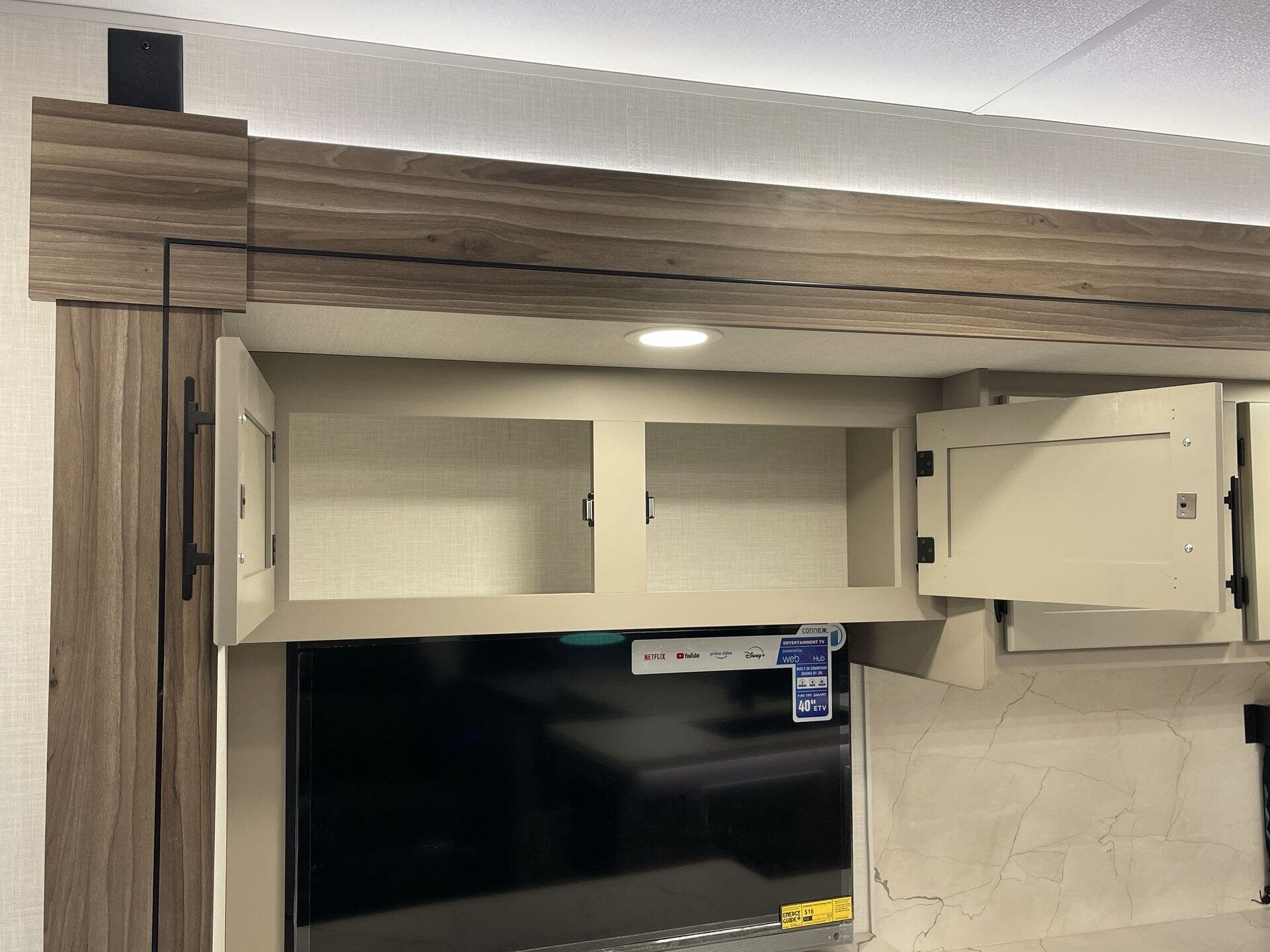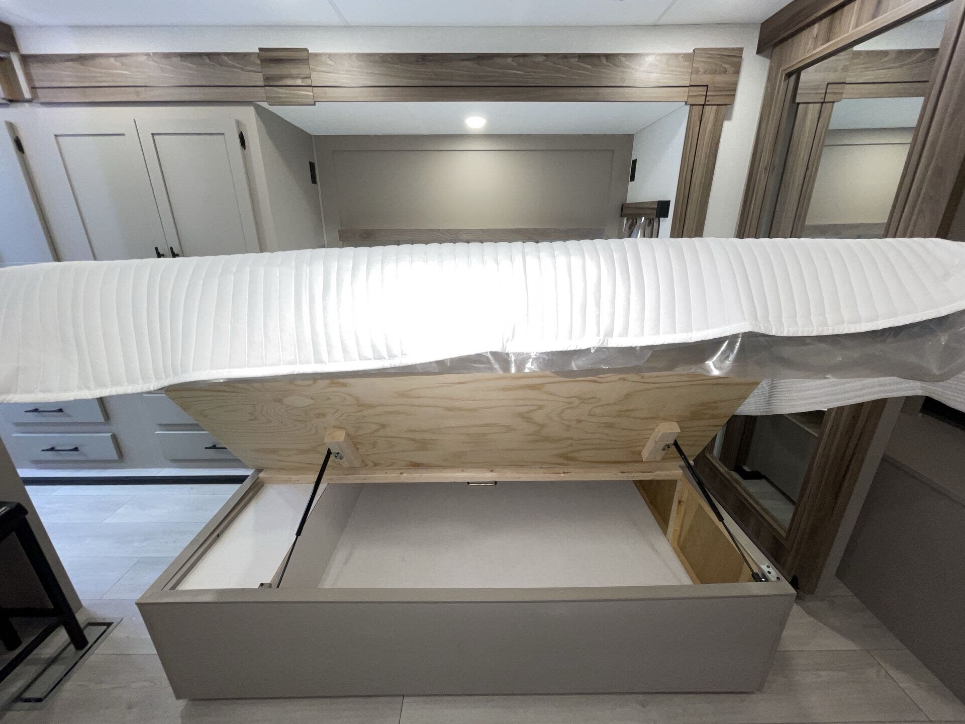 Up front, the private bedroom offers a comfortable queen bed along with wardrobe storage and a desk so you can settle in and feel at home. The bathroom is roomy and practical for longer trips, and the overall layout is designed to make everyday living simple. With three slides, a length of about 38'7", and solid tank capacity for extended camping, the 333RLK delivers a residential feel while still being a towable travel trailer.
