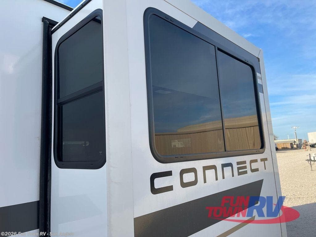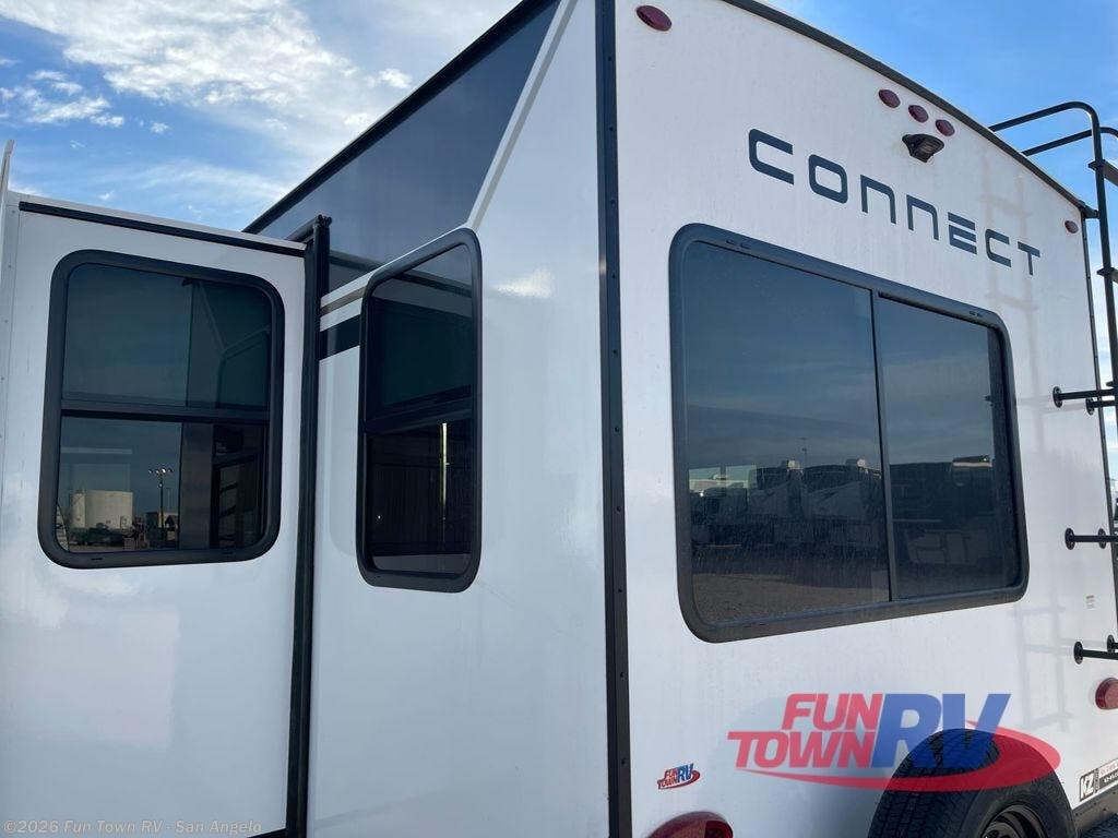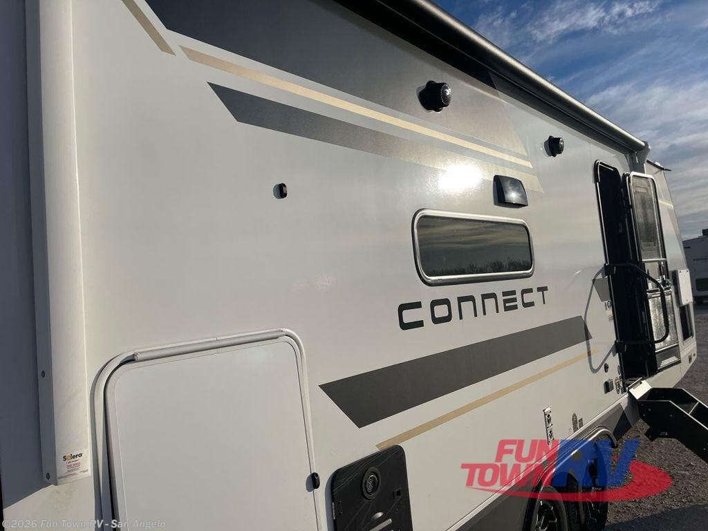 Hitch up this Connect travel trailer and head out for a fabulous weekend away! You will enjoy added space in the living area because of the single slide that holds the booth dinette, and another convenient feature is the dual-entry bathroom that can be accessed from the main hallway or the bedroom. You will be quite surprised to find a king-size bed inside the bedroom, along with dual wardrobes and a TV mount if you want to add a television. A pass-through storage on the exterior allows you to bring along extra gear, and the interior is kept cozy on chilly fall evenings with the 34" fireplace.