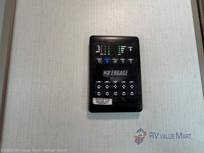 The KZ Connect travel trailer comes with an RV Airflow System which optimizes the airflow for your air conditioner. This improves performance, speeds up cooling times, and reduces noise in your trailer. Some of the other helpful features found on the Connect are the heated, insulated, and enclosed underbelly, the exterior docking station, the fiberglass front cap with front windshield, the 82" interior ceiling height, and the protective front diamond plate. There are some useful technological features, like the two LED motion-sensor lights, the HDMI and USB charger. The KZ Engage is powered by OneControl, and it monitors battery levels and controls slide rooms, the leveling system, the awning, inside/outside lighting, and the TPMS prep.