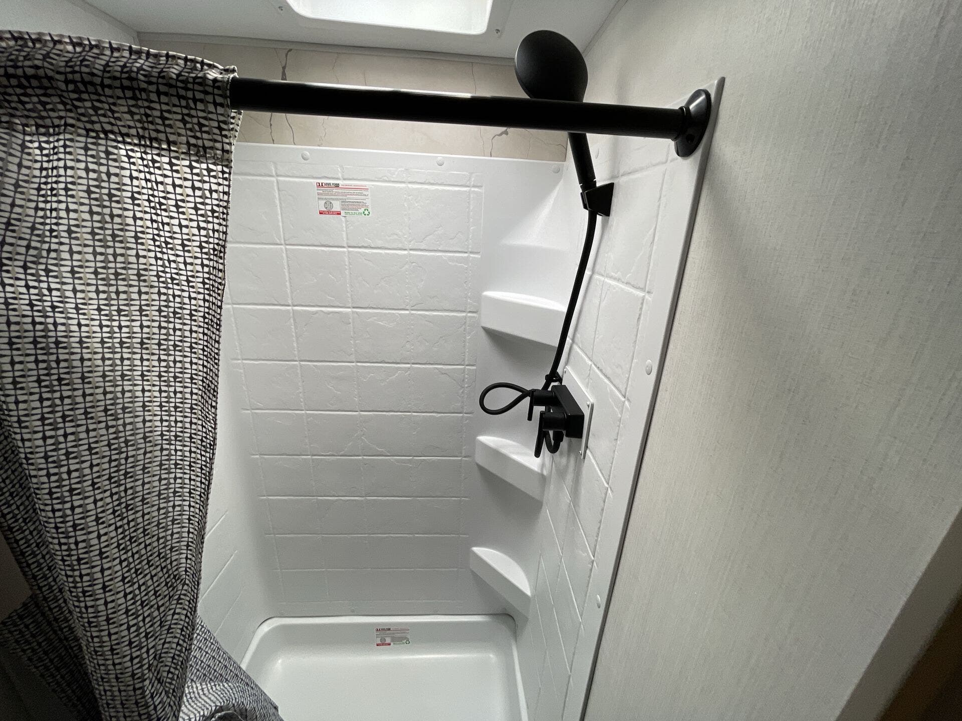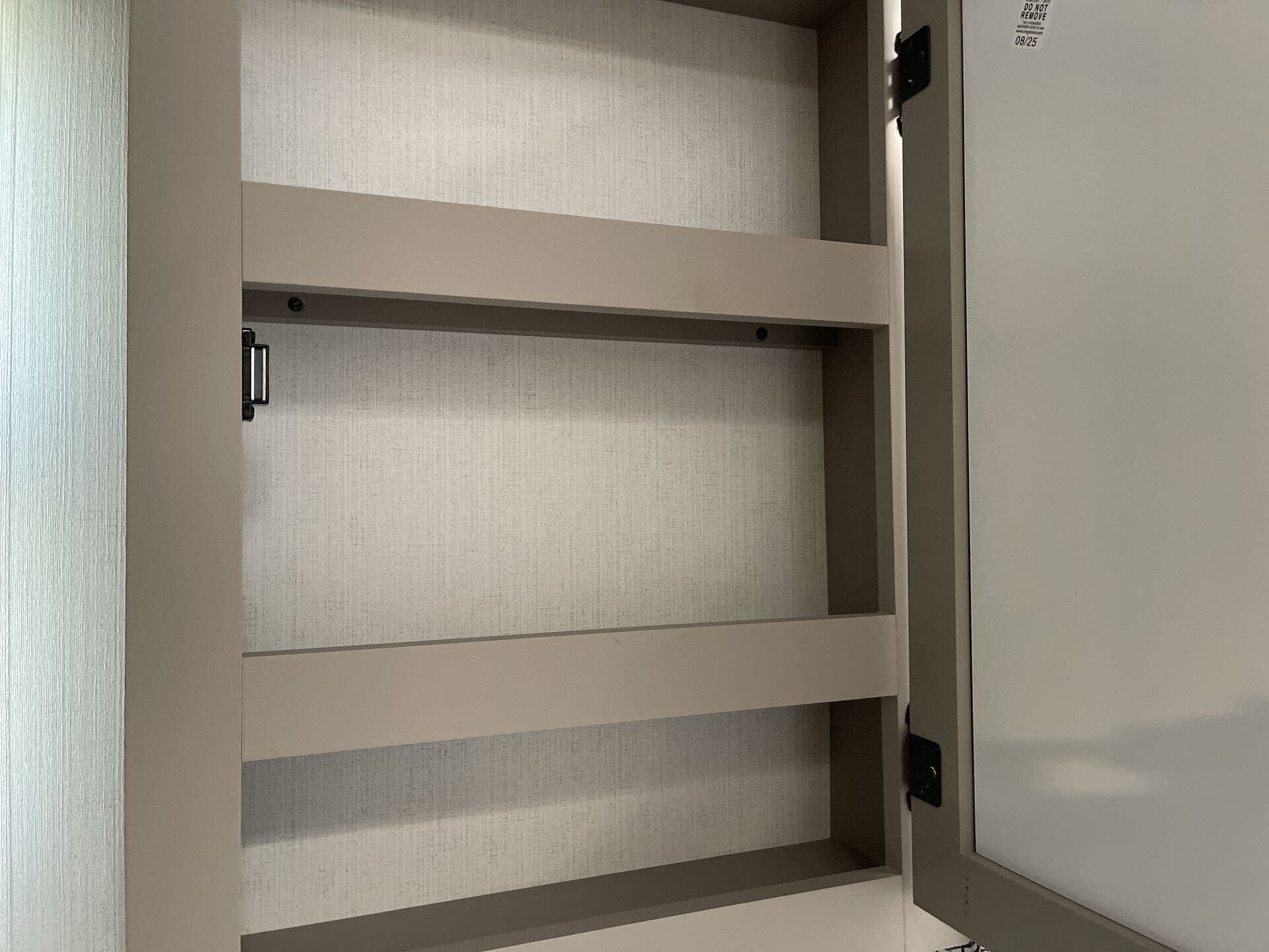 - Shower and toilet with a medicine cabinet for convenient bathing routines