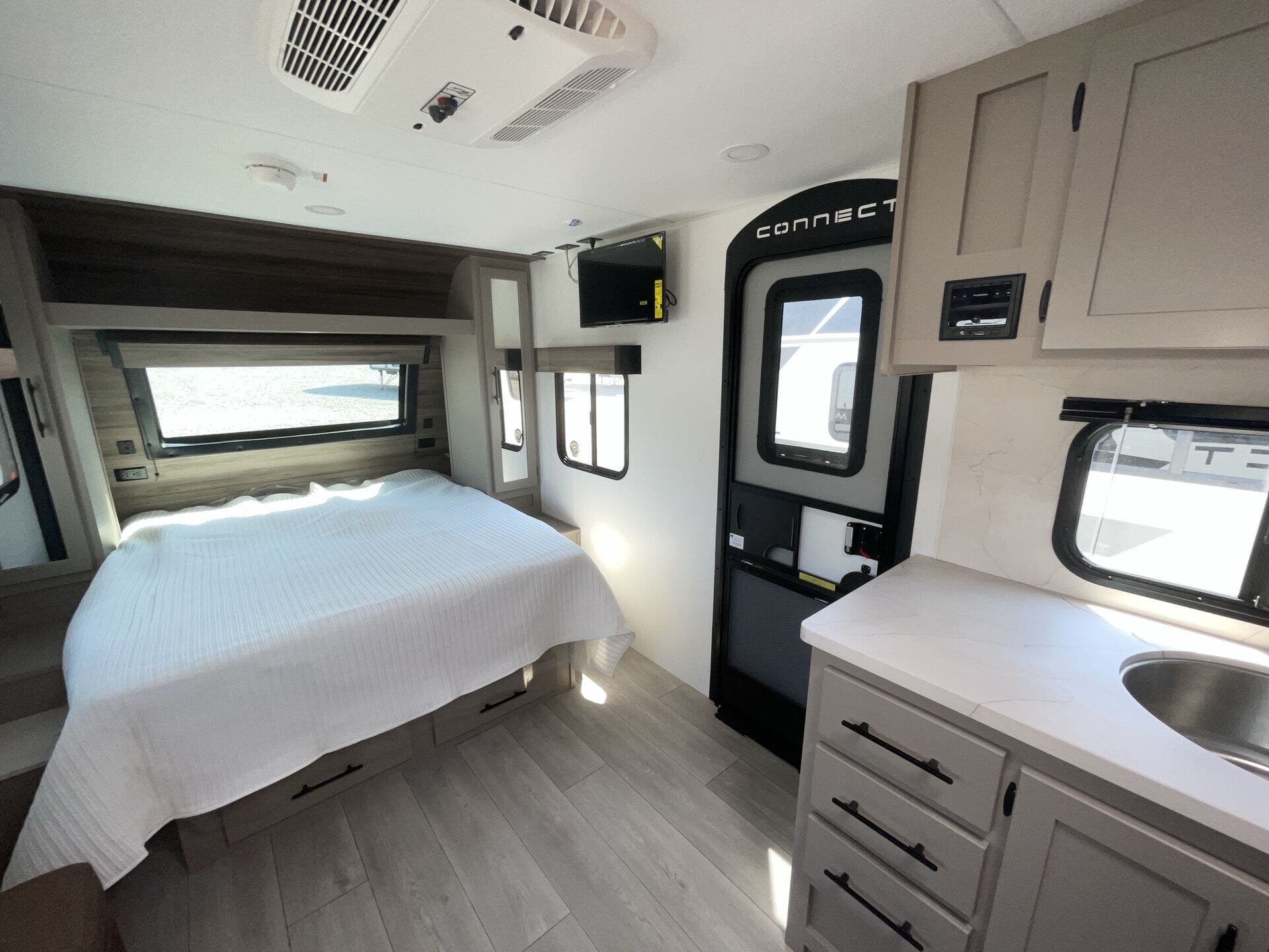 Packed with modern amenities, the Connect Mini 181RB includes LED lighting throughout, climate control for year-round comfort, a Bluetooth multimedia system, and a power awning with LED lights to extend your living space outdoors. Lightweight, stylish, and thoughtfully designed, this trailer is perfect for couples or small families who want an easy-to-manage RV without sacrificing comfort or quality.