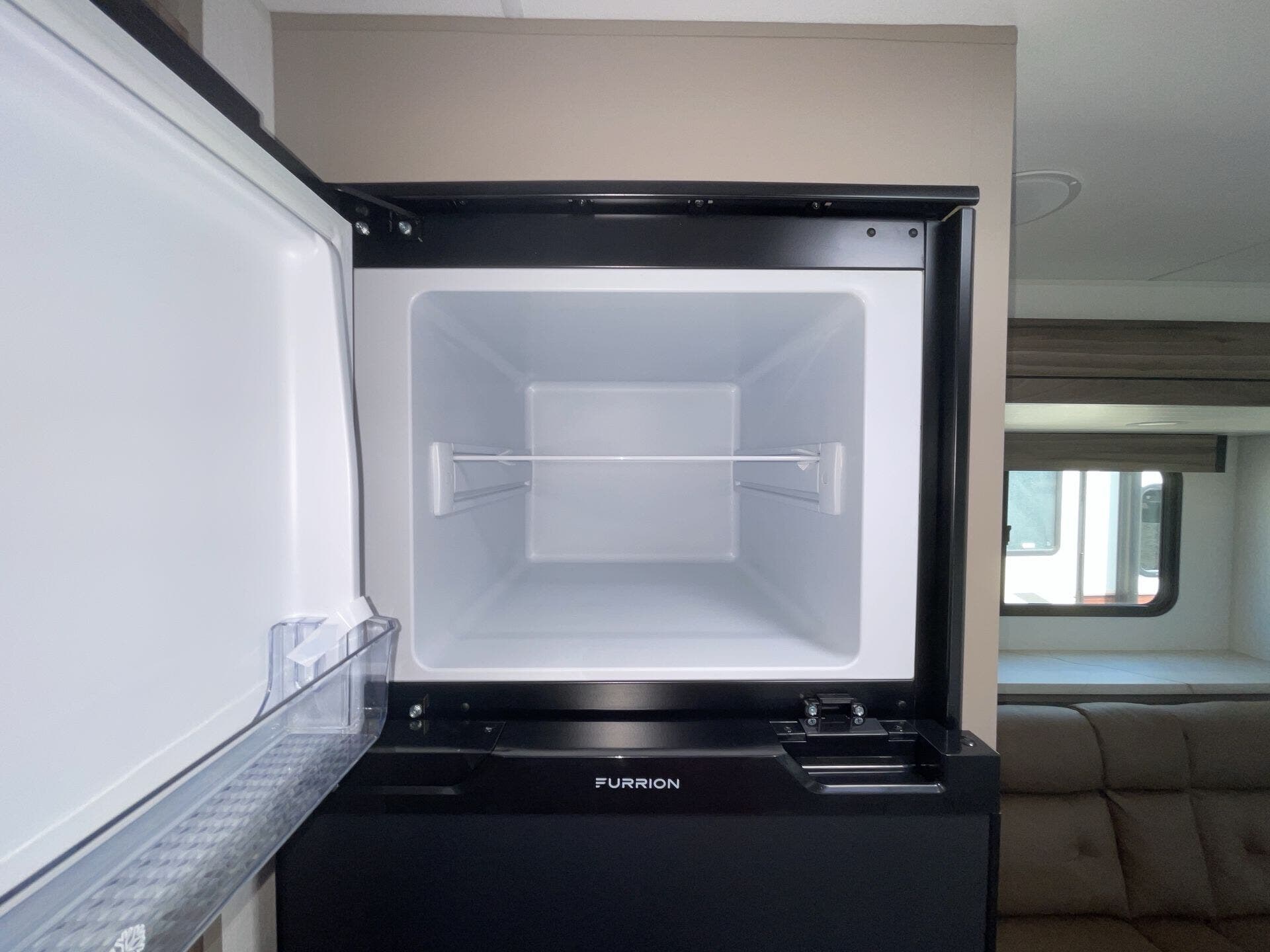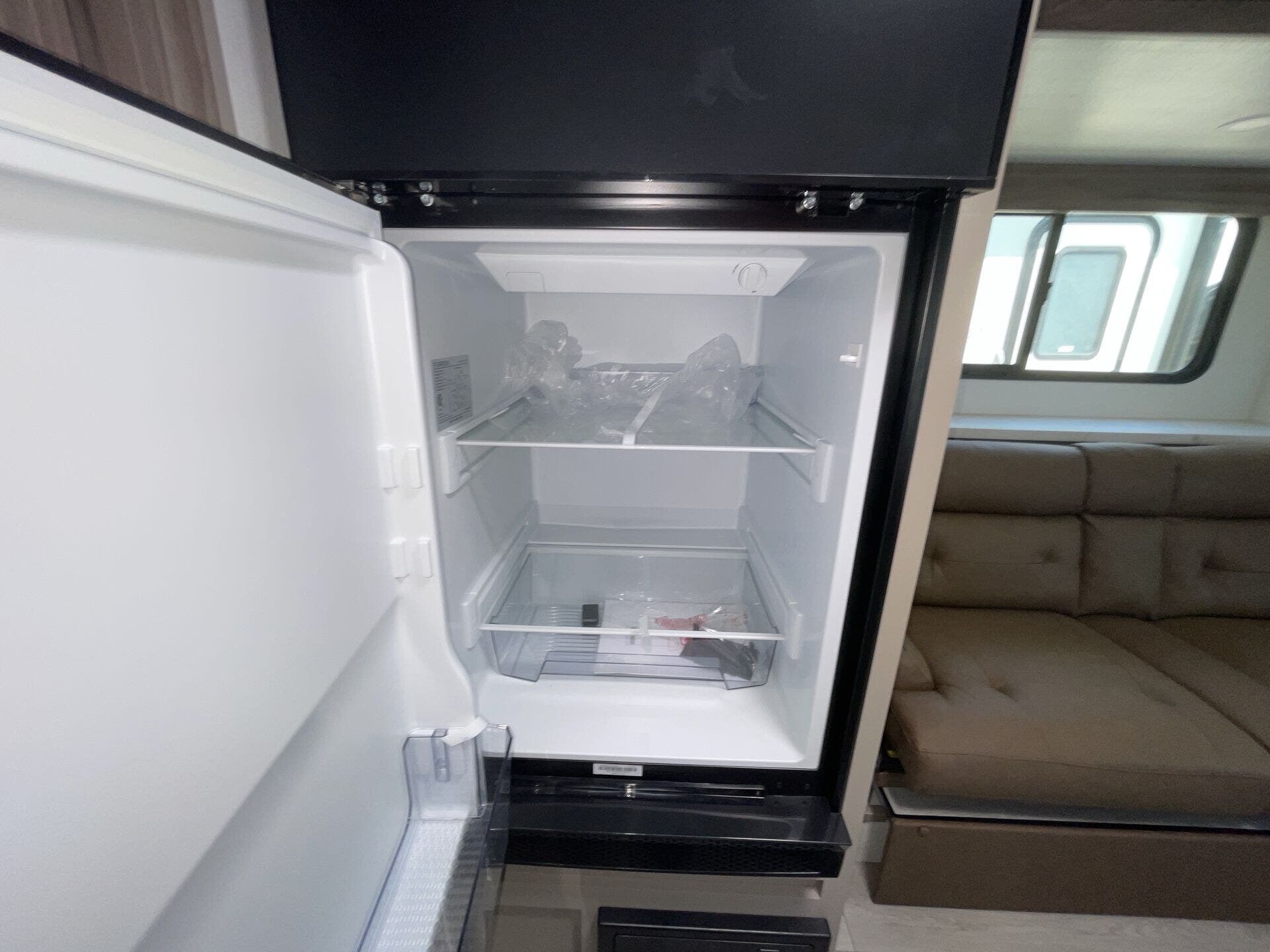 Inside, the 181RB offers a bright, open living space with smart use of every square inch. A comfortable queen bed up front provides a cozy place to relax, while the booth dinette offers both seating for meals and additional sleeping space when needed. The well-equipped kitchen features a two-burner cooktop, microwave, refrigerator, and generous storage, so you can prepare your favorite meals wherever the road takes you. At the rear, you’ll find a spacious bathroom with a large shower, vanity, and extra storage — a luxury rarely found in trailers this size.