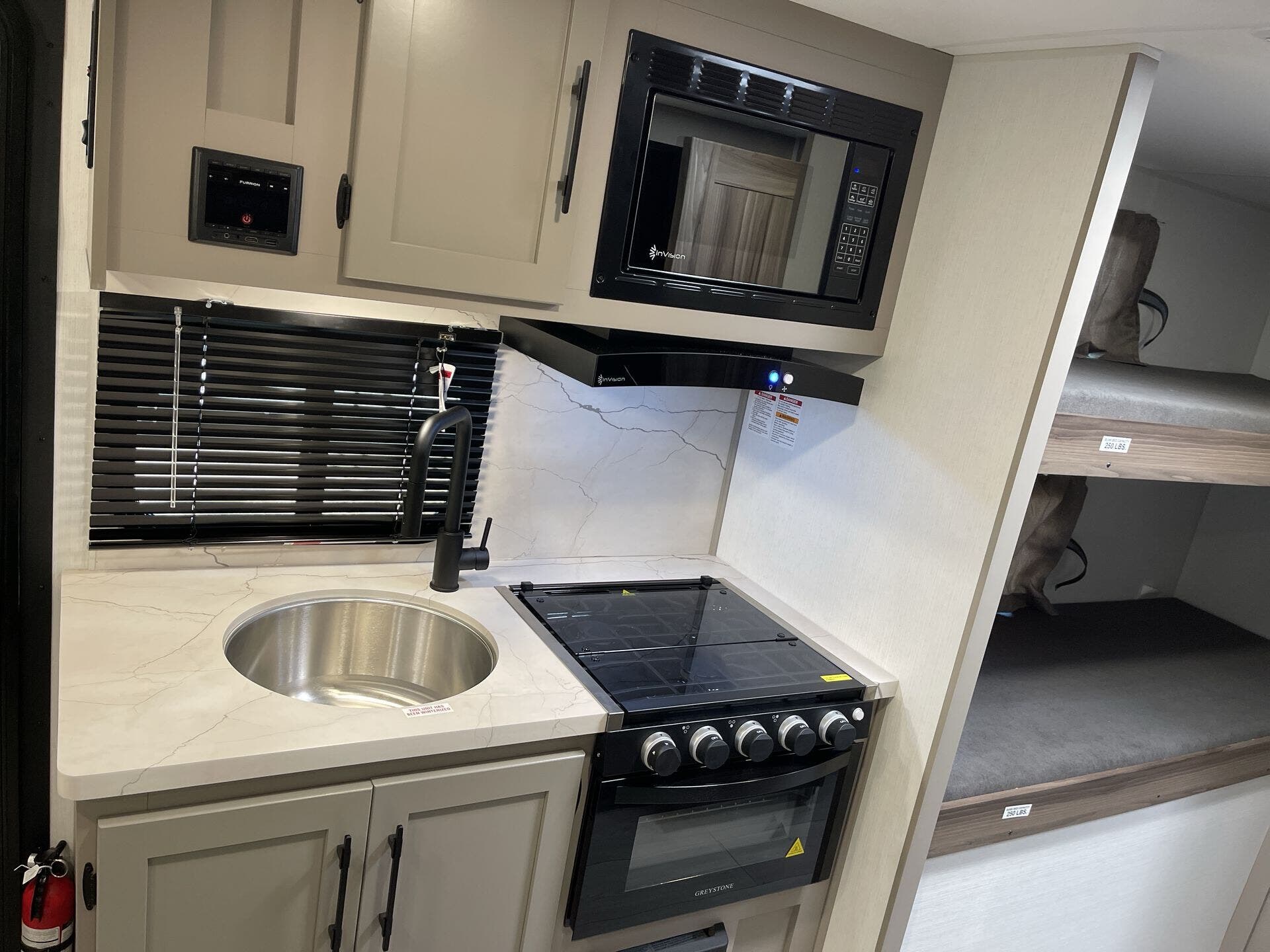 - Features: Microwave, Oven, Refrigerator, Stove, Water Heater, Awning, Ladder, Leveling Jacks, CO/LP/Smoke Detectors, Fire Extinguisher