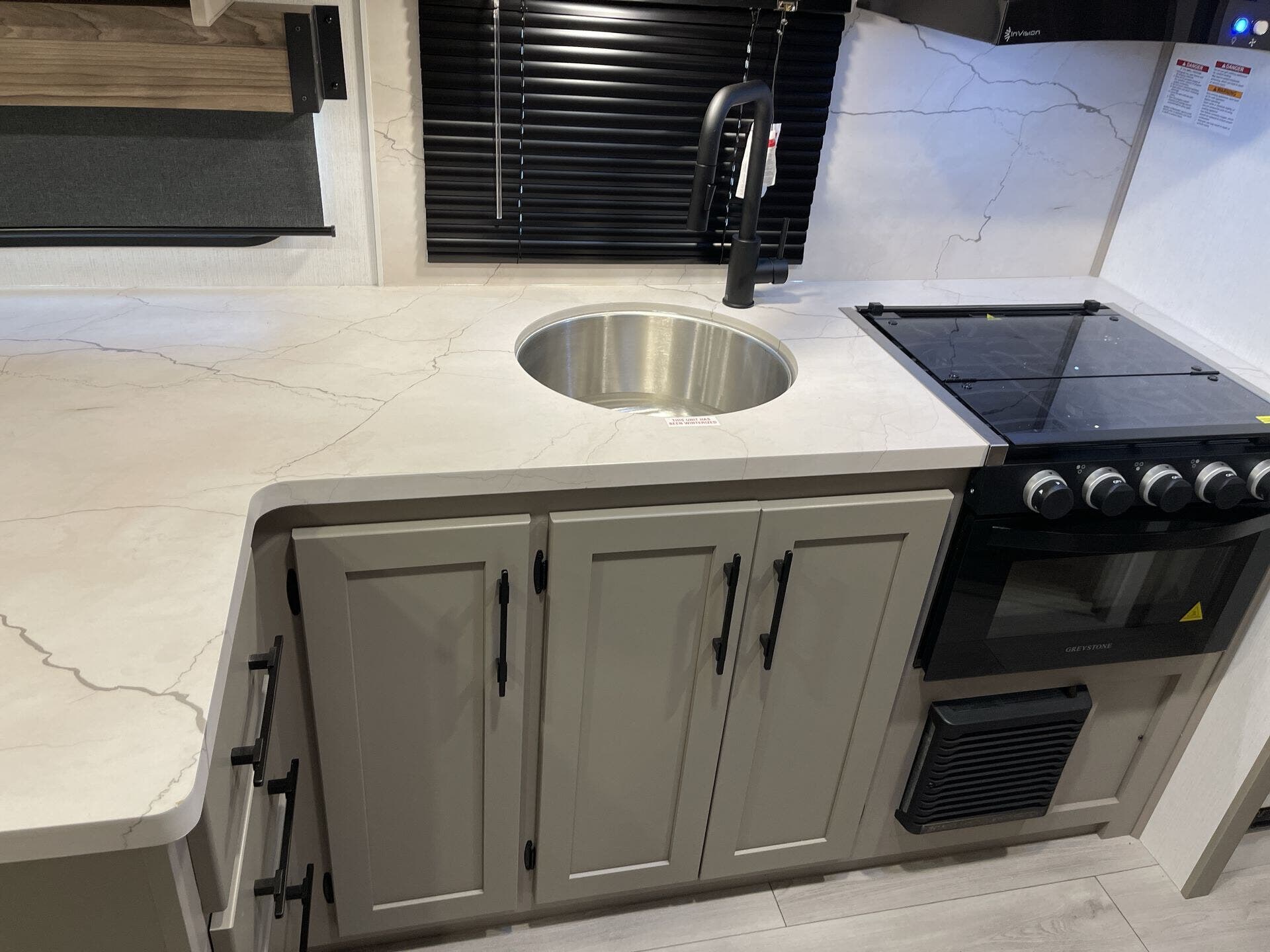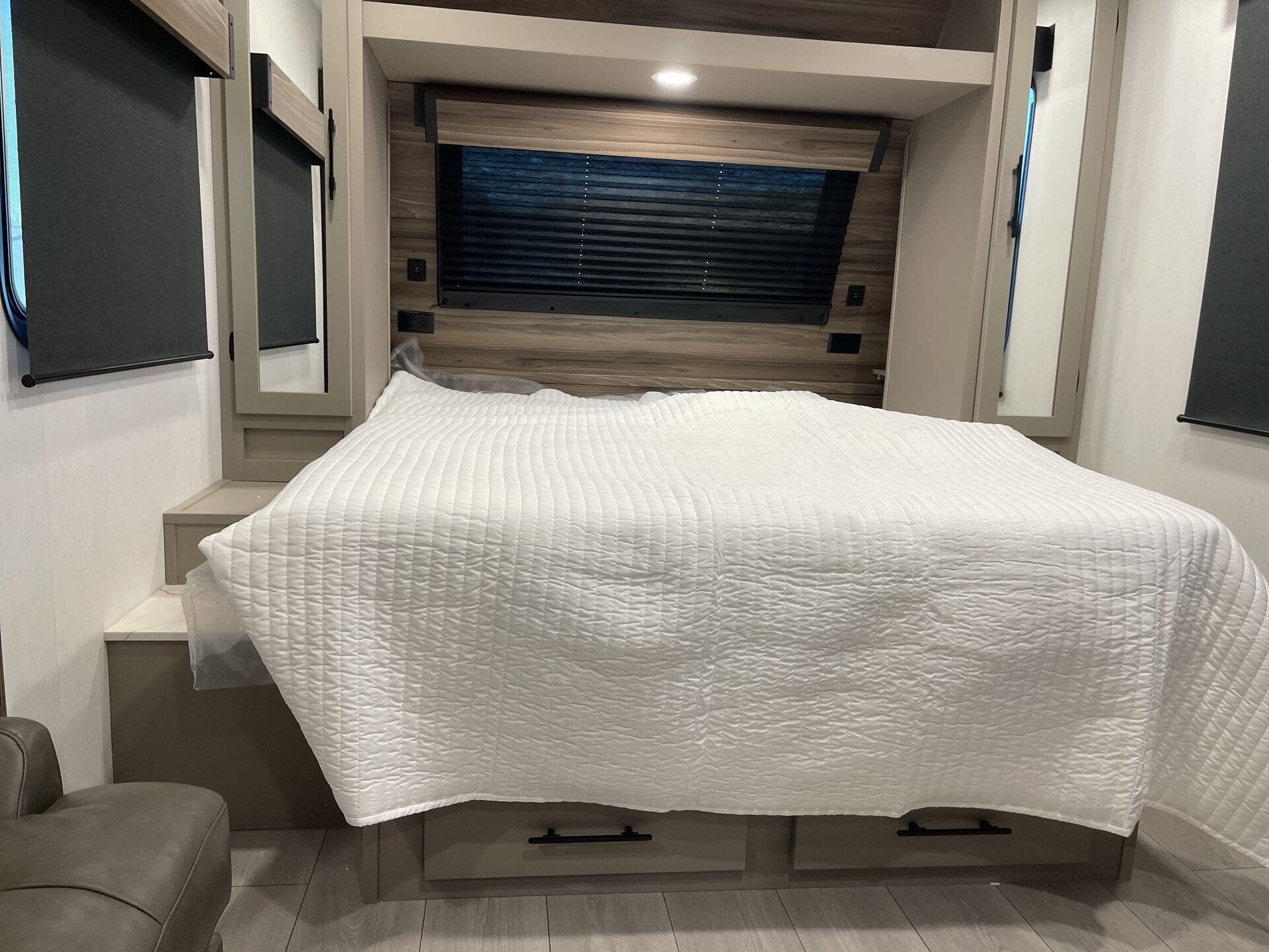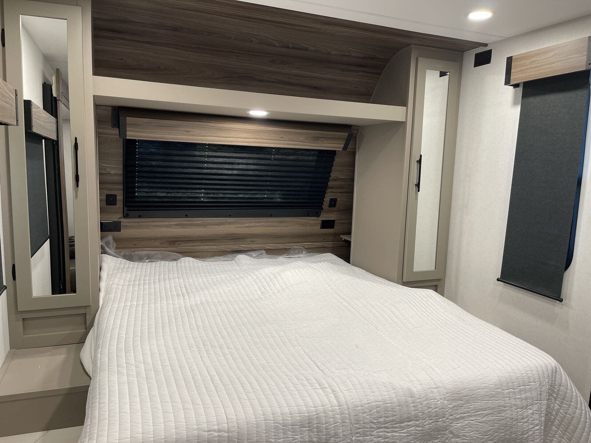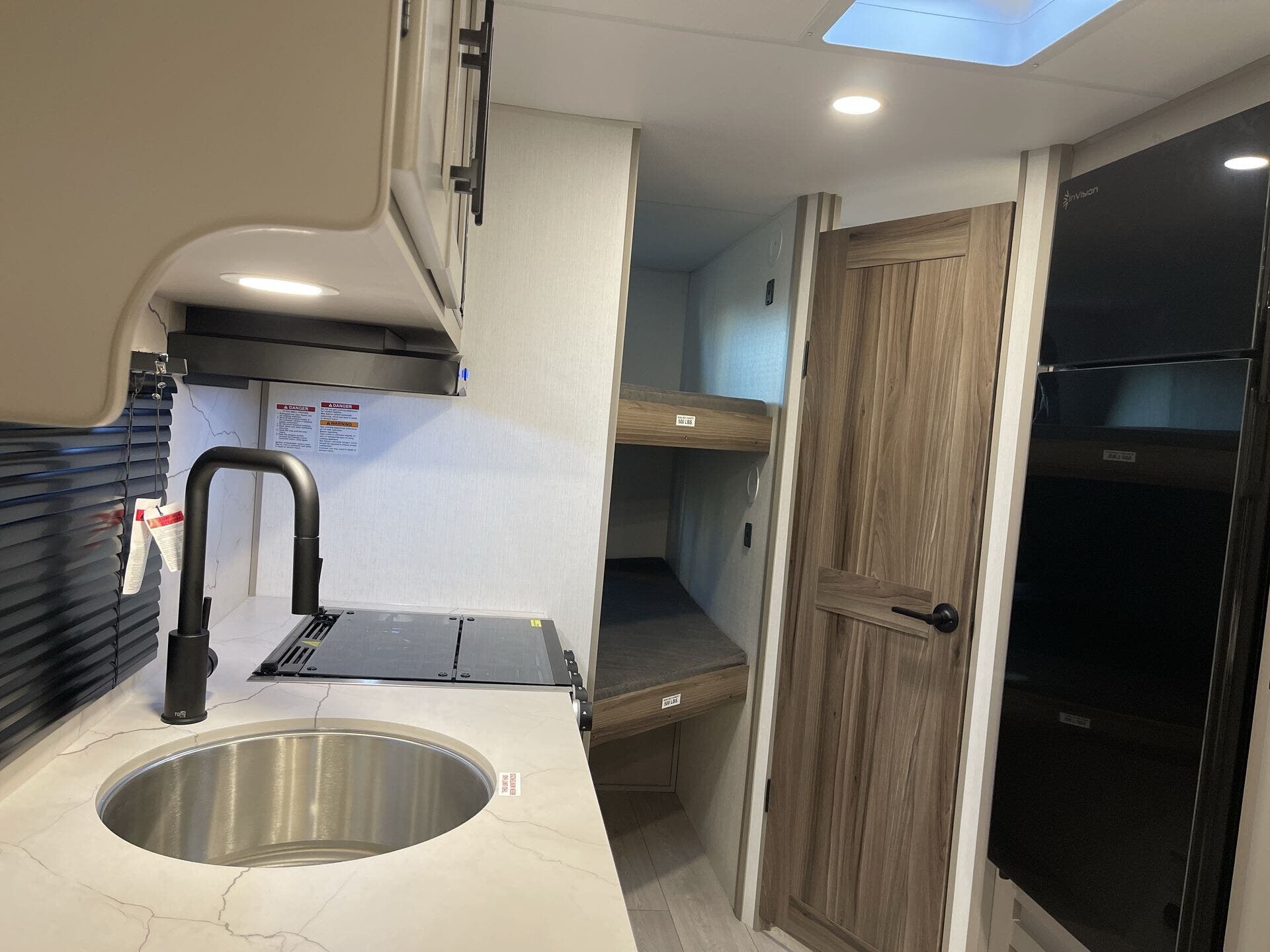 Kitchen Sink, Medicine Cabinet, Non-Smoking Unit, Overhead Cabinetry, Pantry, Queen Bed, Removable Table, Roof Vents, Shower, Sofa Bed, Solid Surface Countertops, Toilet, Wardrobe(s)