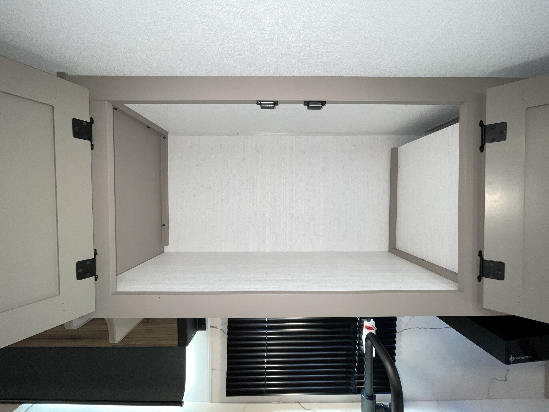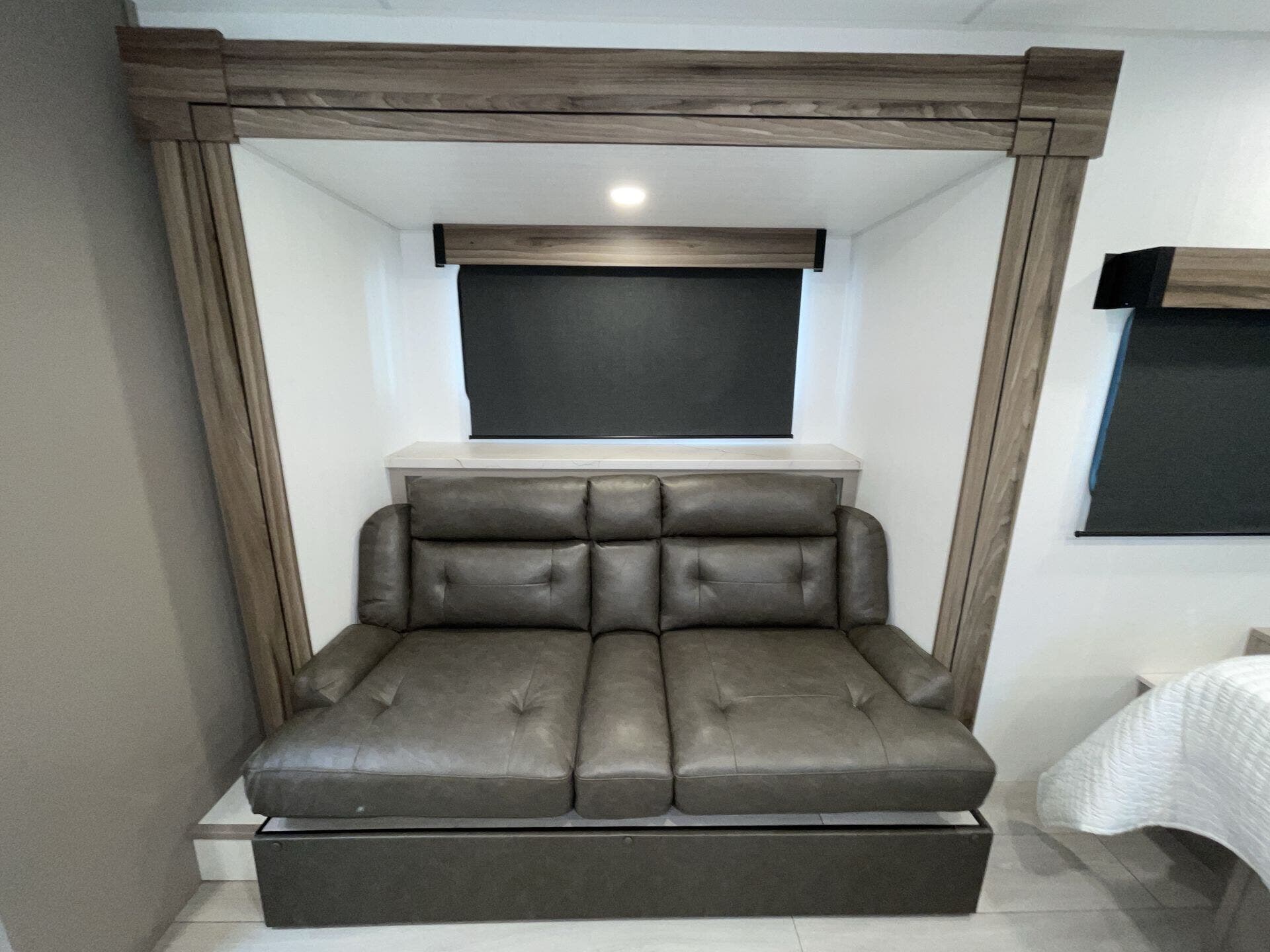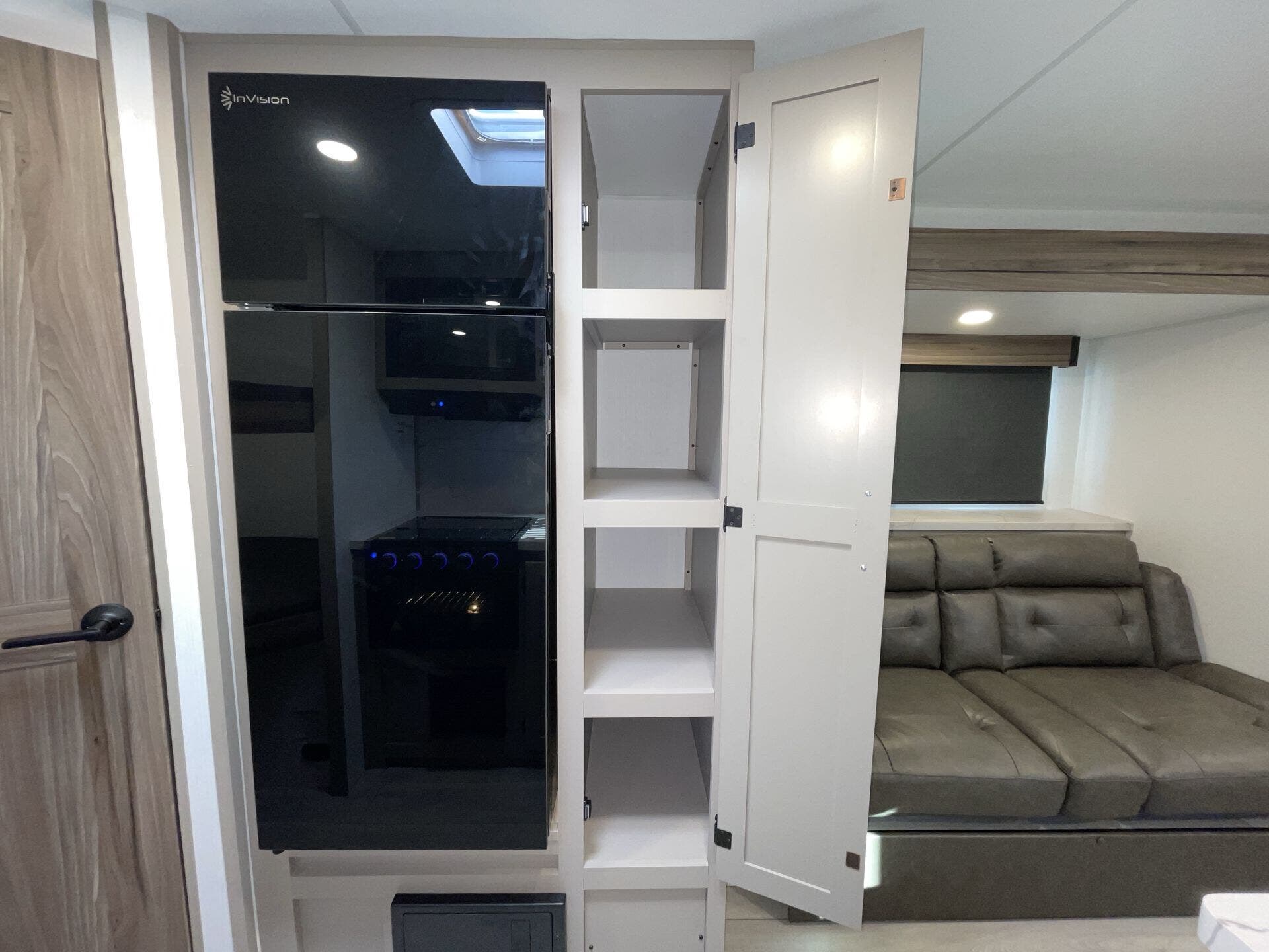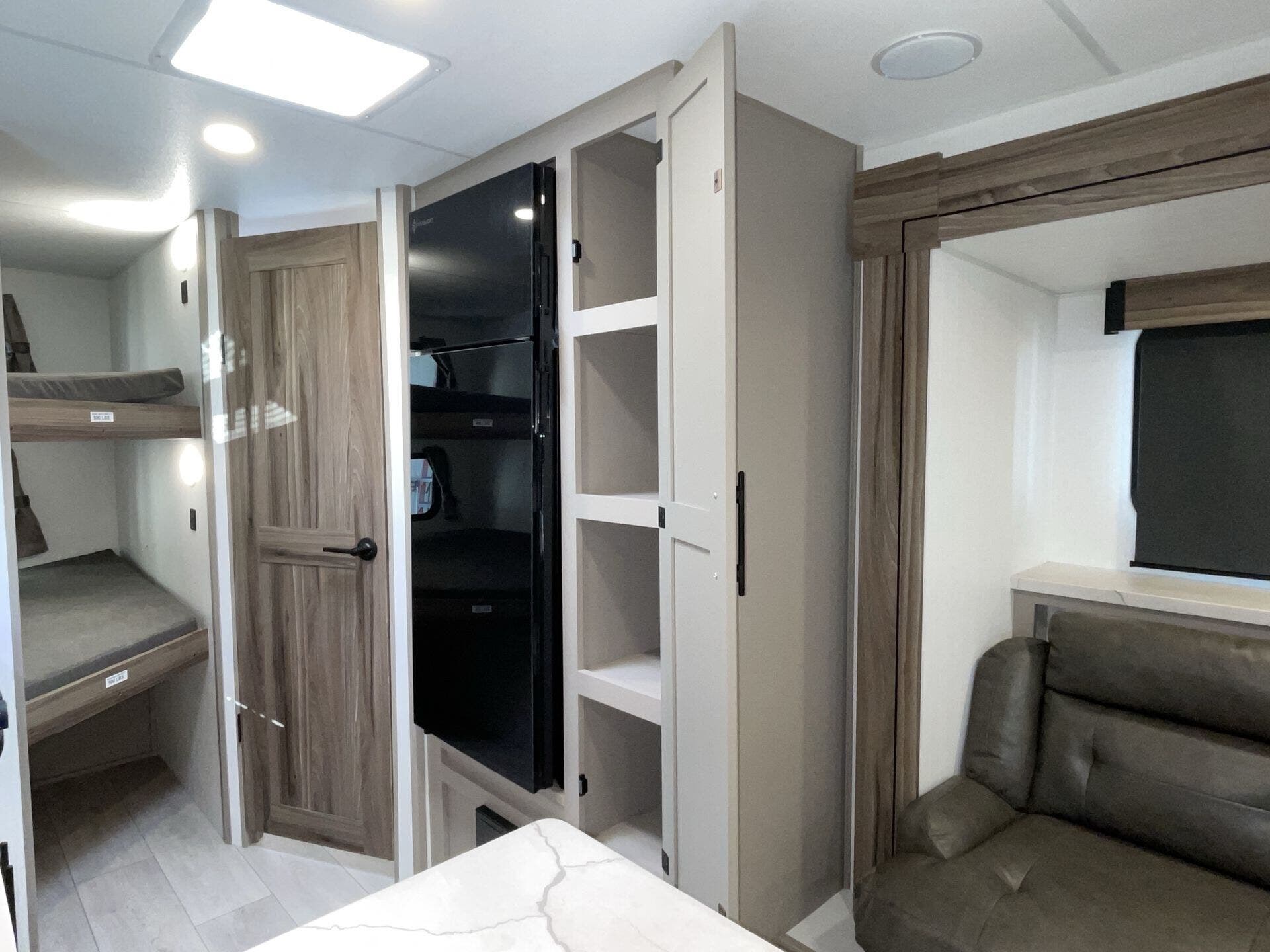 Kitchen Sink, Medicine Cabinet, Overhead Cabinetry, Pantry, Queen Bed, Removable Table, Roof Vents, Shower, Sofa Bed, Solid Surface Countertops, Toilet, Wardrobe(s)