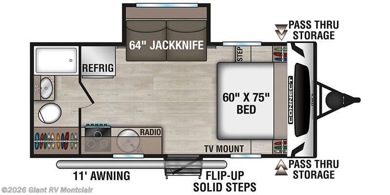 2026 KZ RV Connect Mini CM181RB is ideal for couples or solo travelers looking for a lightweight, easy-to-tow camper built for weekend escapes and national park adventures. With a sub-4,000 lb dry weight, rear bath layout, 8 cu. ft. refrigerator, and 36-gallon fresh water capacity, it delivers comfort and efficiency in a compact footprint. Perfect for midsize tow vehicles and first-time RV buyers who want versatility without sacrificing features.