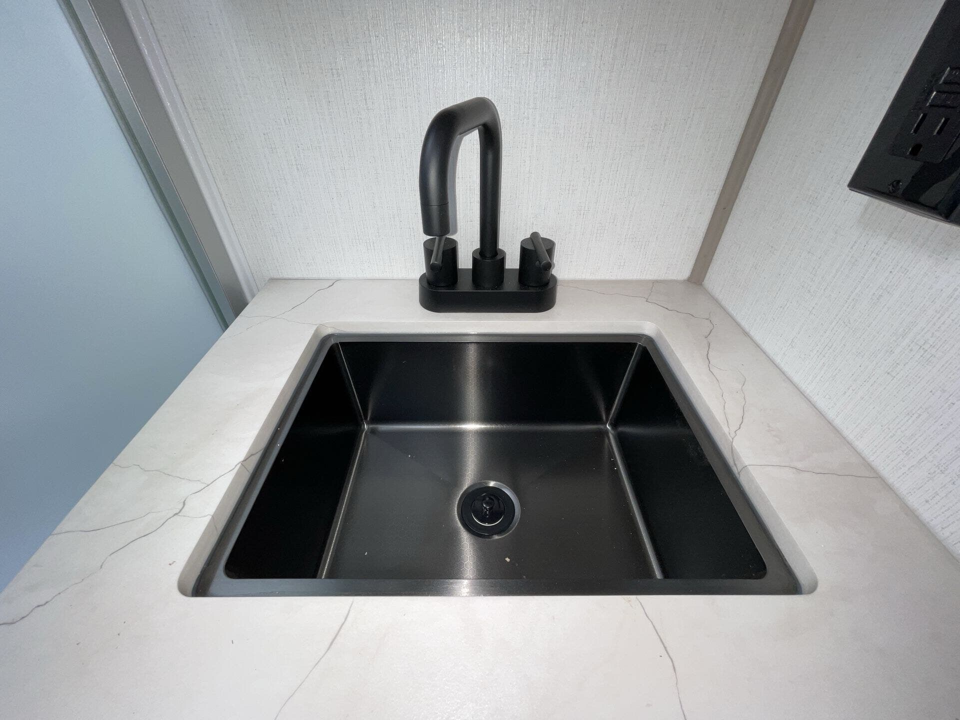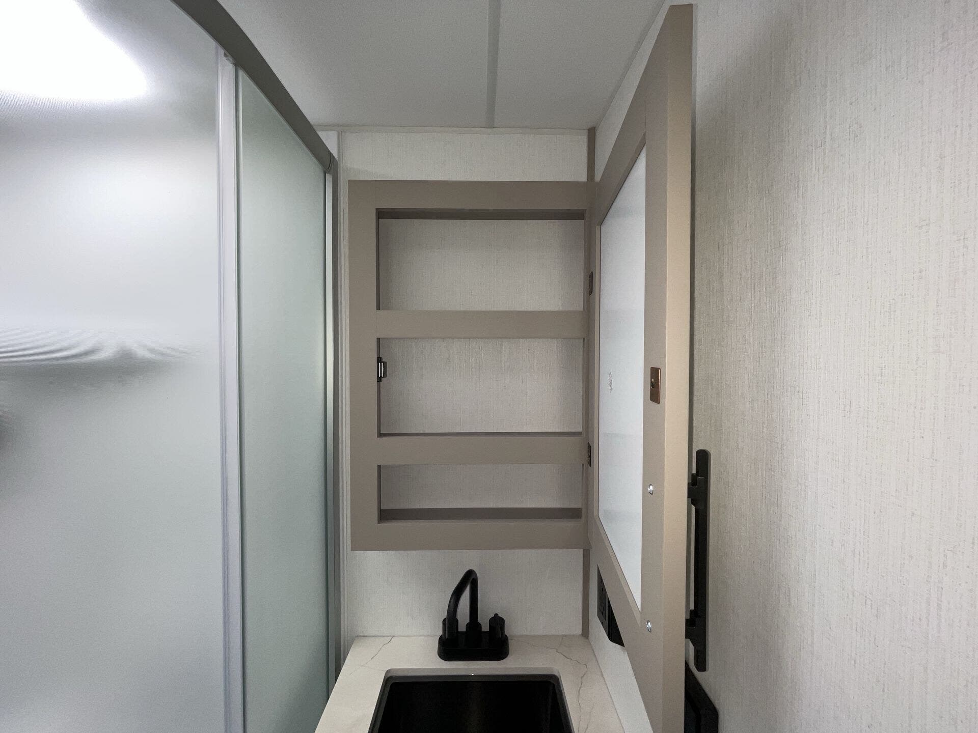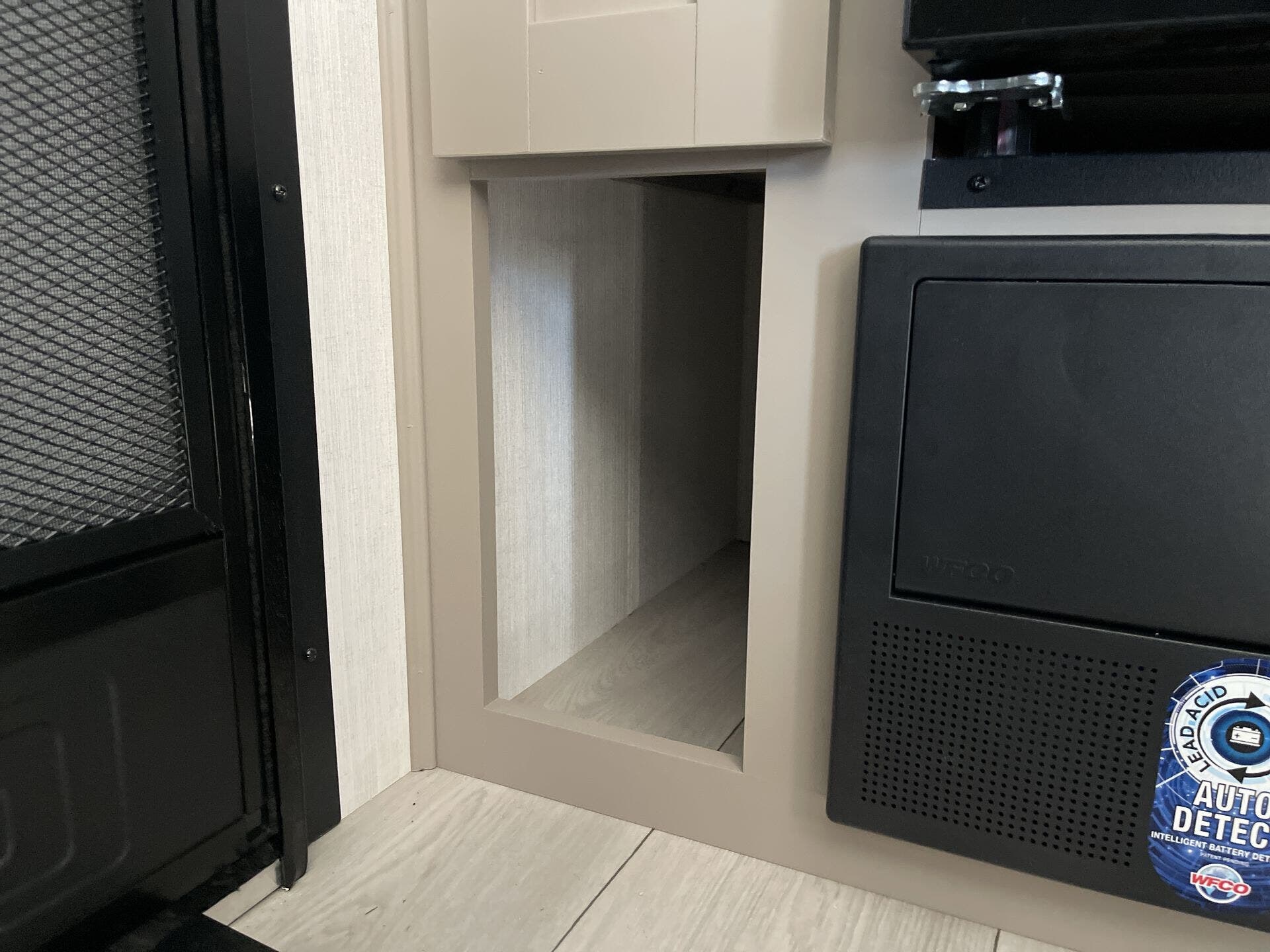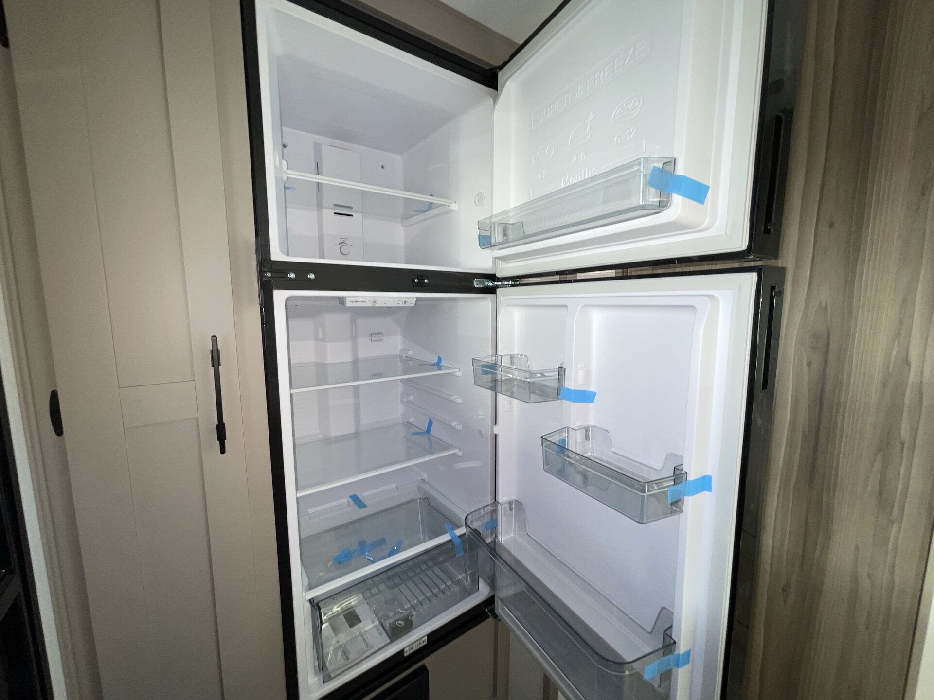Tank sizes are practical for longer weekends or even longer trips, so you’re not constantly thinking about water or dumps. Outside, the power awning with LED lighting makes your campsite “hang-out ready” as soon as you step off the trailer, and pass-through storage gives you extra room for gear without cluttering the living areas.