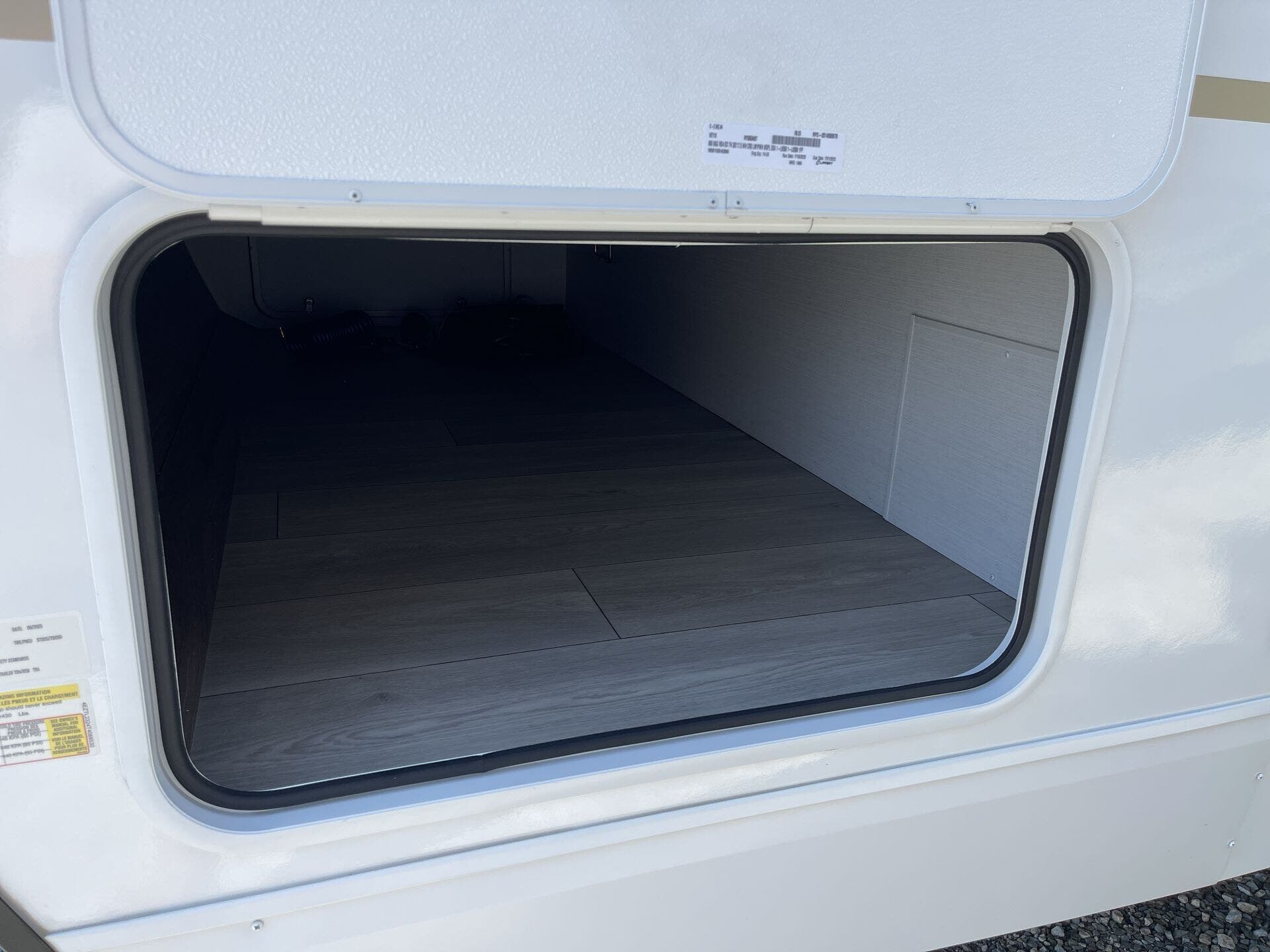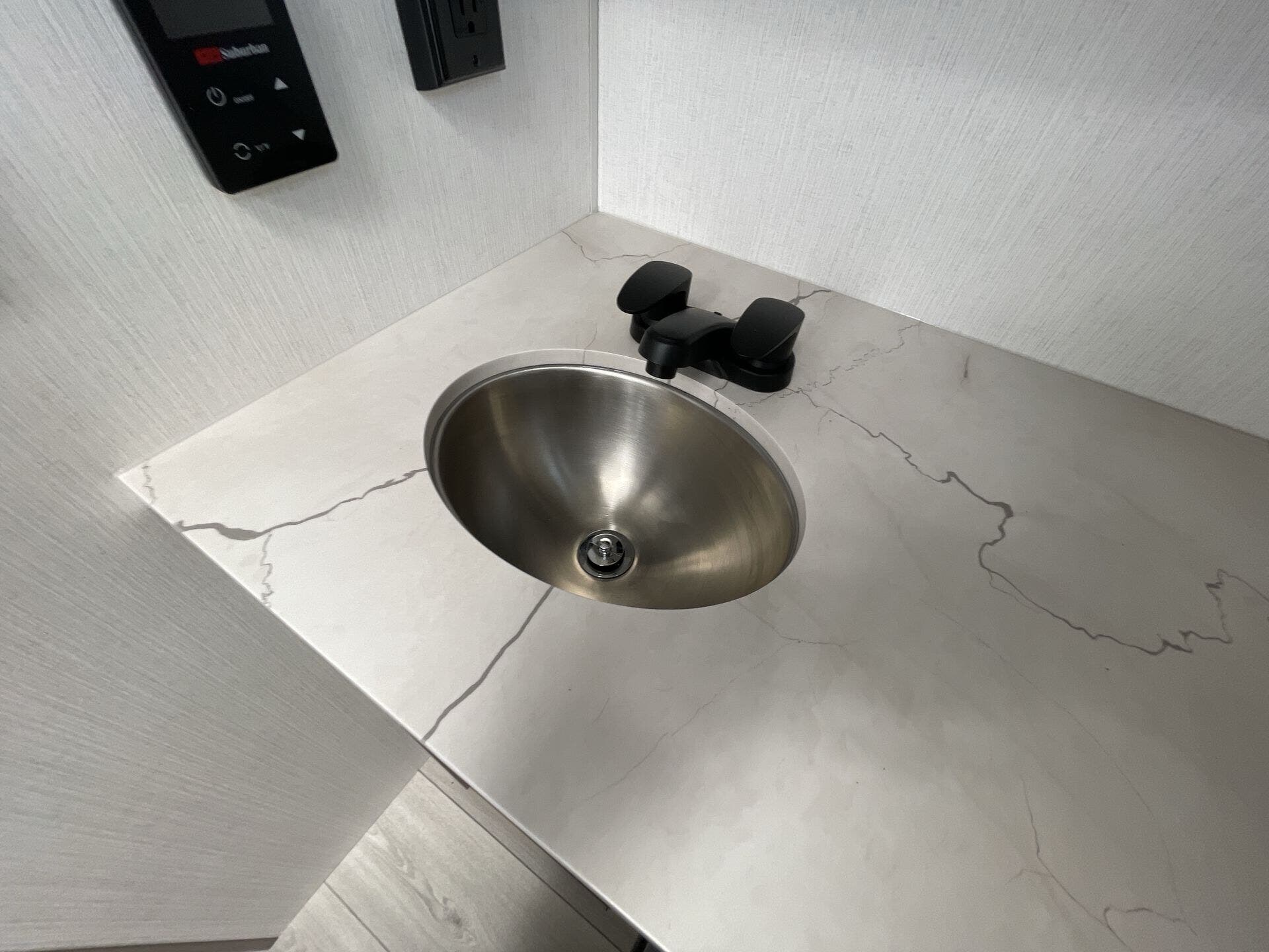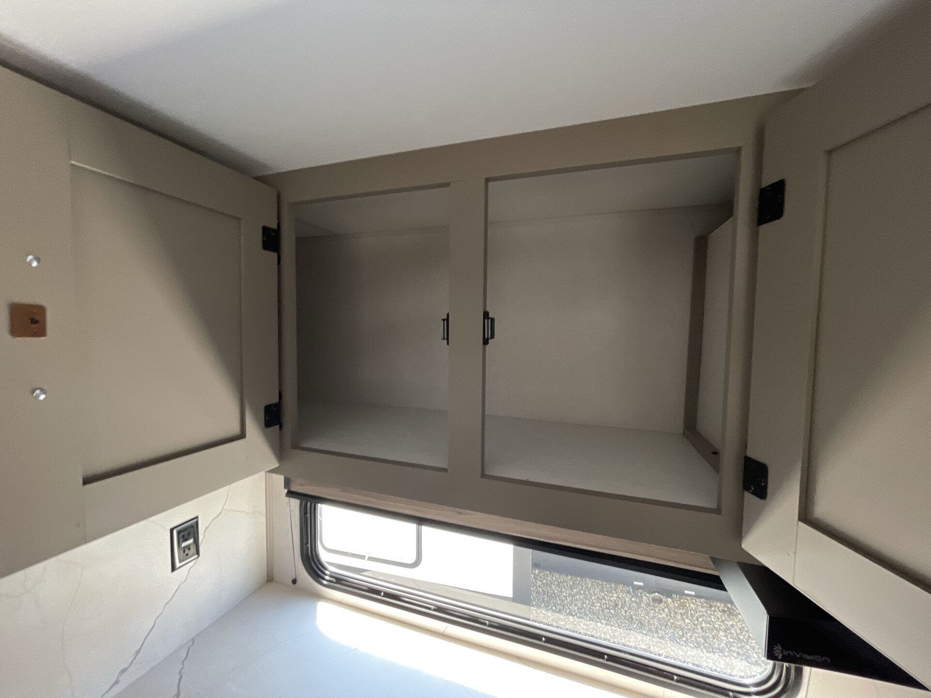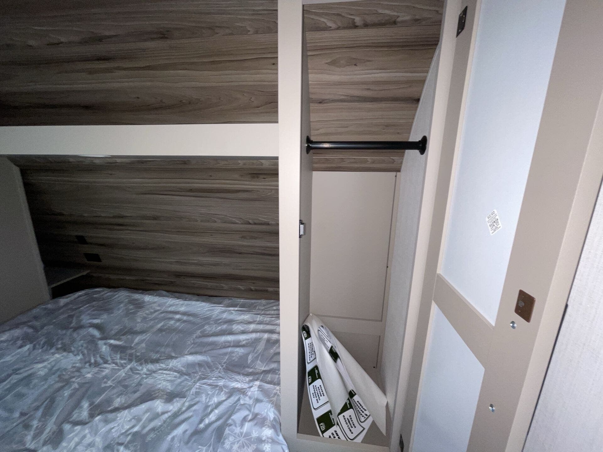 Step inside, and you’ll find a thoughtfully designed open-concept floorplan with a spacious rear bathroom that features a large shower, linen storage, and plenty of room to get ready comfortably. The kitchen includes stainless steel appliances, a deep farmhouse sink, ample counter space, and a pantry, making meal prep simple and enjoyable. In the living area, a booth dinette and a comfortable sofa provide cozy seating and dining space, while the entertainment center ensures you can relax and unwind at the end of the day.