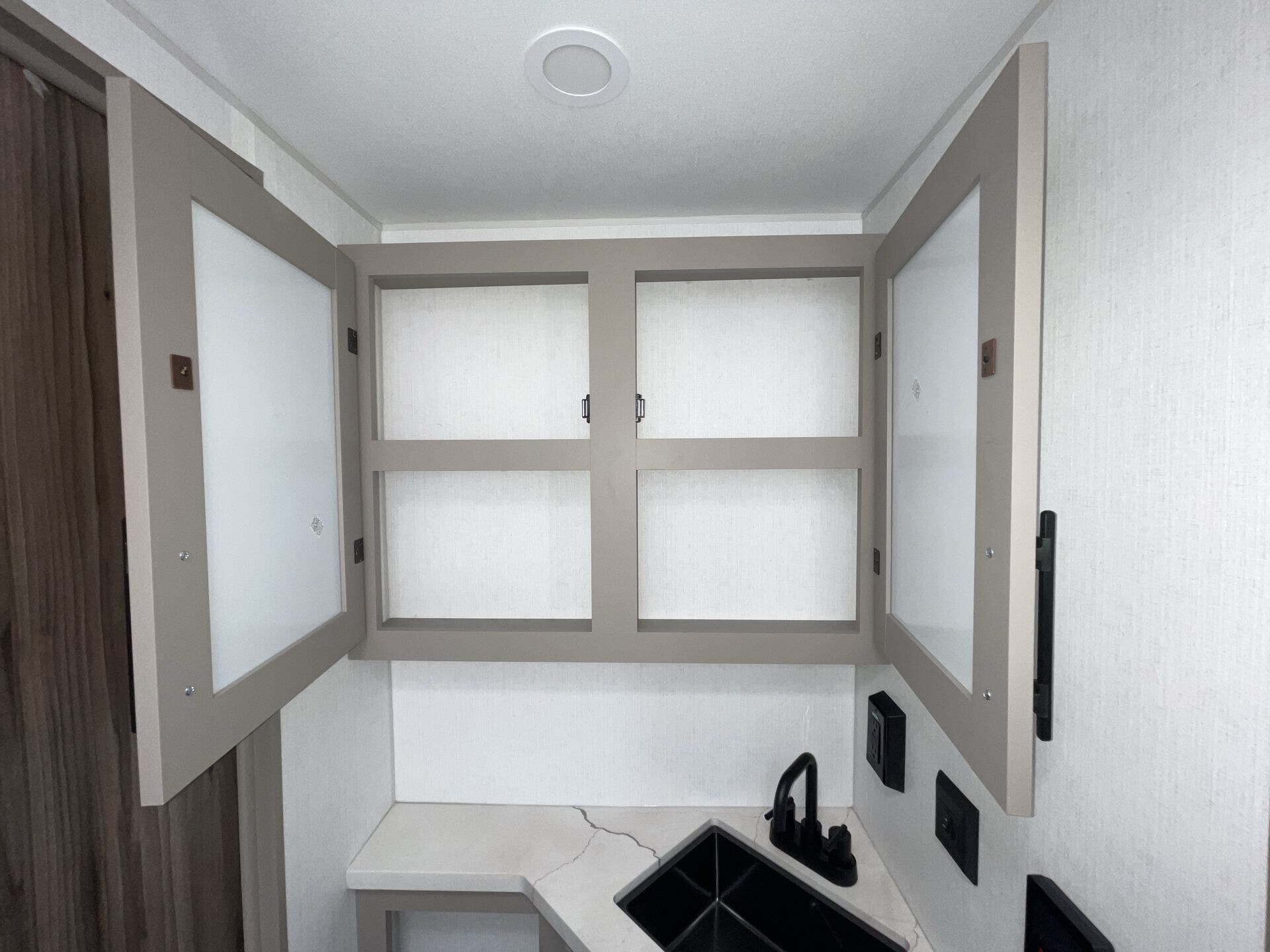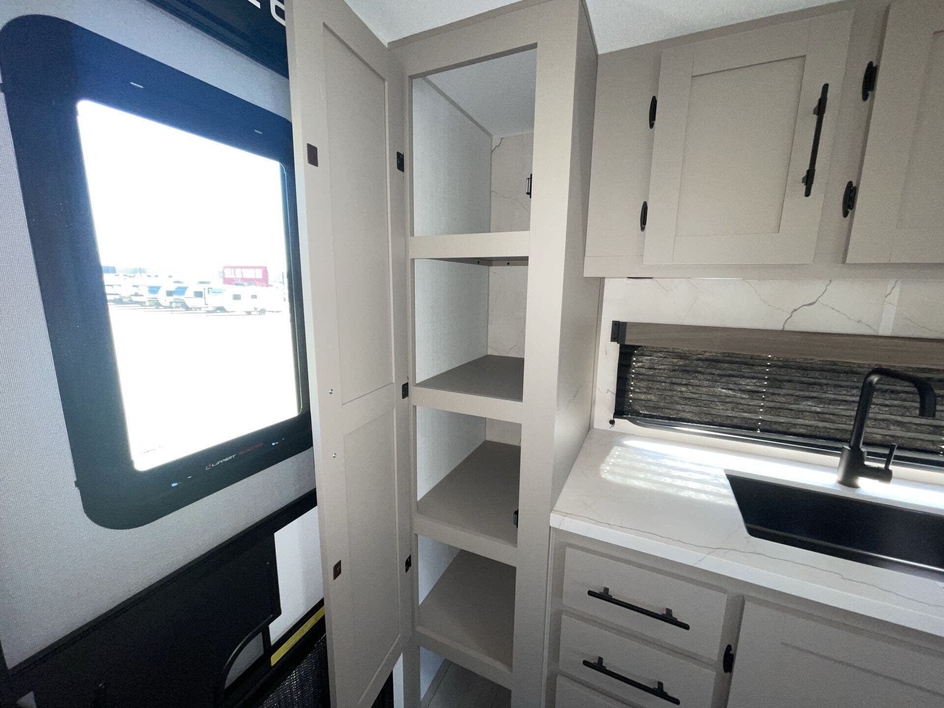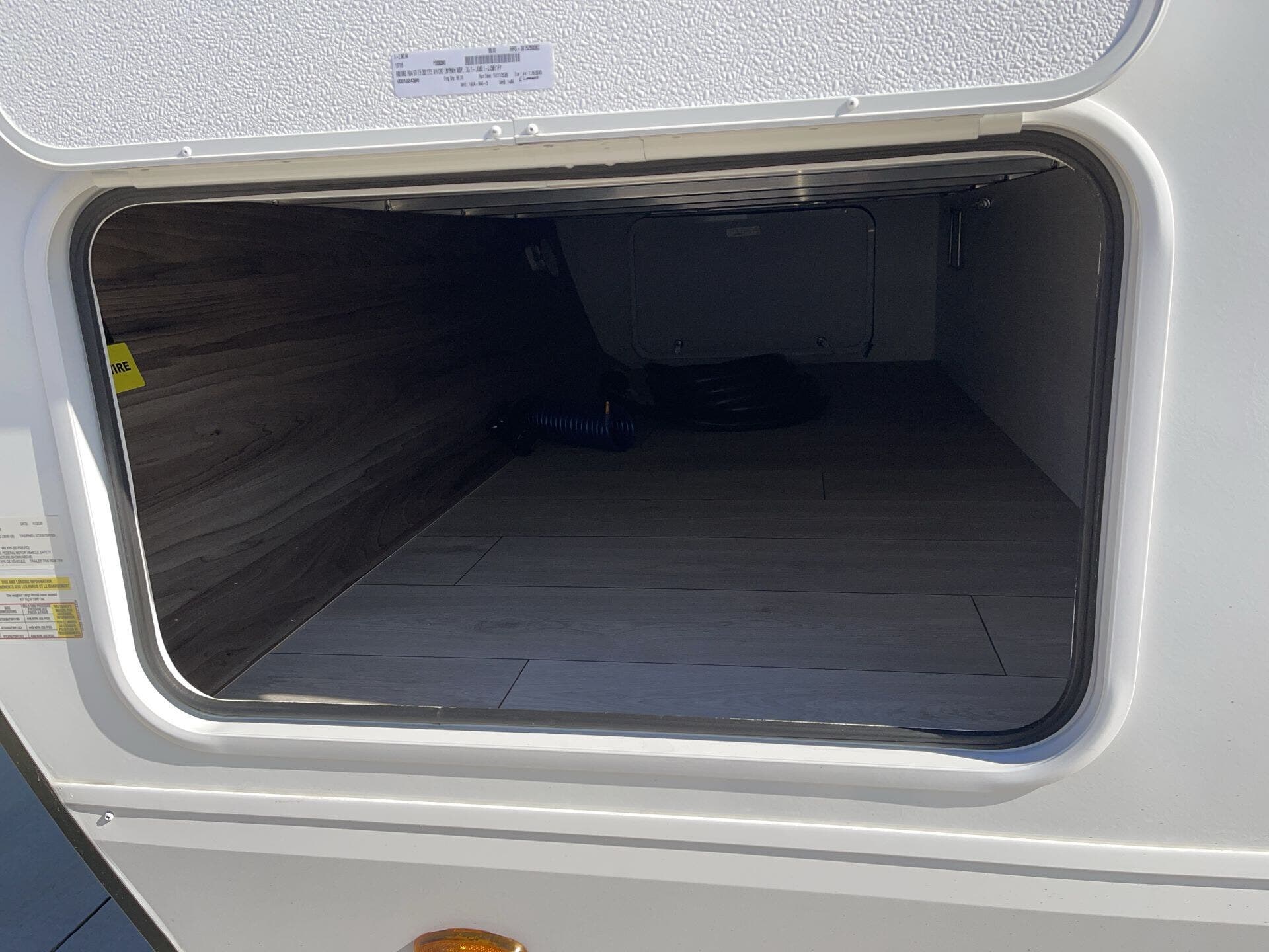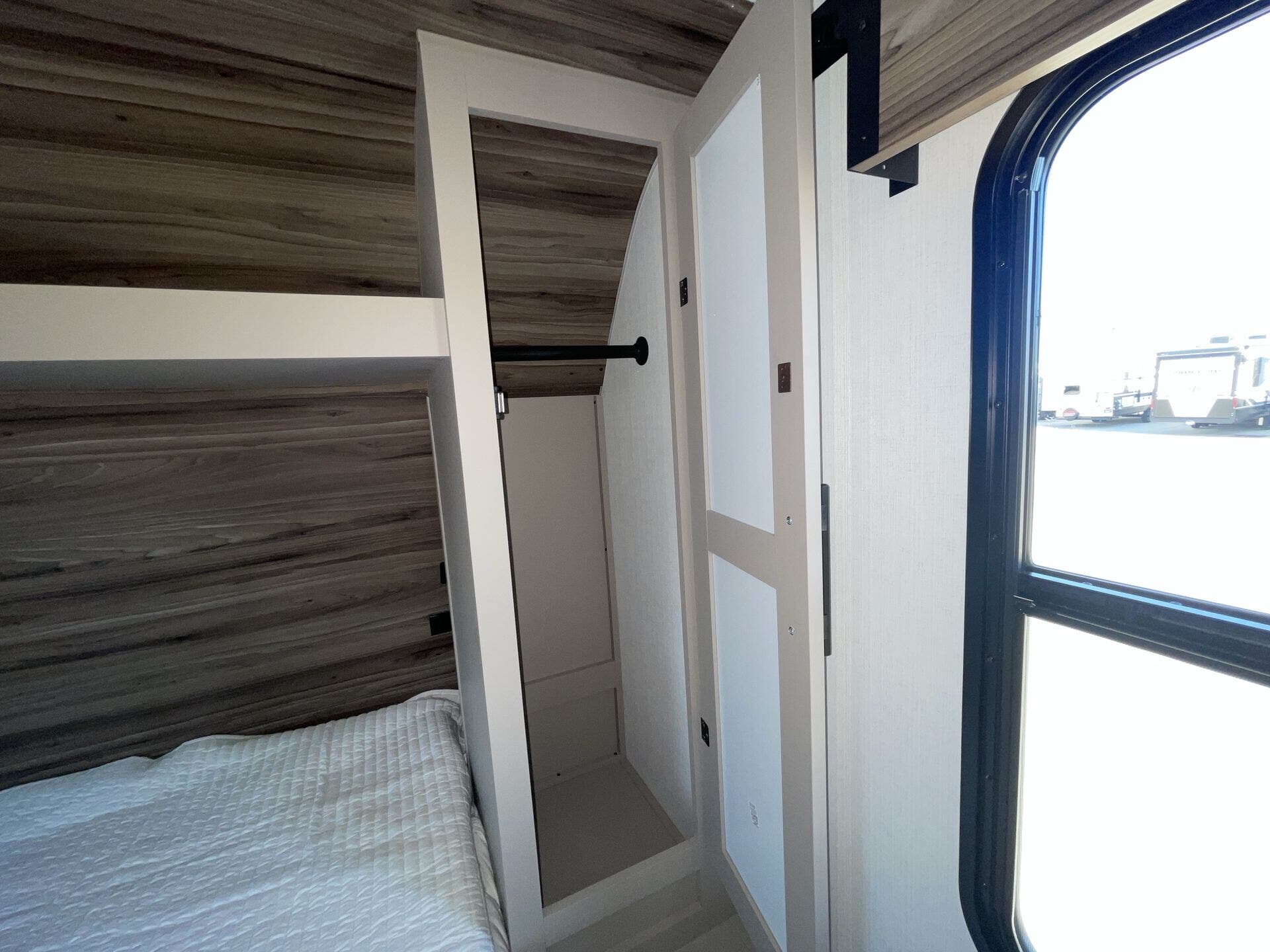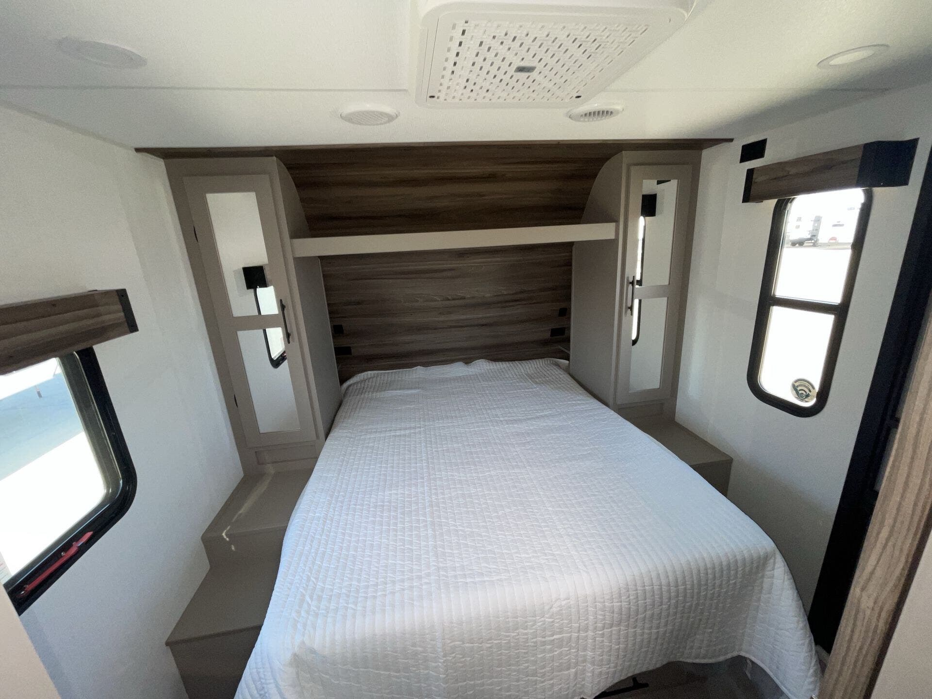 The C221RKSE showcases a practical front bedroom, a cozy mid living zone, and a functional rear kitchen. Two entry doors (one at the front and one near the living area) enhance accessibility and flow, while an exterior kitchen and a roof deck offer abundant outdoor entertaining options. Essential comforts like a fireplace and a single 15,000 BTU air conditioner keep the interior comfy, even on warm days or chilly nights.